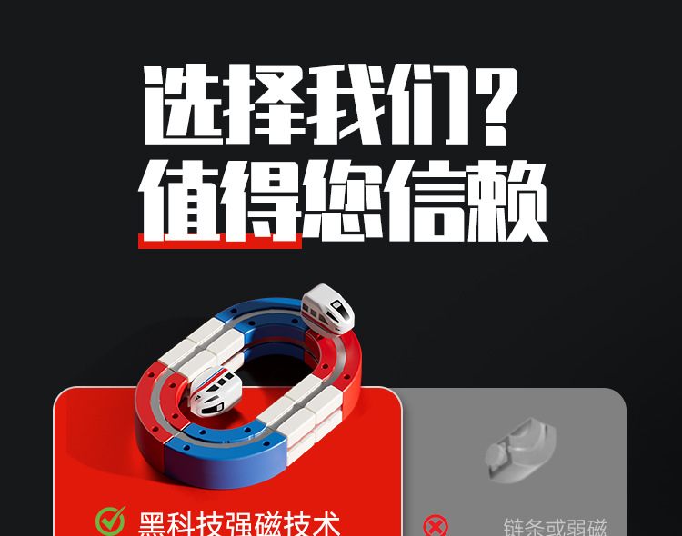 典藏双轨版【高端磁吸电动高铁火车】百变魔幻轨道立方体【190PCS】品质礼盒 USD $18.14 993 box available