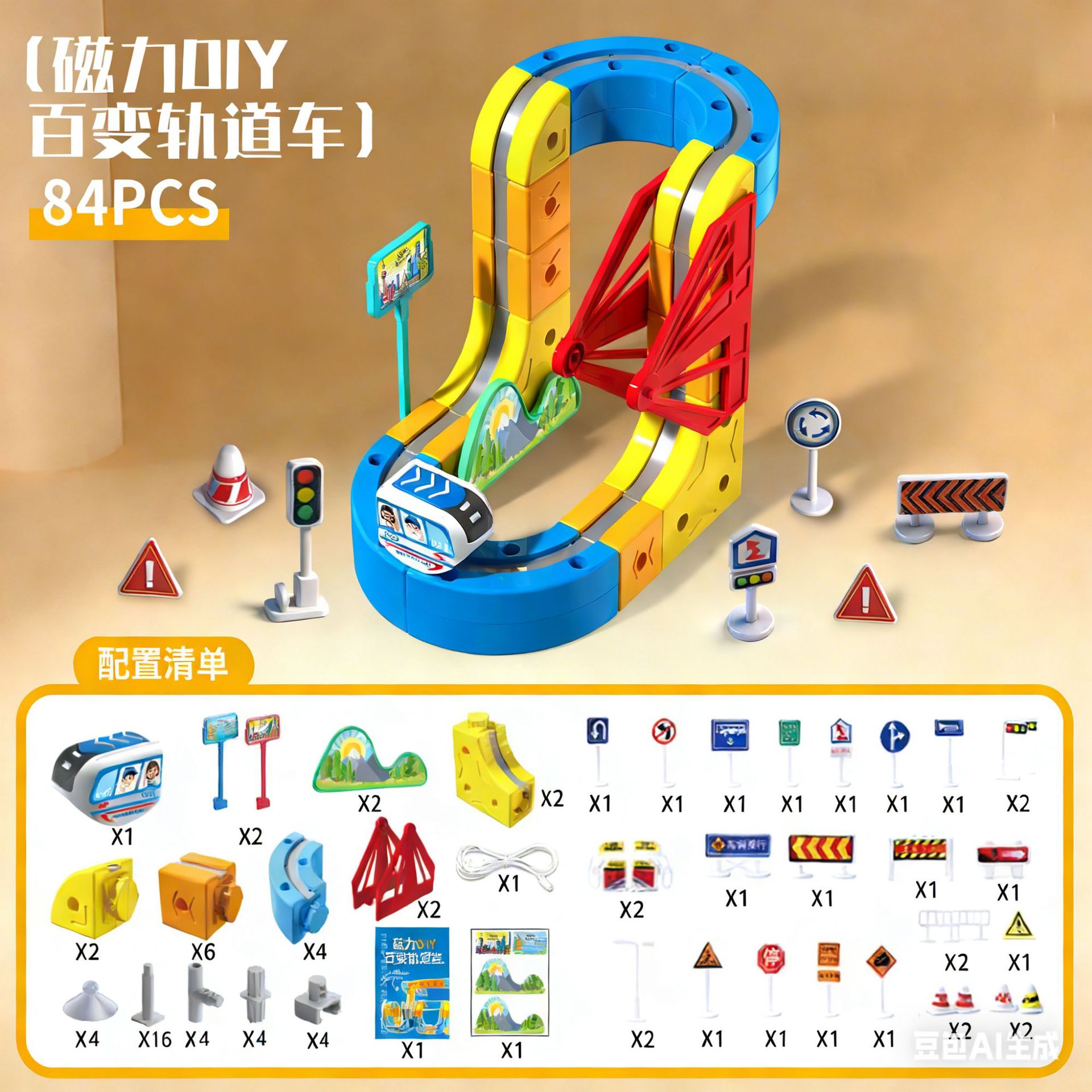 1车版-百变磁力轨道【84件套】 USD $5.43 998 box available