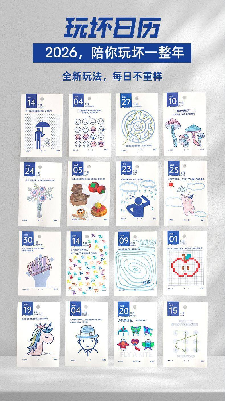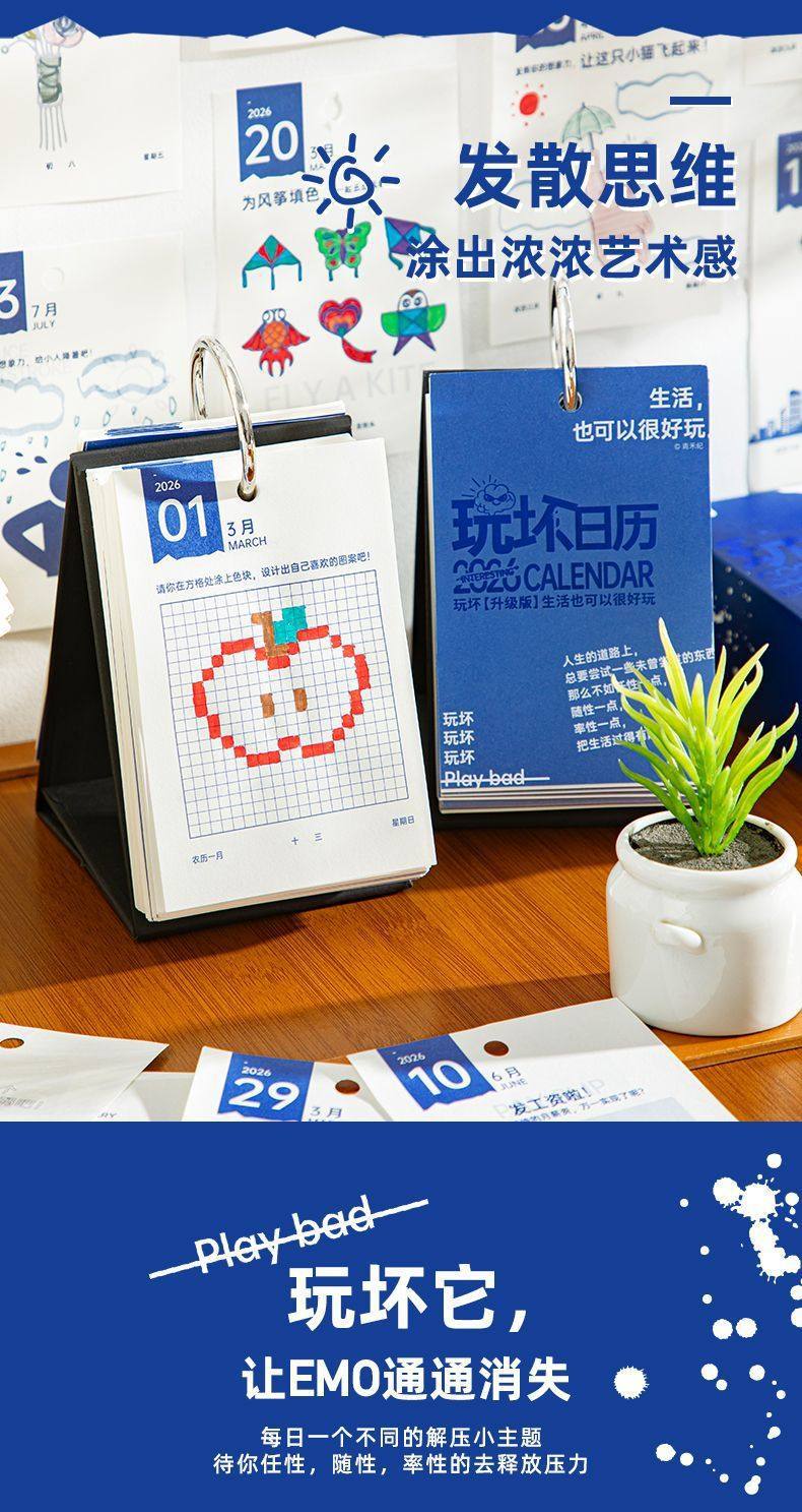 青禾纪2026玩坏日历好玩解压倒计时365天200天100天盒装台历批发