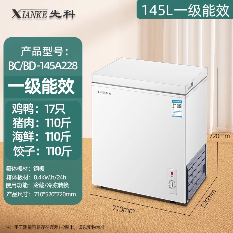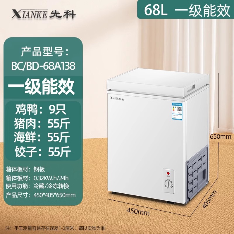 先科节能小冰柜家用迷你减霜商用冷柜小型全冷冻冷藏两用冷柜