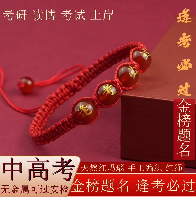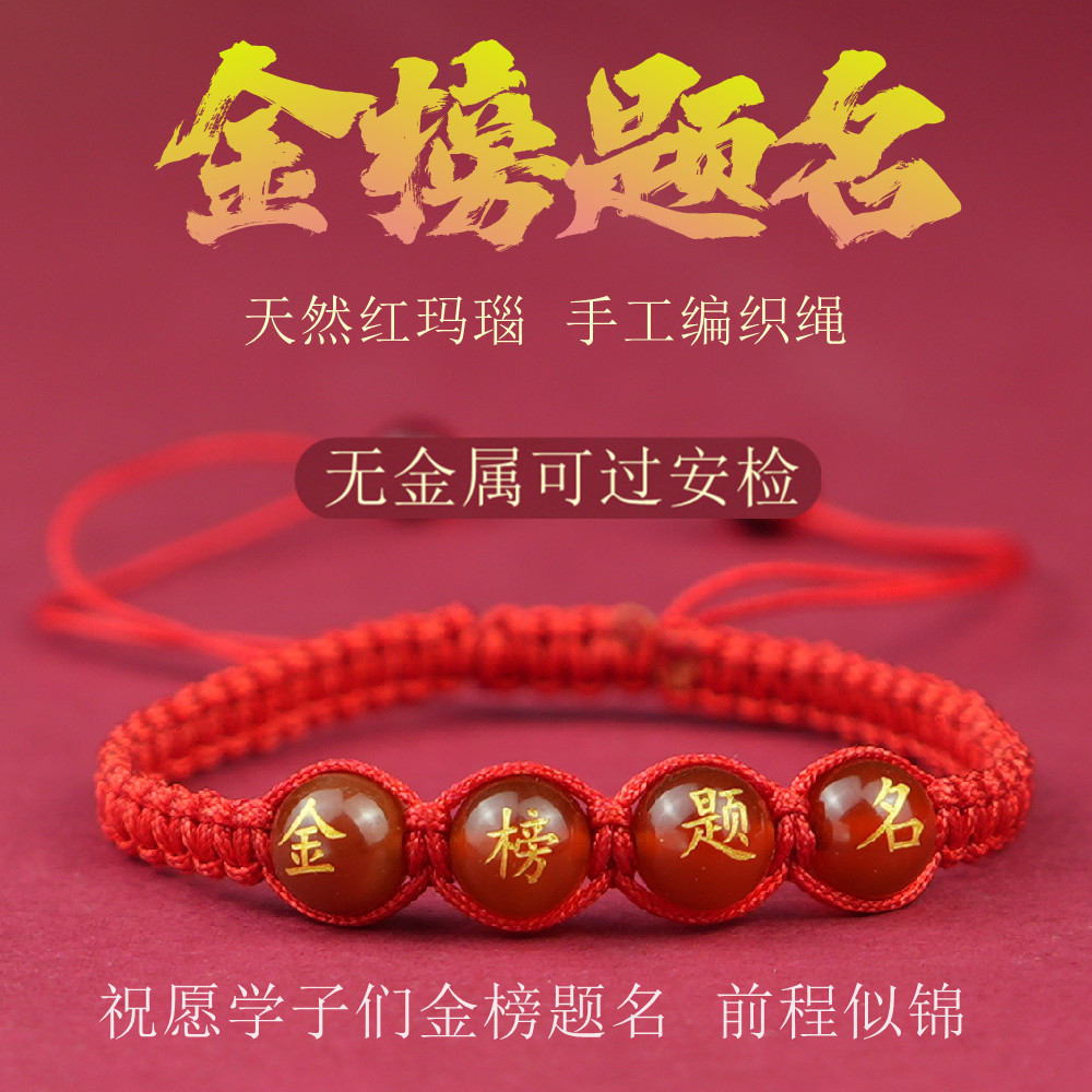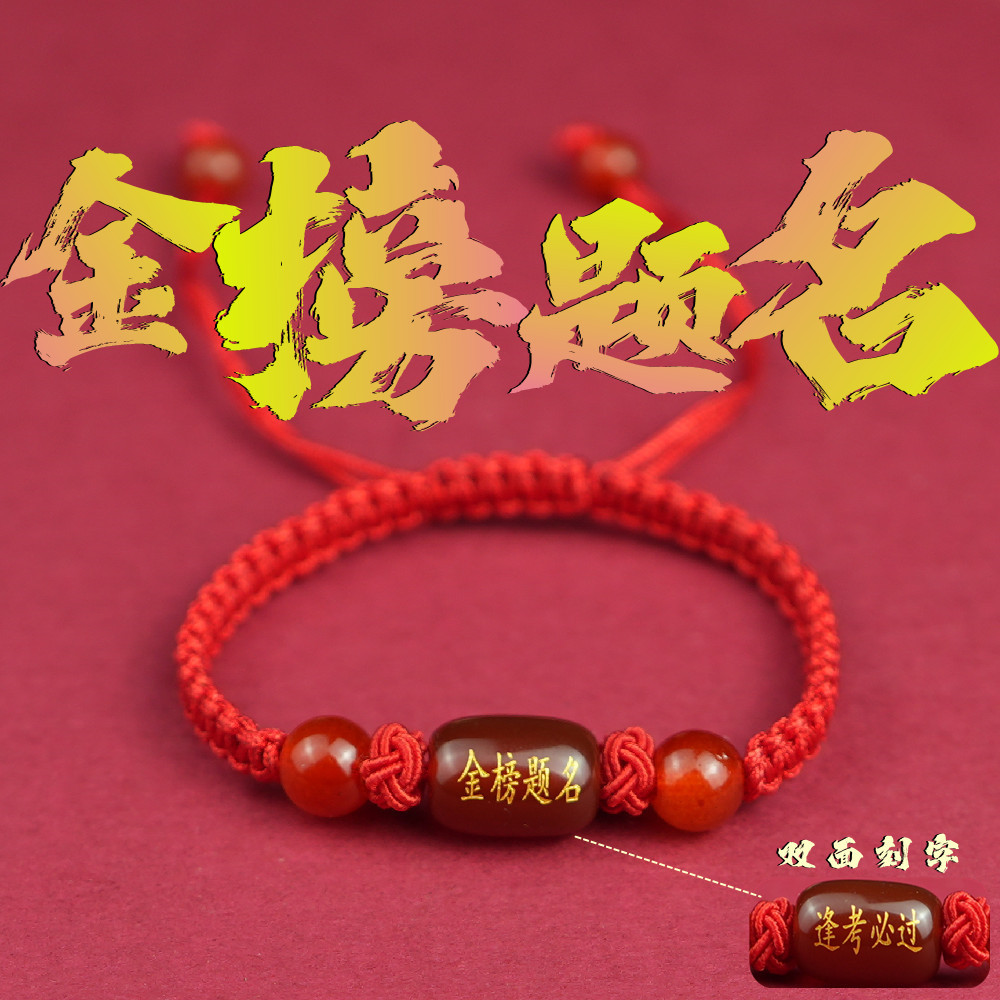 金榜题名手链高三中考高中生红玛瑙红绳手工编织绳学生版祝福礼物