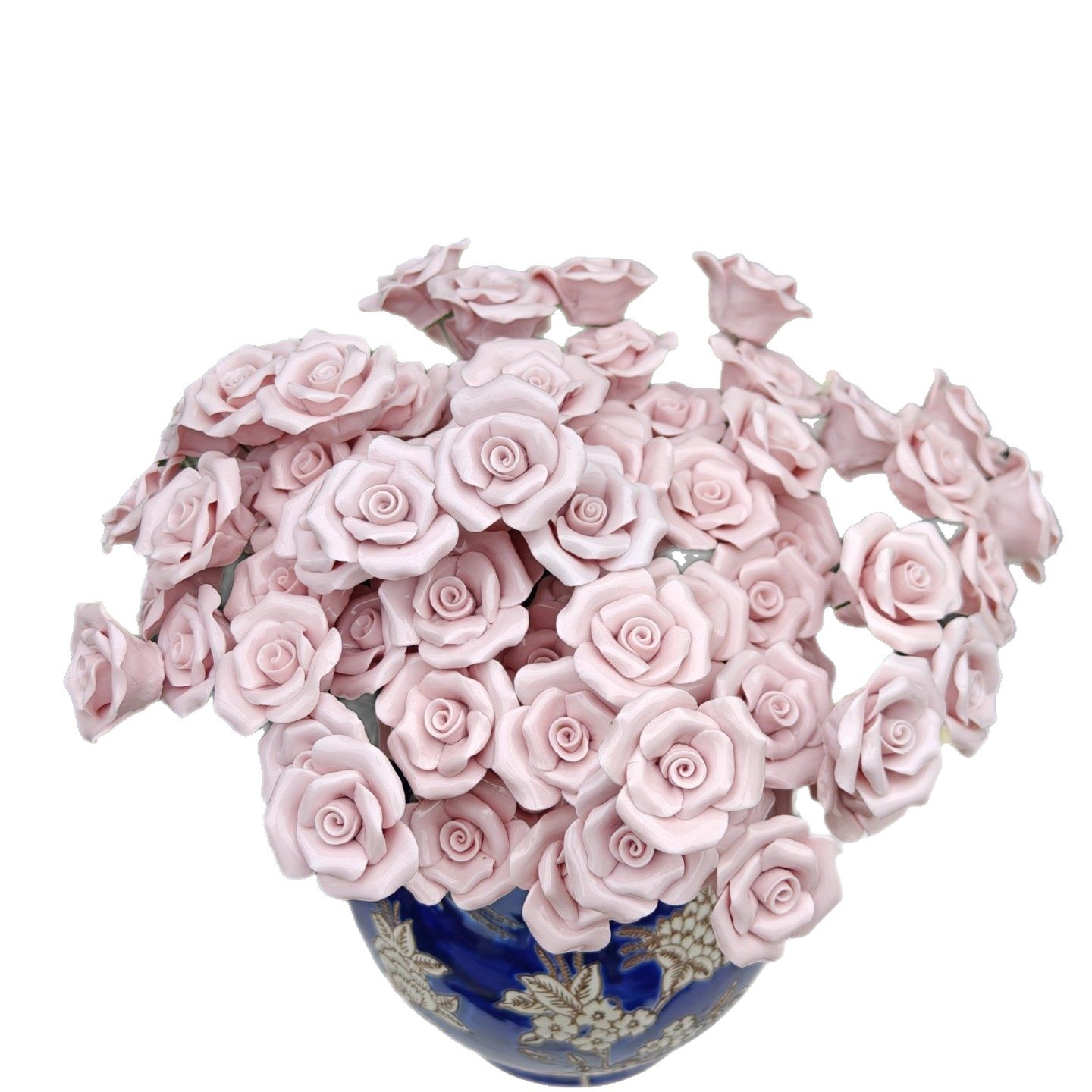 手工陶瓷玫瑰花创意永生花送女朋友装饰花束生日七夕礼物仿真花朵