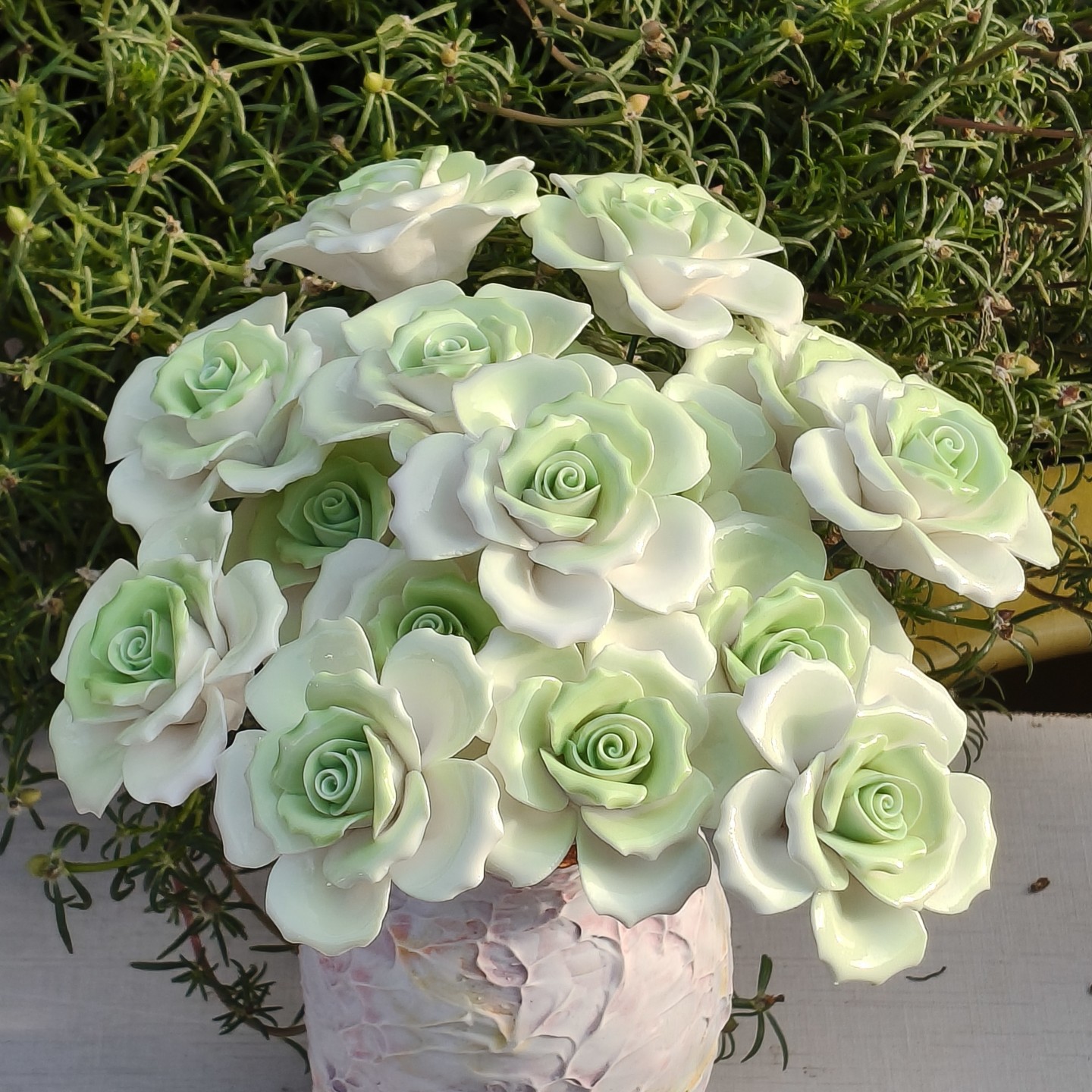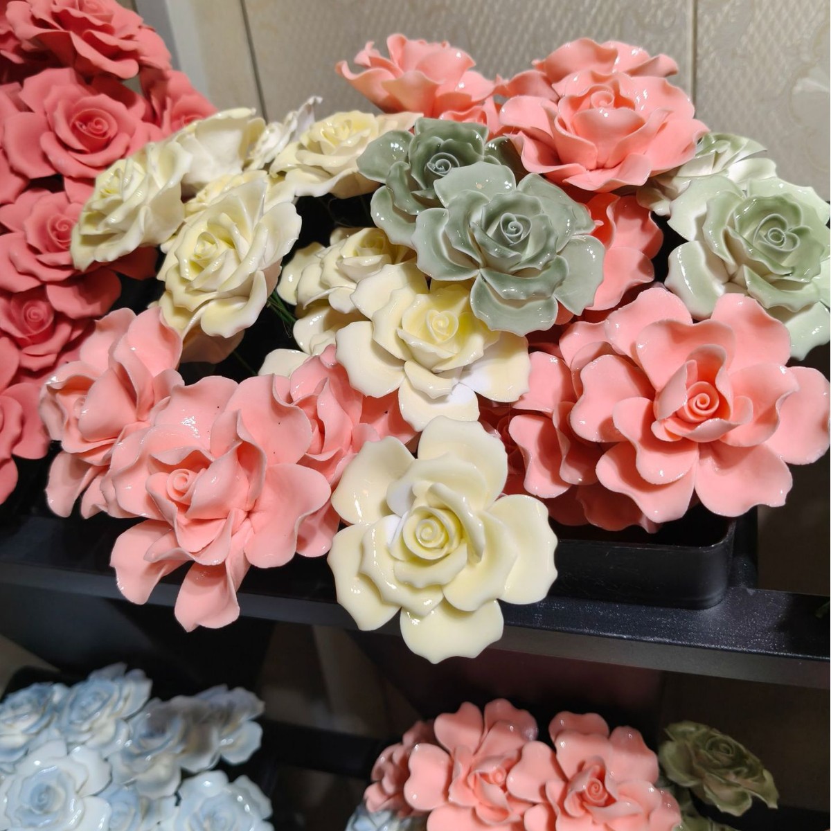 情人节礼物陶瓷花朵摆件手工捏花网红仿真永生花桌面简约创意摆摊