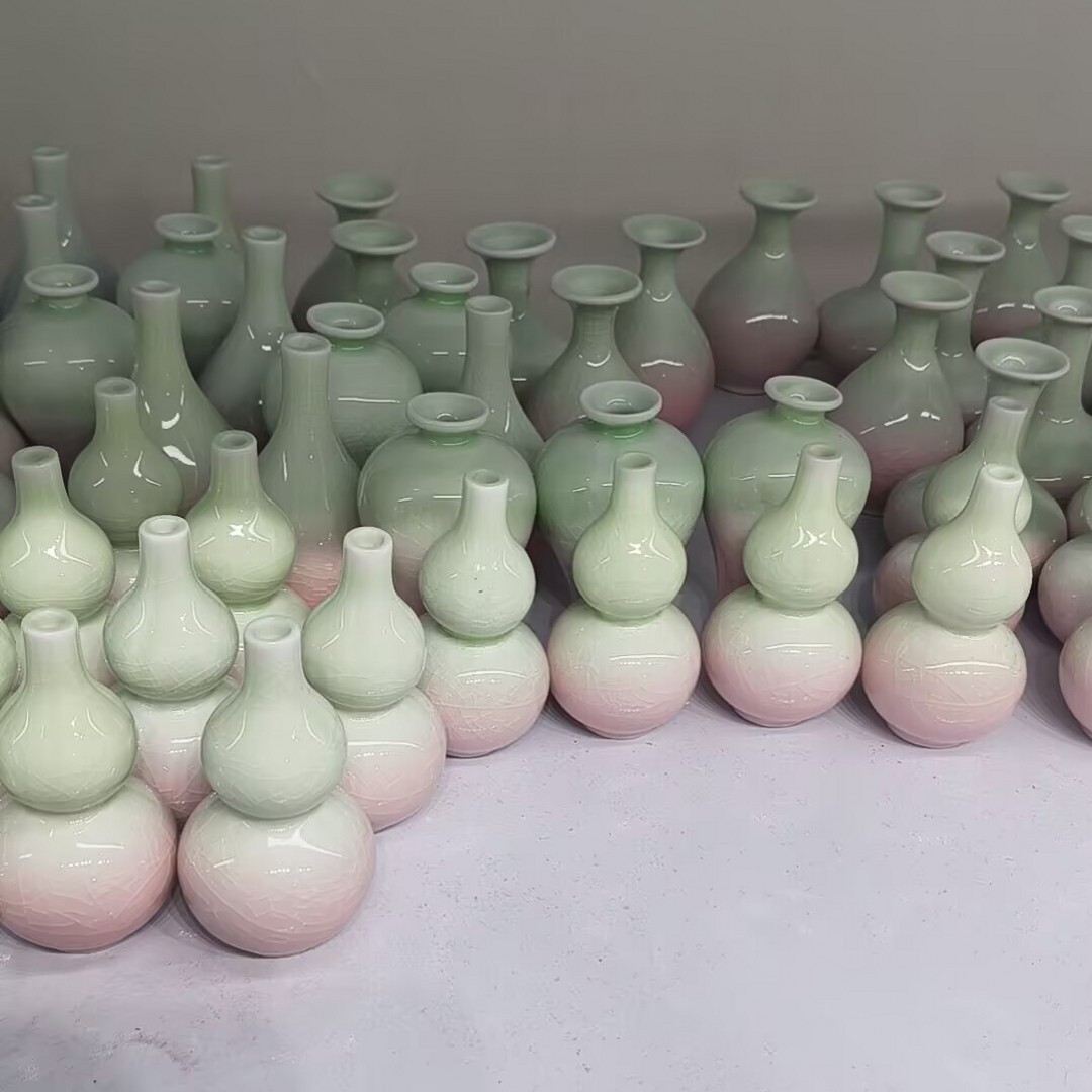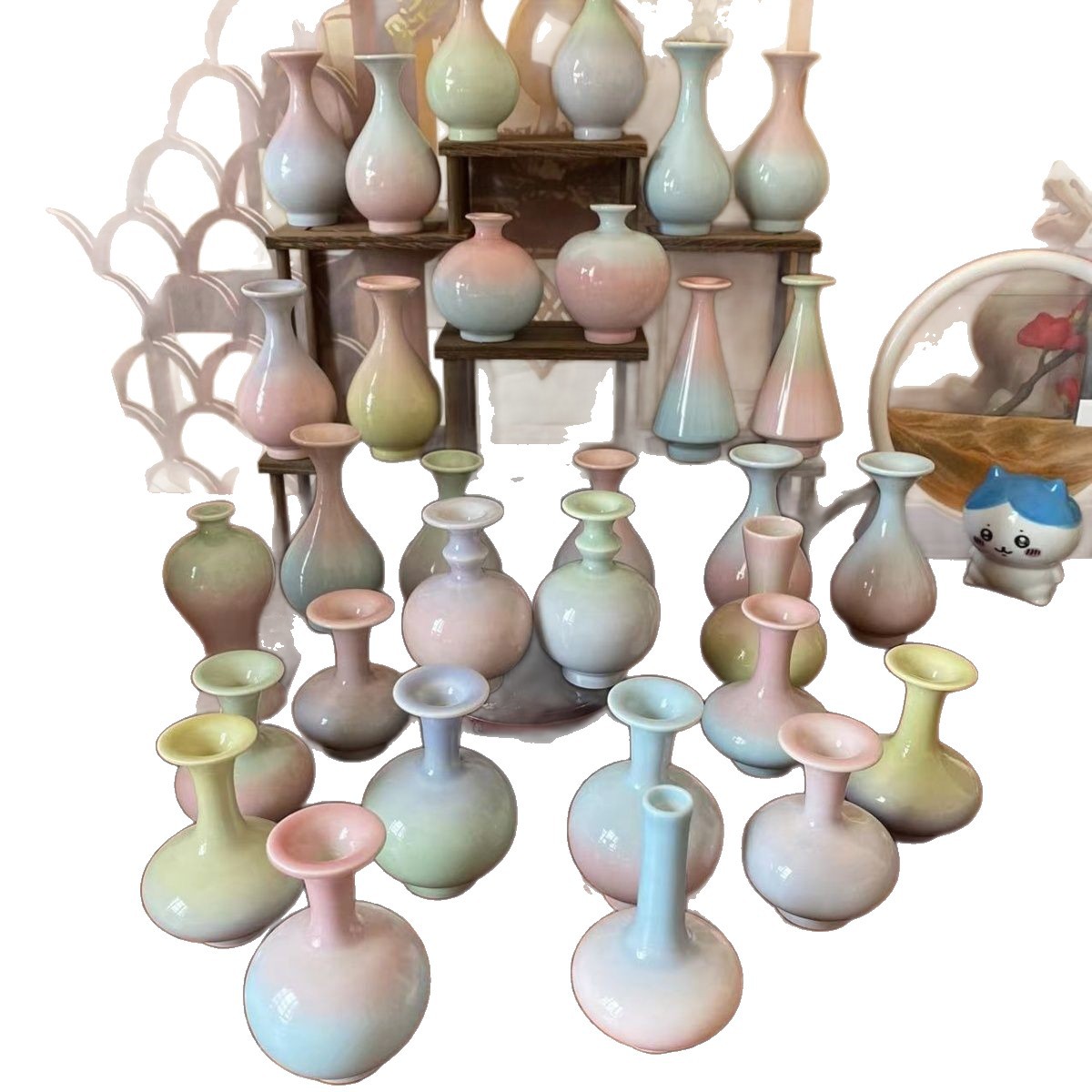 陶瓷裂纹小花瓶摆件插花陶瓷花国风创意家居可爱精致桌面装饰花器