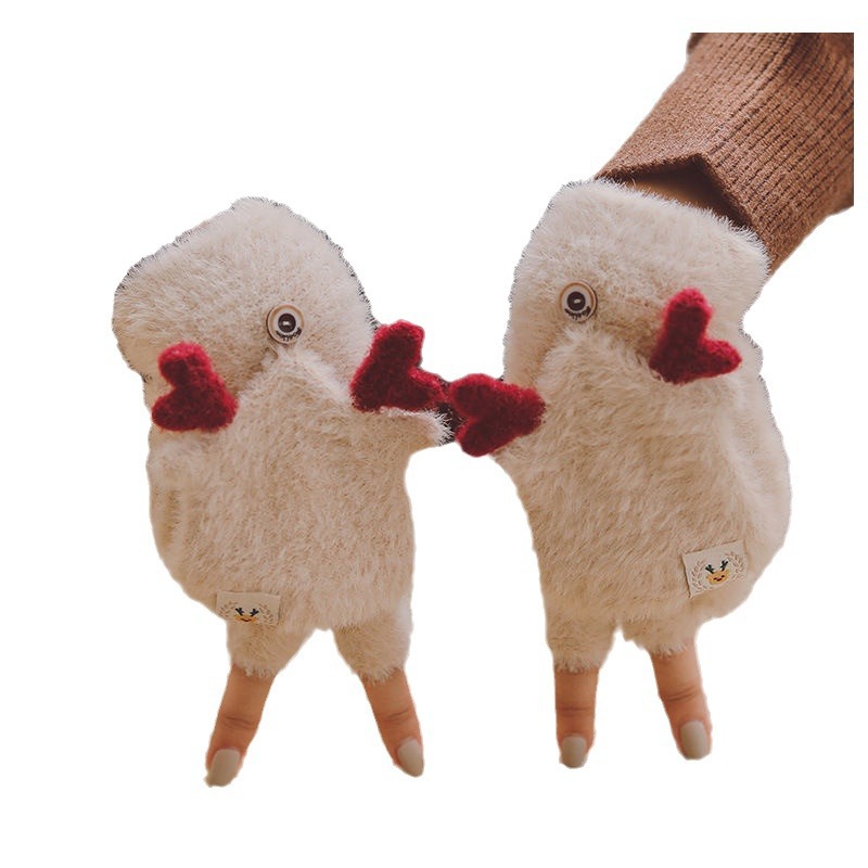 保暖手套秋冬季鹿角手套女冬天可爱学生卡通半指手套写字翻盖韩版
