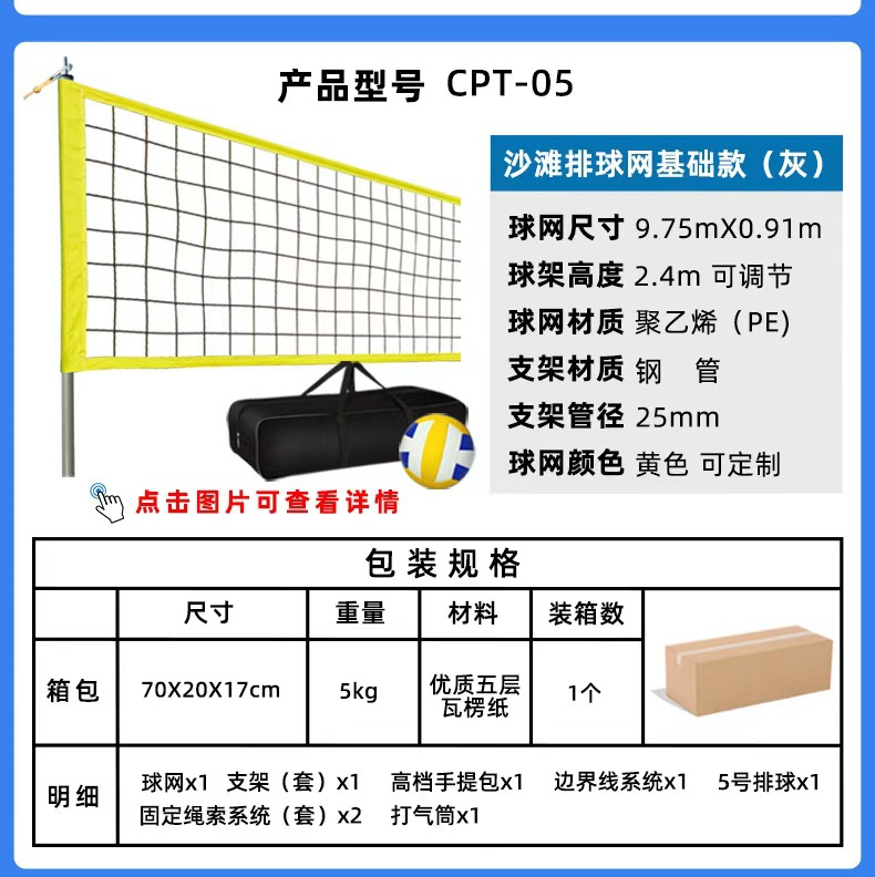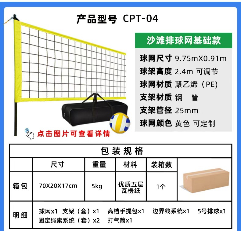 厂家批发跨境外贸后院沙滩草地排球网套装便携排球网套装排球网