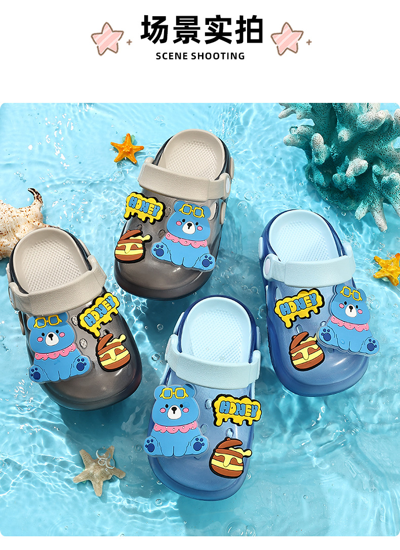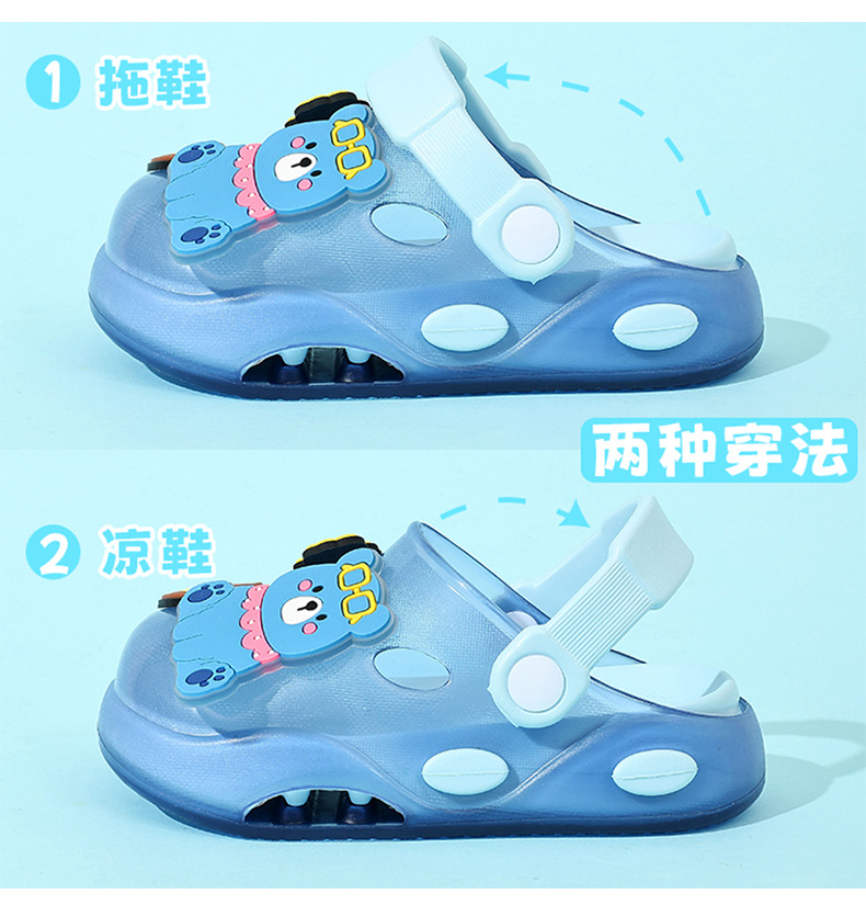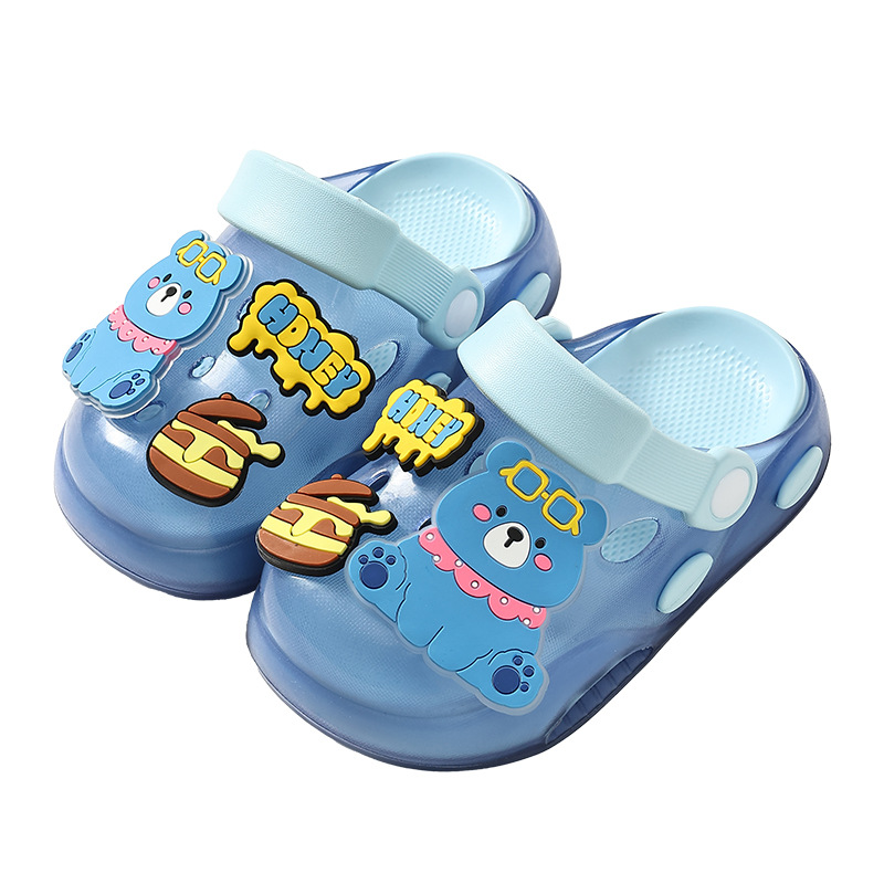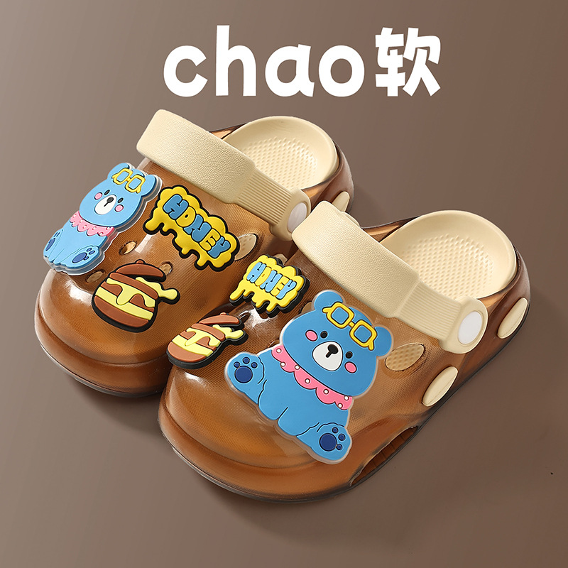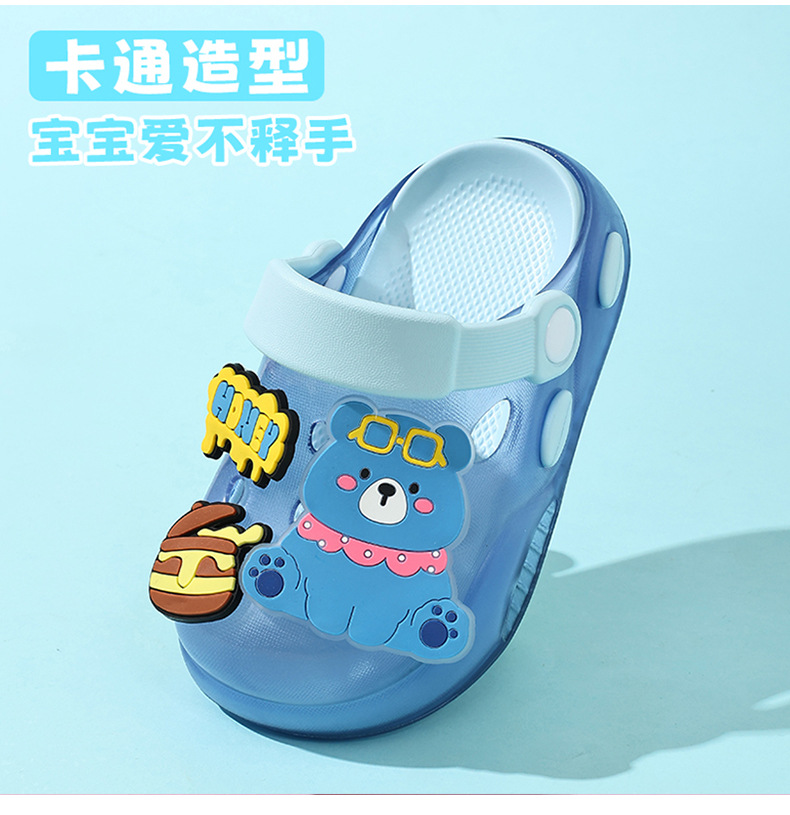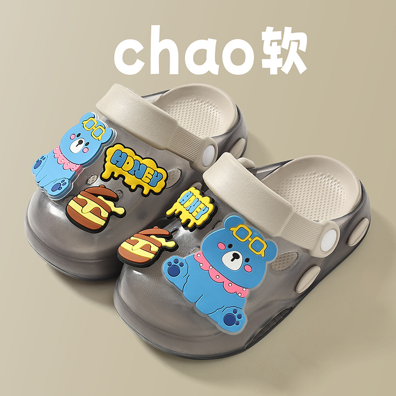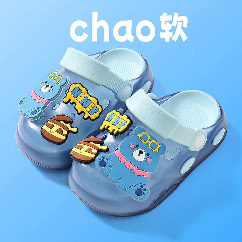 儿童洞洞鞋夏季男童居家软底卡通小熊可爱幼儿园宝宝外穿凉拖鞋