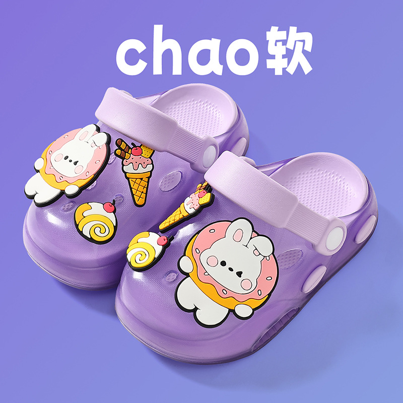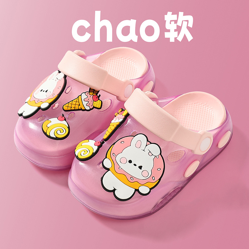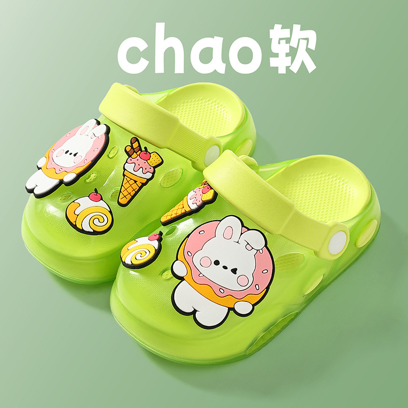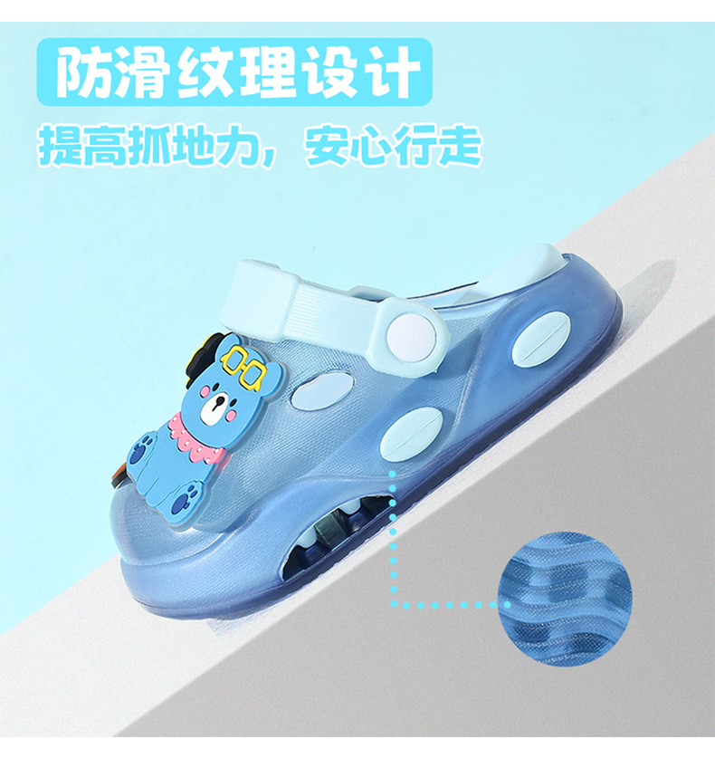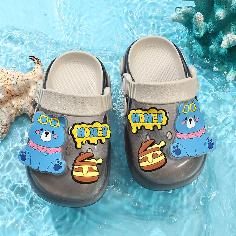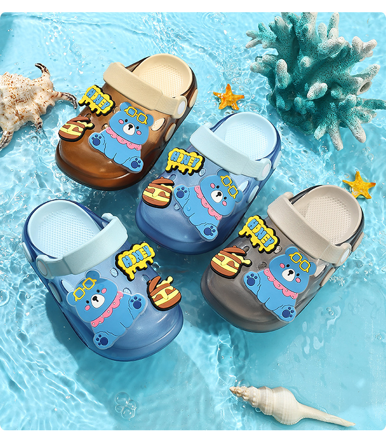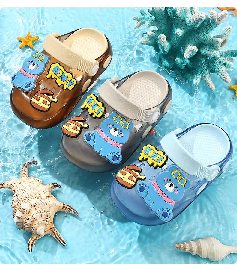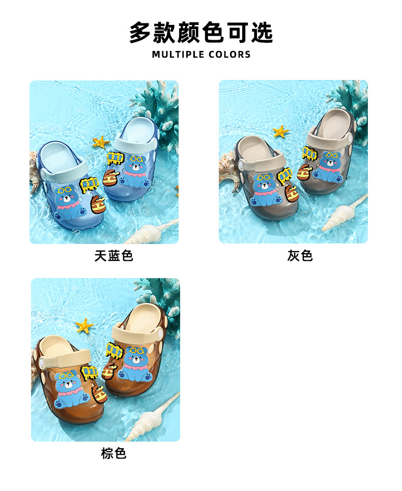儿童洞洞鞋夏季男童居家软底卡通小熊可爱幼儿园宝宝外穿凉拖鞋