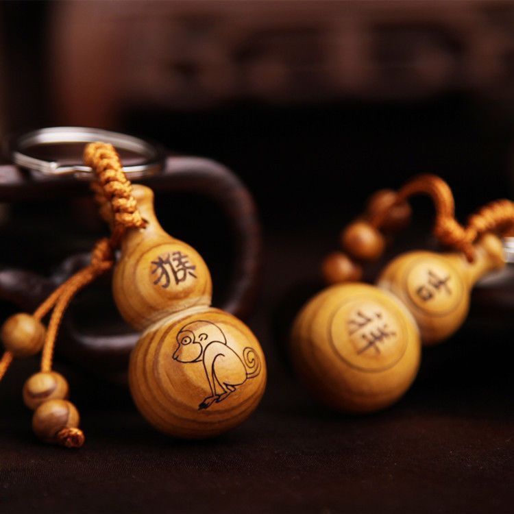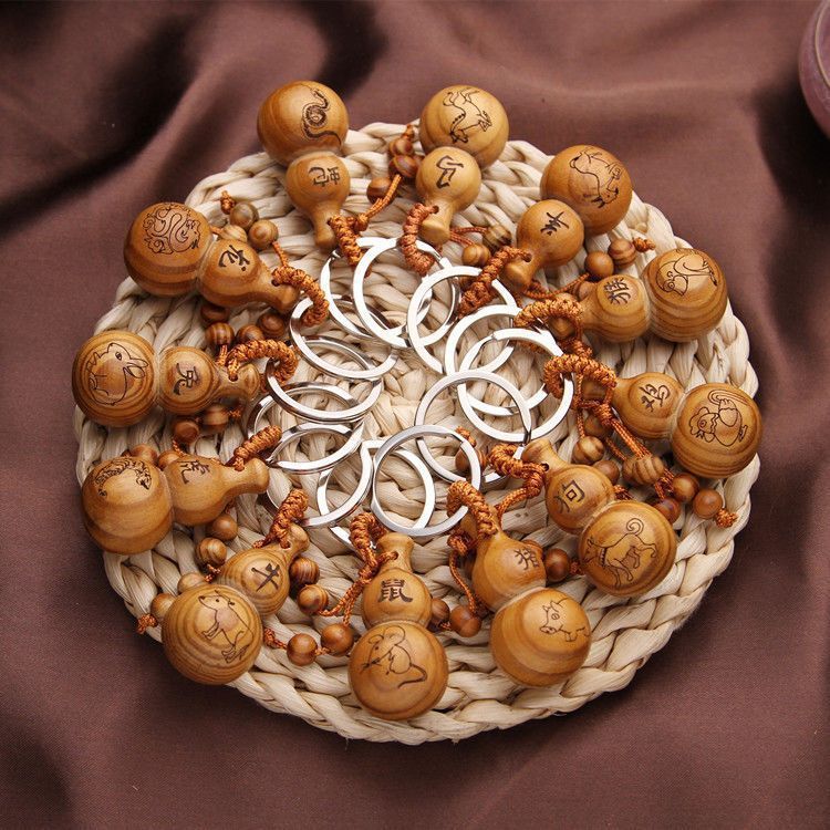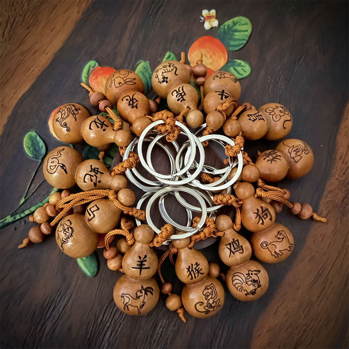 十二生肖葫芦汽车挂件钥匙扣桃木雕刻挂件创意男女礼物钥匙扣挂饰