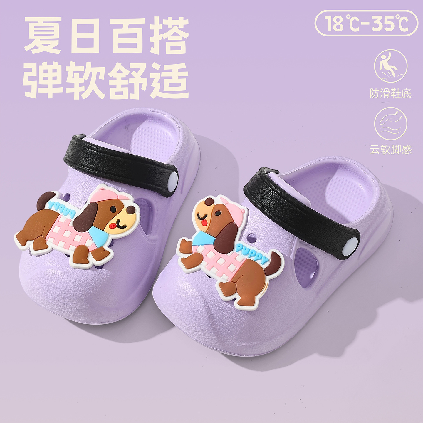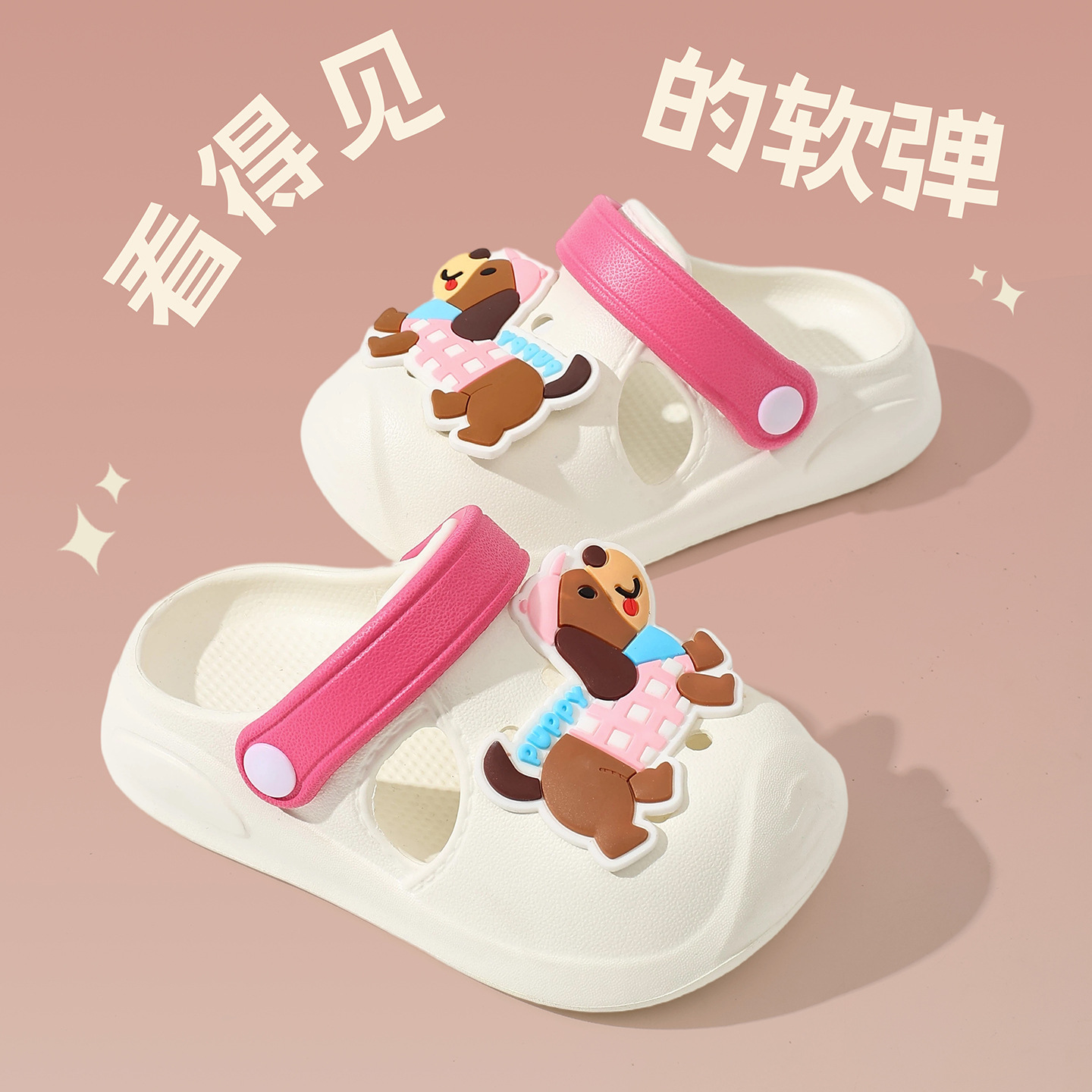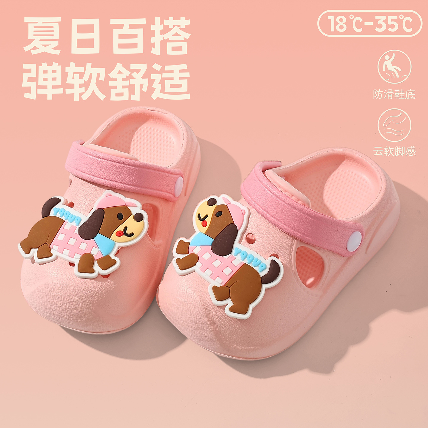 儿童洞洞鞋女童夏季软底外穿DIY卡通小狗可爱婴幼童沙滩凉拖鞋男