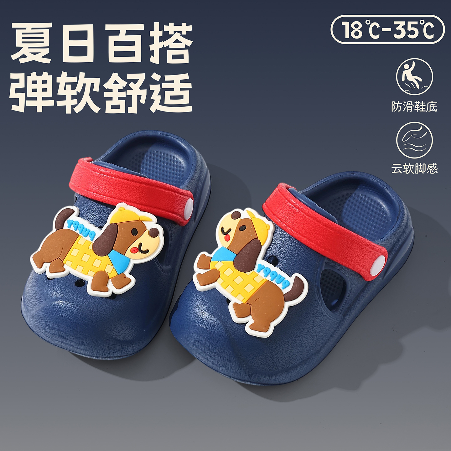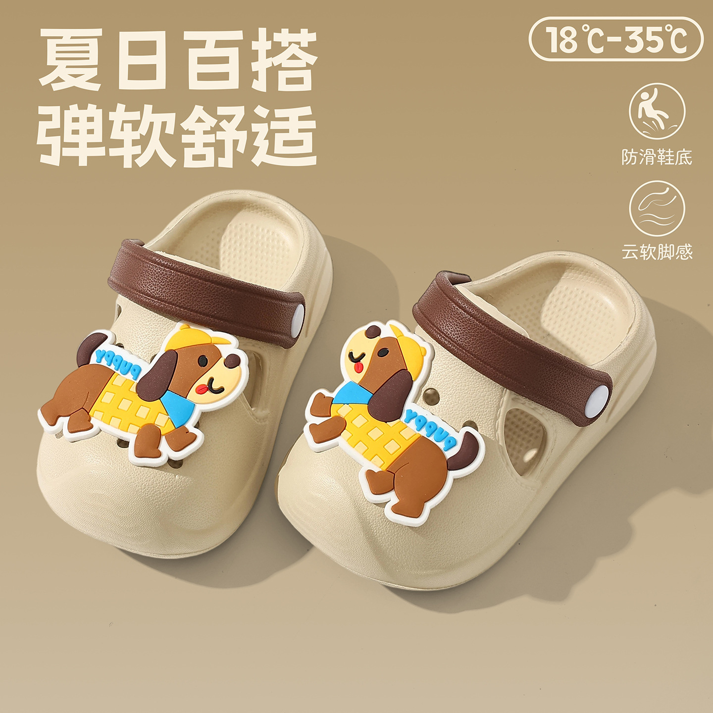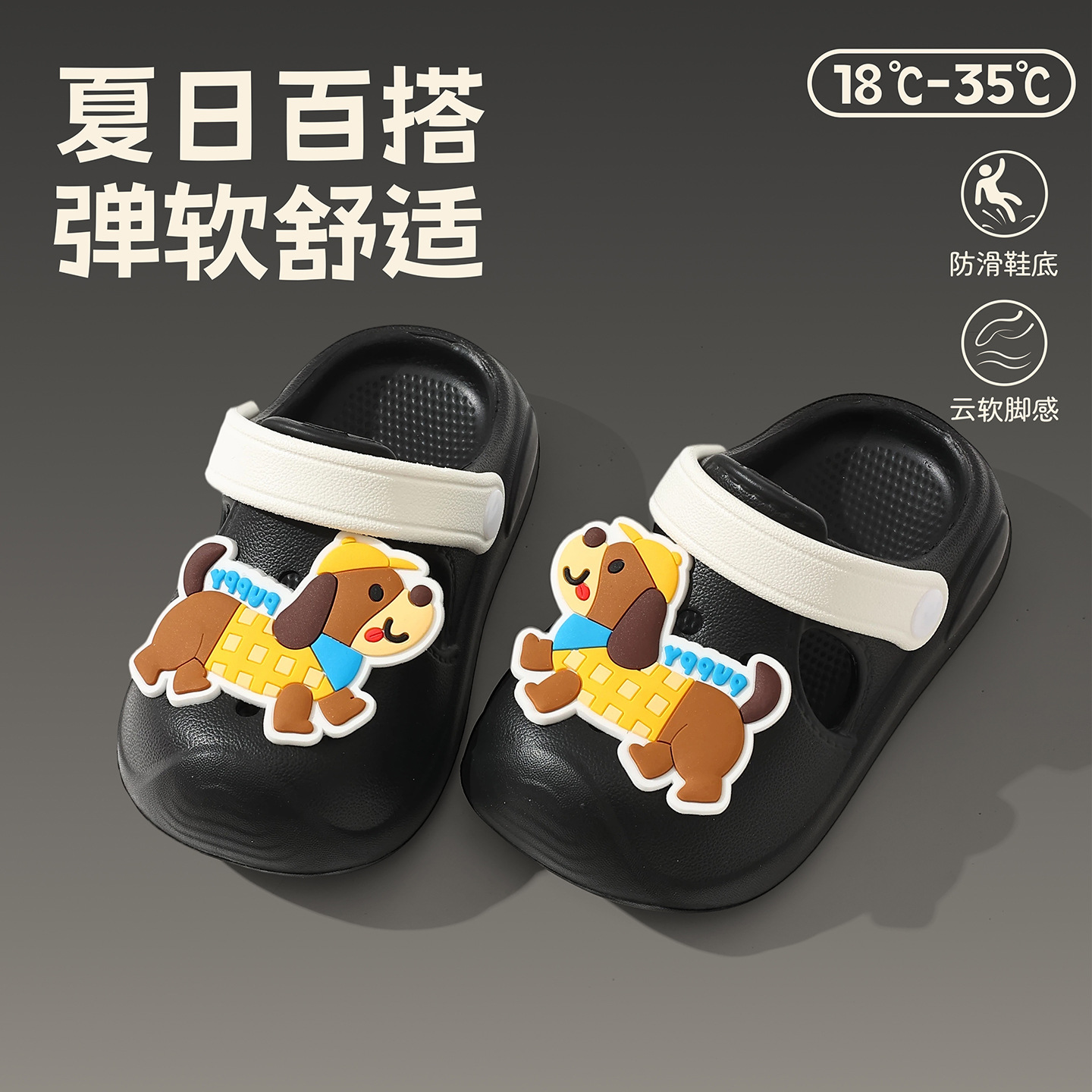 儿童洞洞鞋女童夏季软底外穿DIY卡通小狗可爱婴幼童沙滩凉拖鞋男