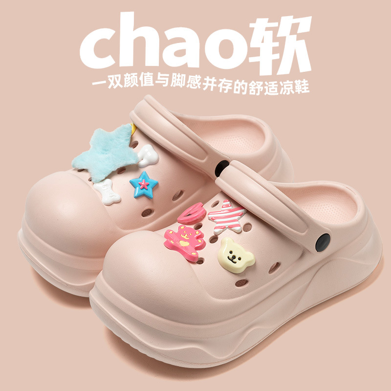 夏季洞洞鞋女卡通可爱厚底外穿EVA踩屎感环保材质沙滩凉拖鞋女生