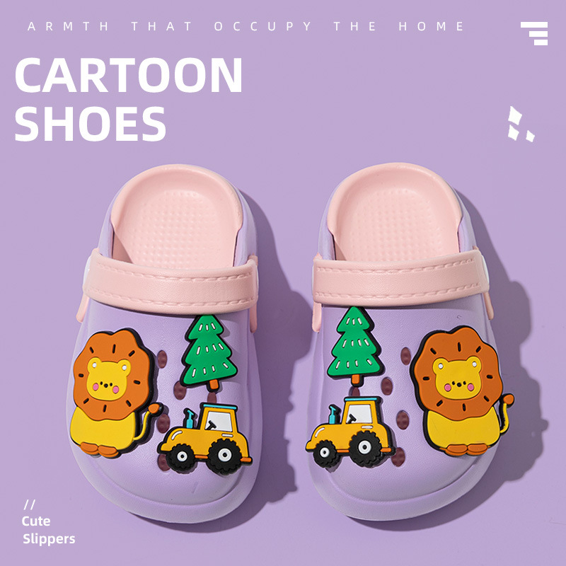 DIY新款儿童拖鞋女童夏季卡通可爱狮子户外穿沙滩洞洞鞋宝宝男童