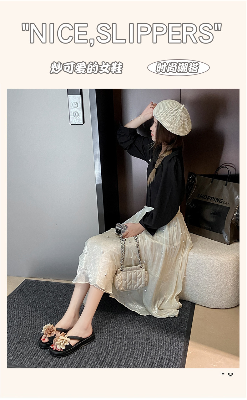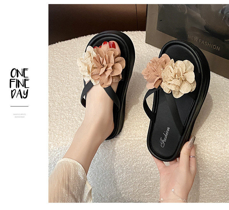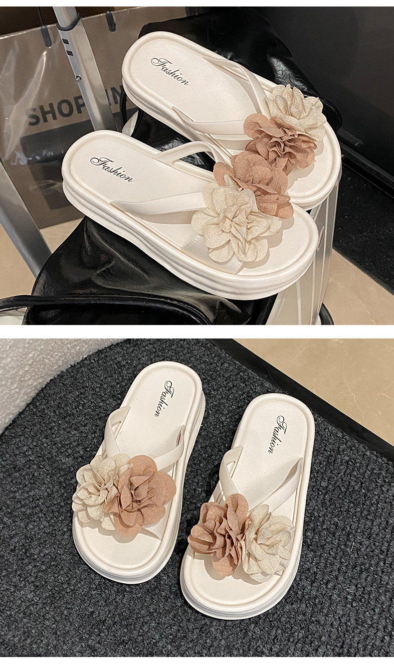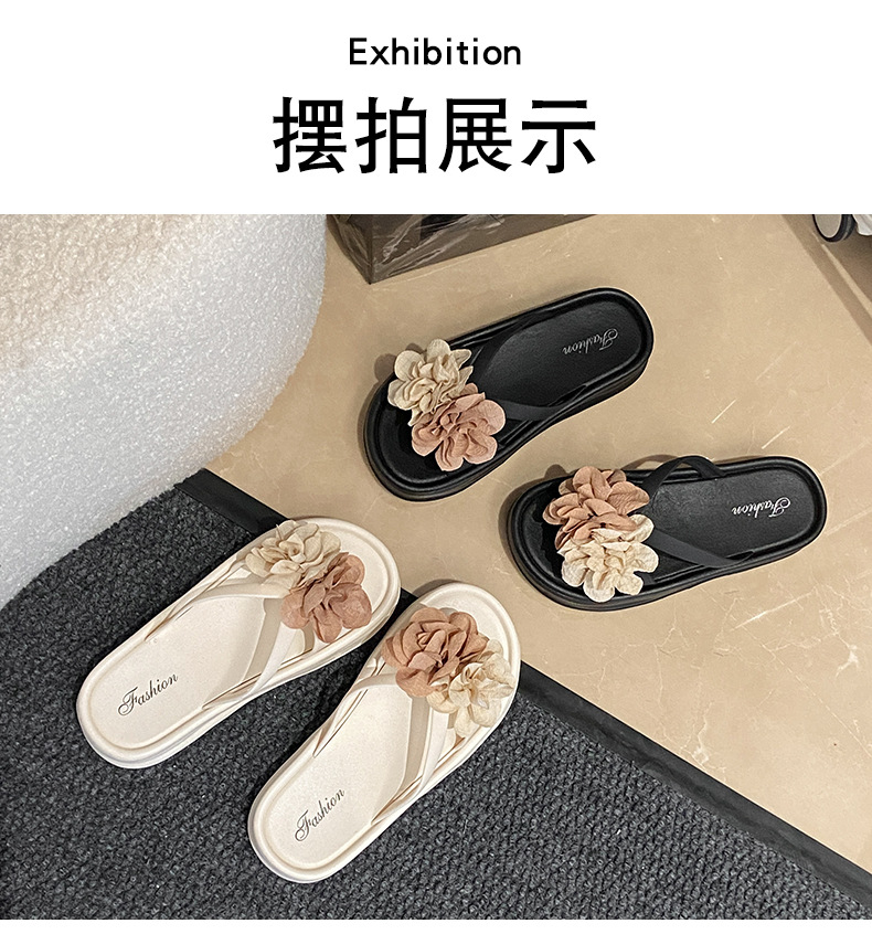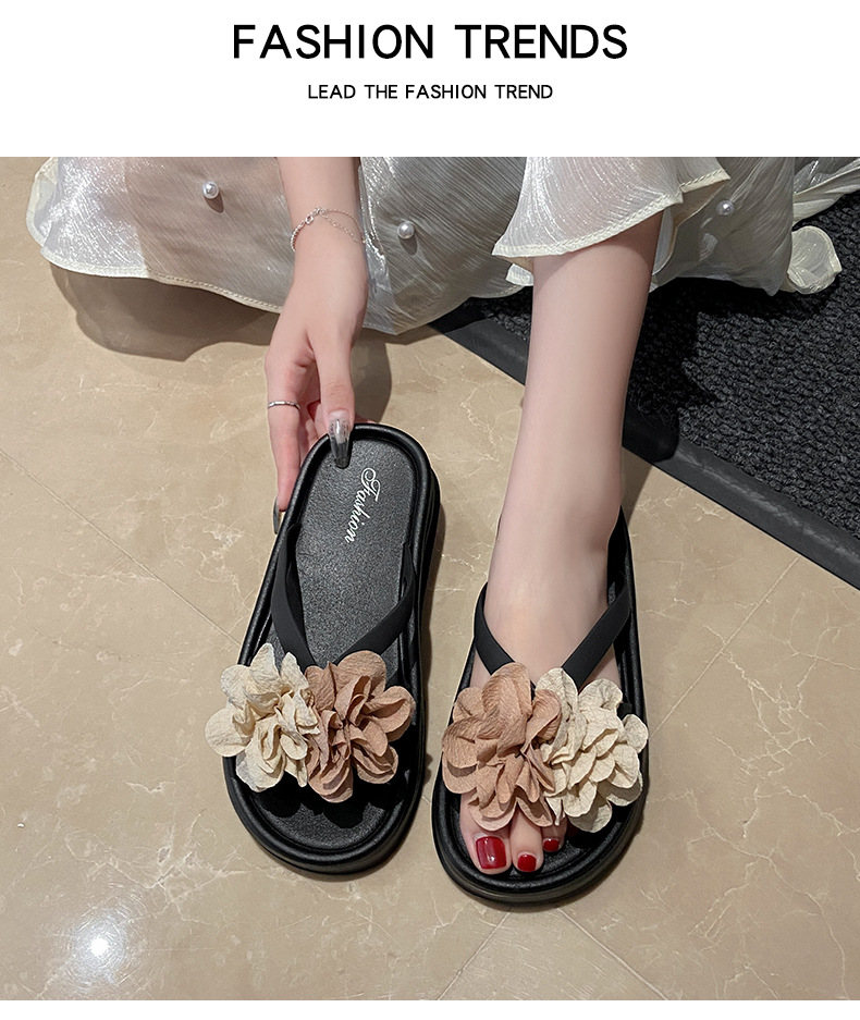 双色花厚底拖鞋女外穿夏季百搭平底防滑时装沙滩凉拖勃肯沙滩拖鞋