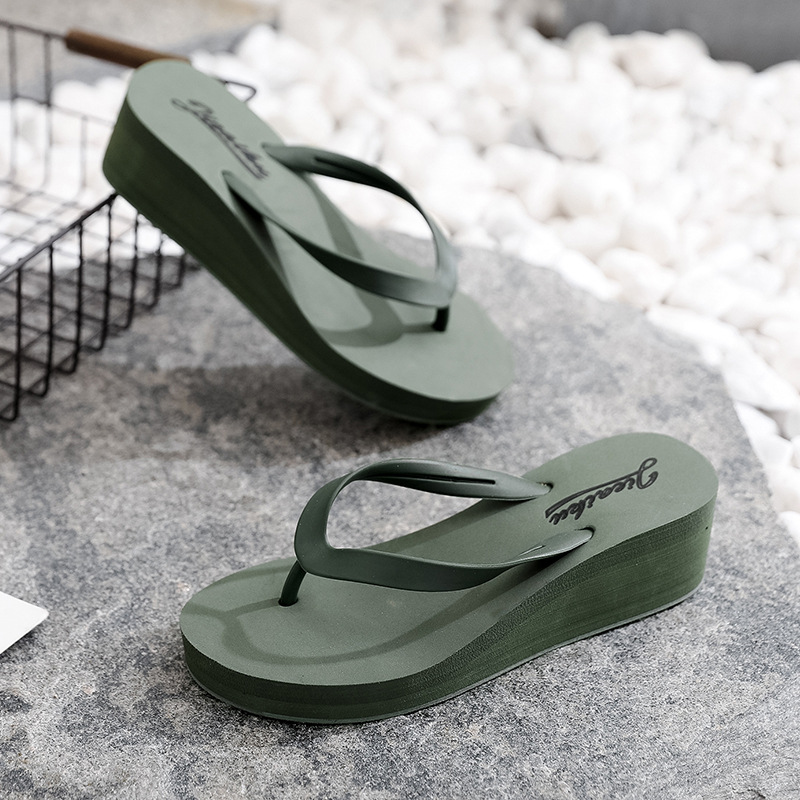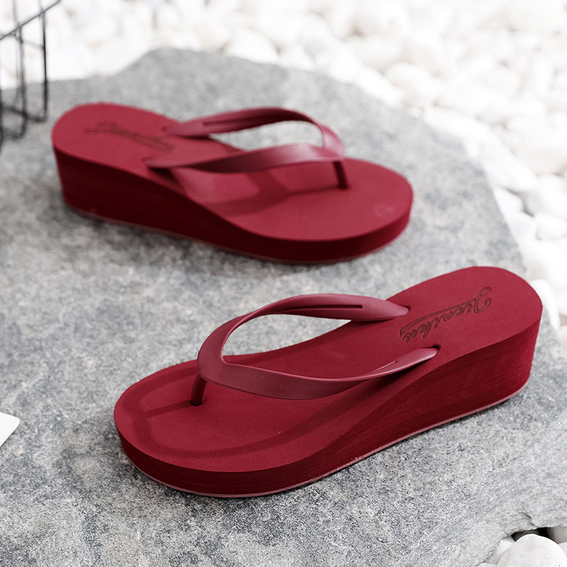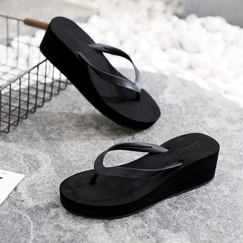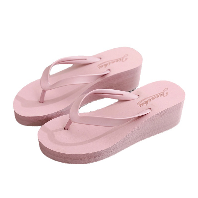 2024新高跟拖鞋女外穿夏坡跟鞋简约人字拖休闲沙滩夹脚拖厚底凉鞋