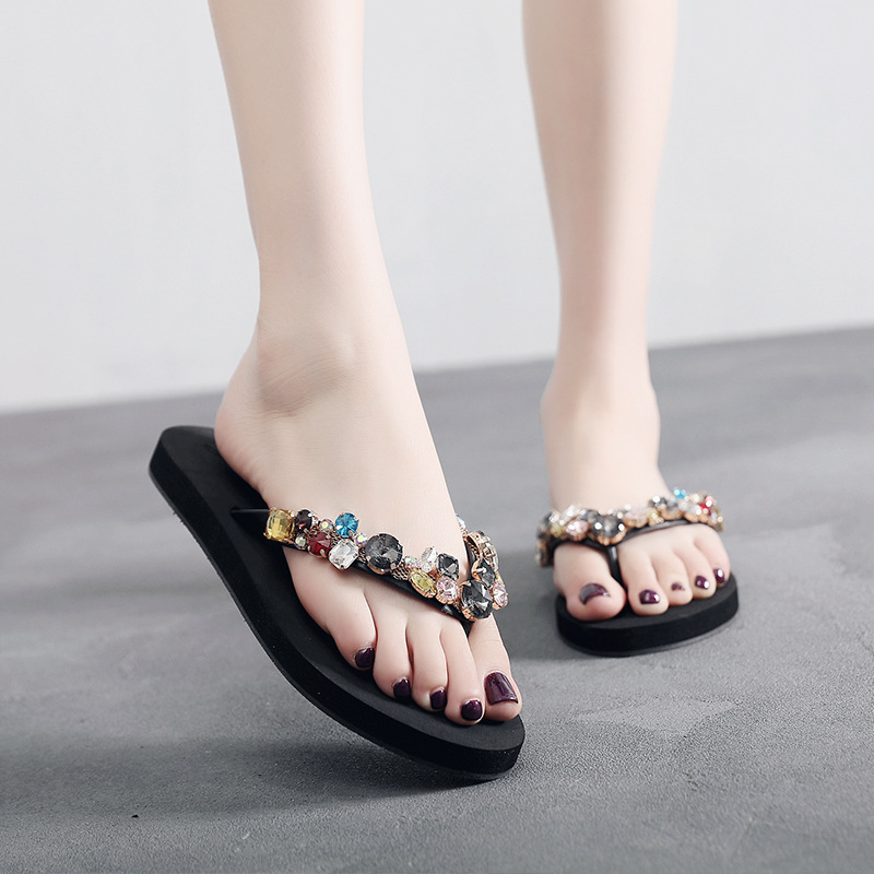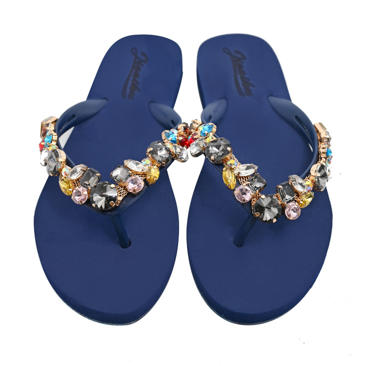 2024新款拖鞋夏时尚水钻凉鞋海边沙滩凉拖鞋百搭平底拖鞋女外穿