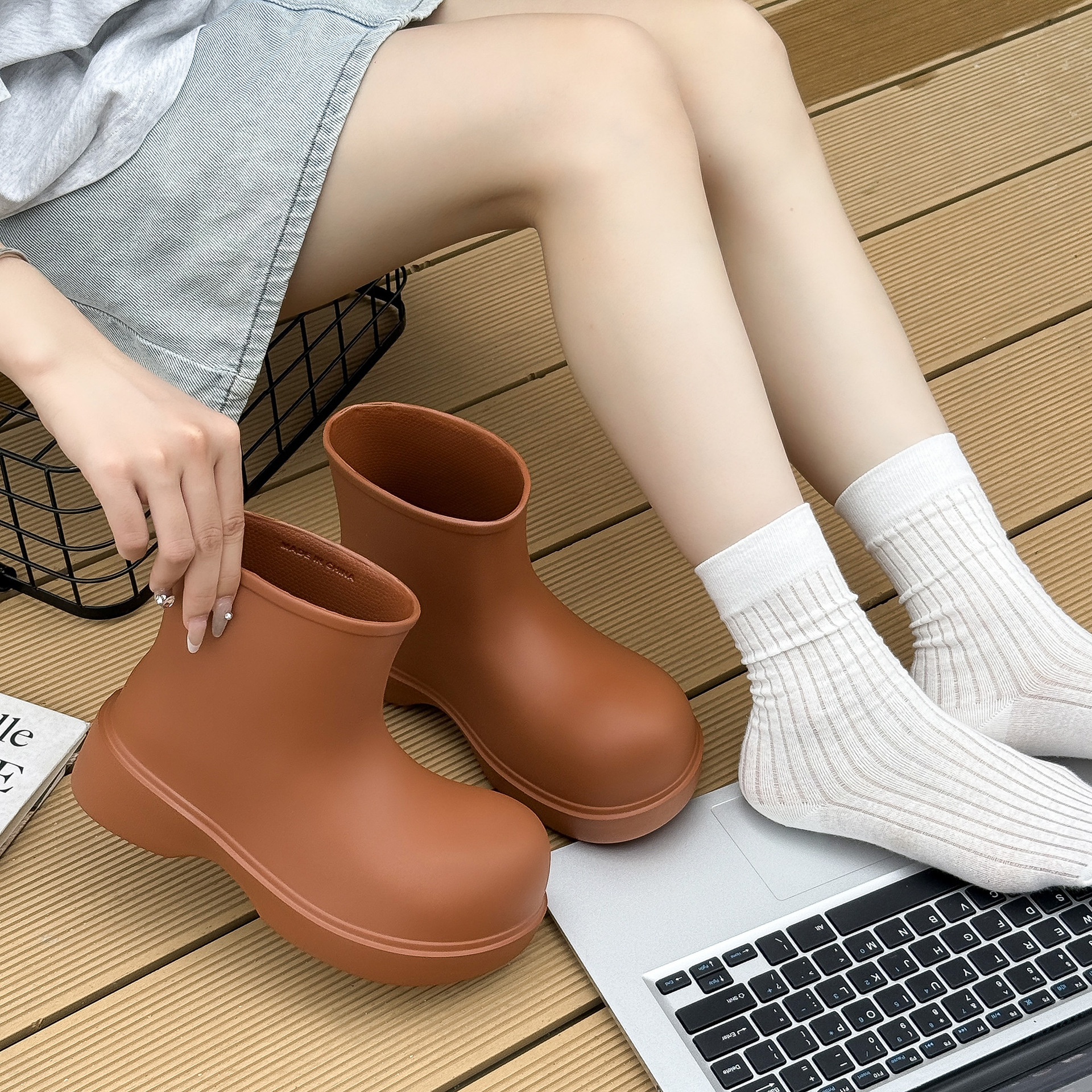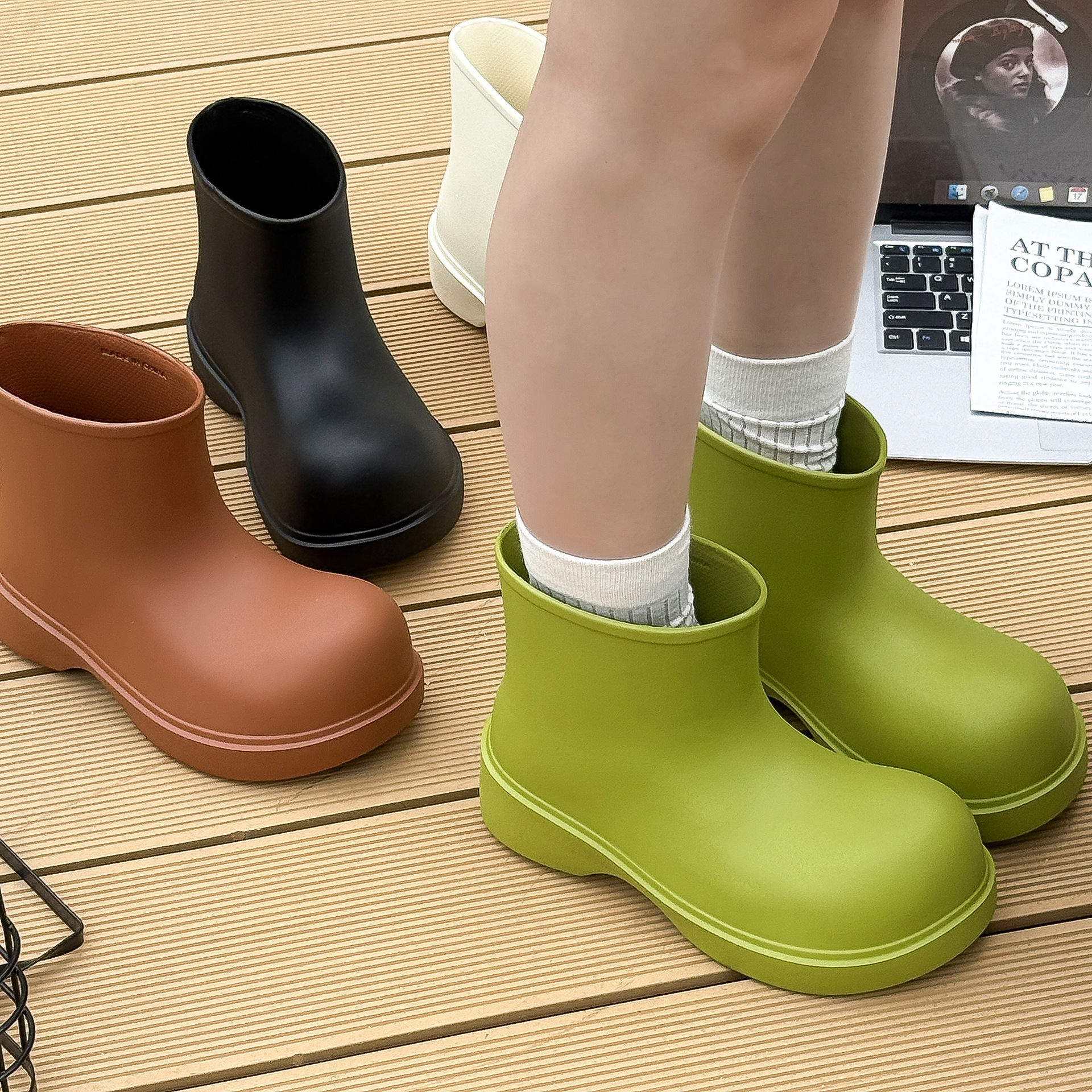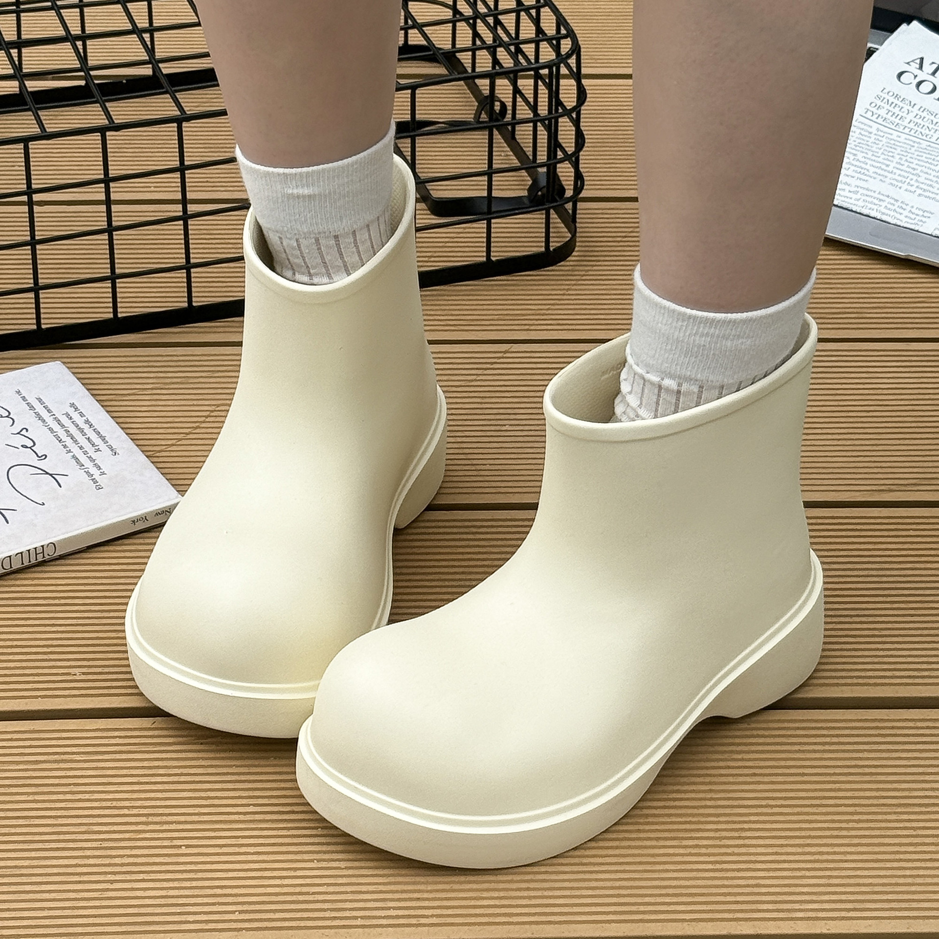韩系雨靴女短筒eva防水鞋时尚 厚底户外防滑厨房防滑简约水鞋四季