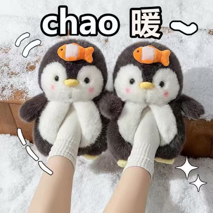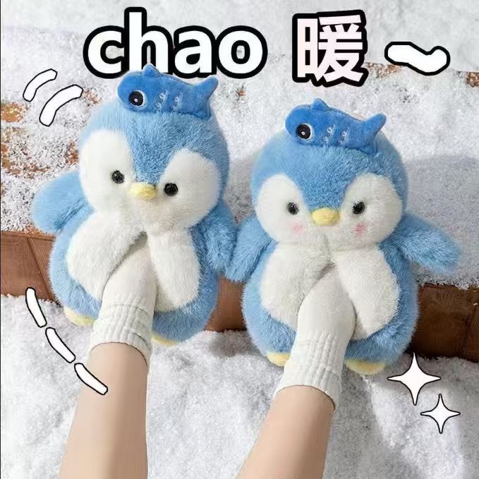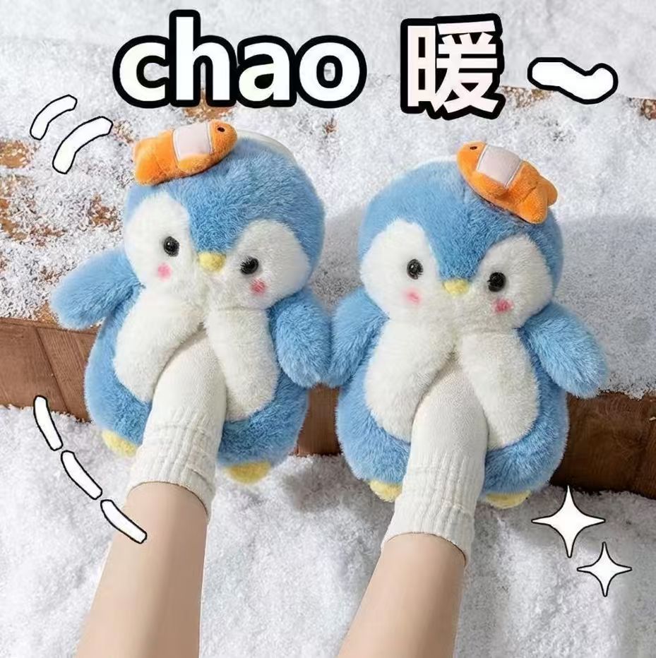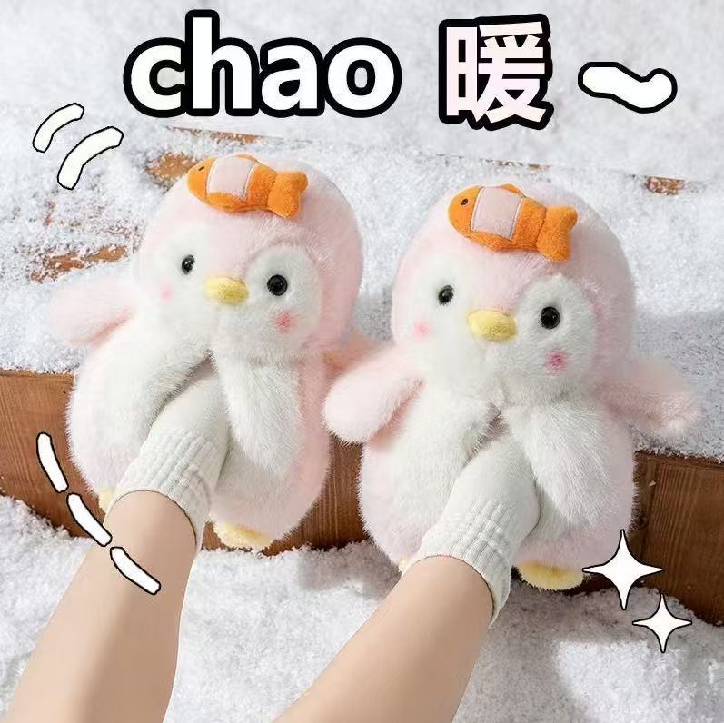冬季新款韩版可爱企鹅公仔爆款家居室内户外保暖毛绒棉鞋少女批发