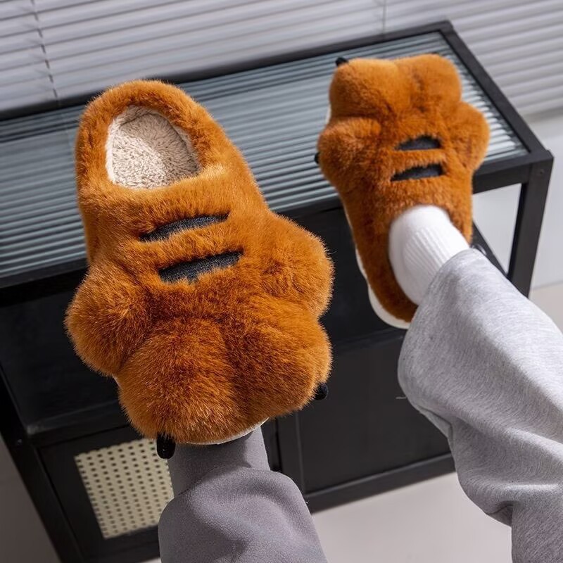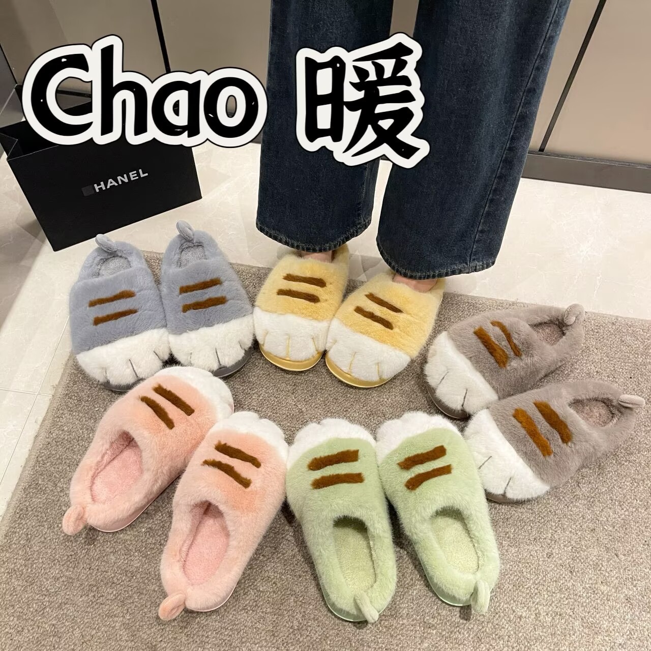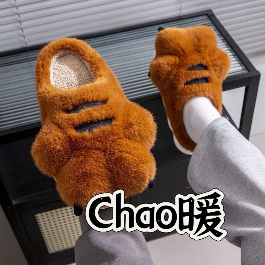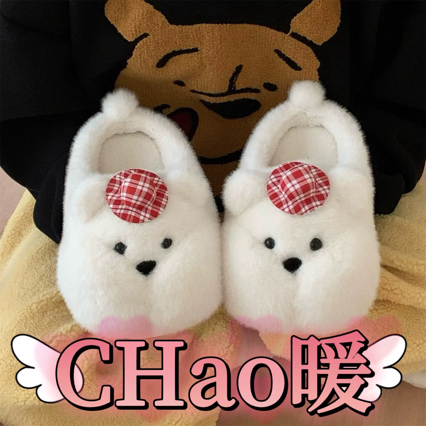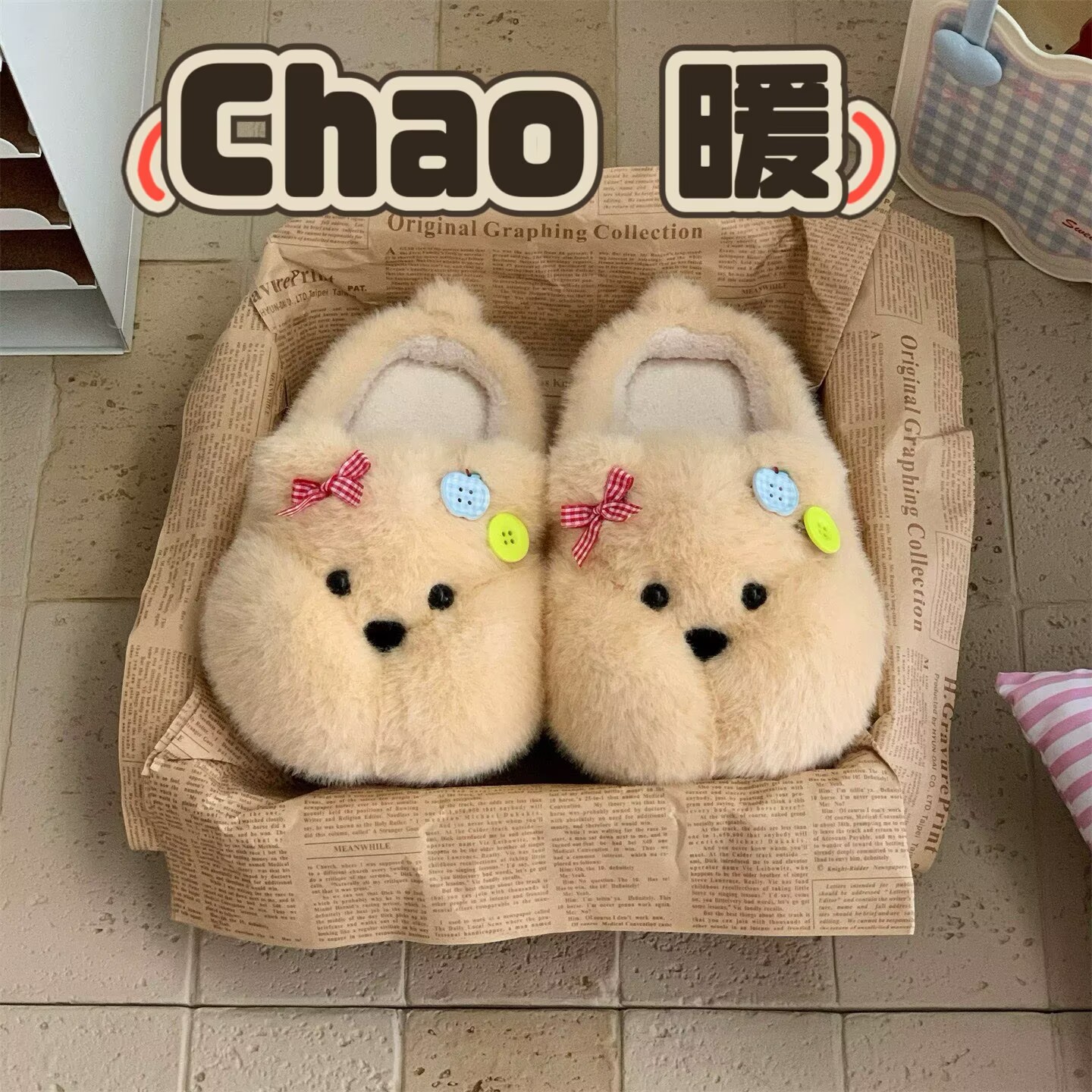 居家厚底学生居家防滑软萌小胖熊棉拖鞋可爱奶呼呼保暖毛毛鞋女冬
