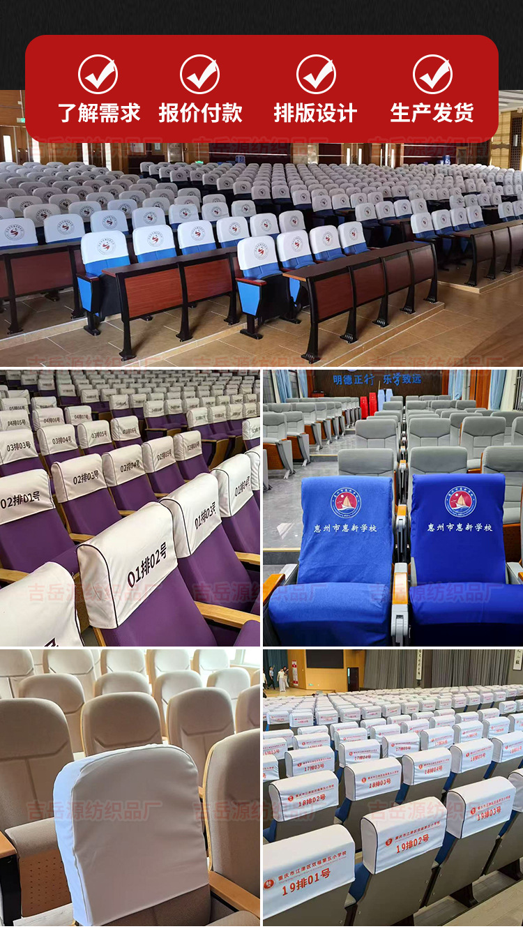 会议室座椅套学校座椅头套电影院报告厅礼堂广告半截印字LOGO定制