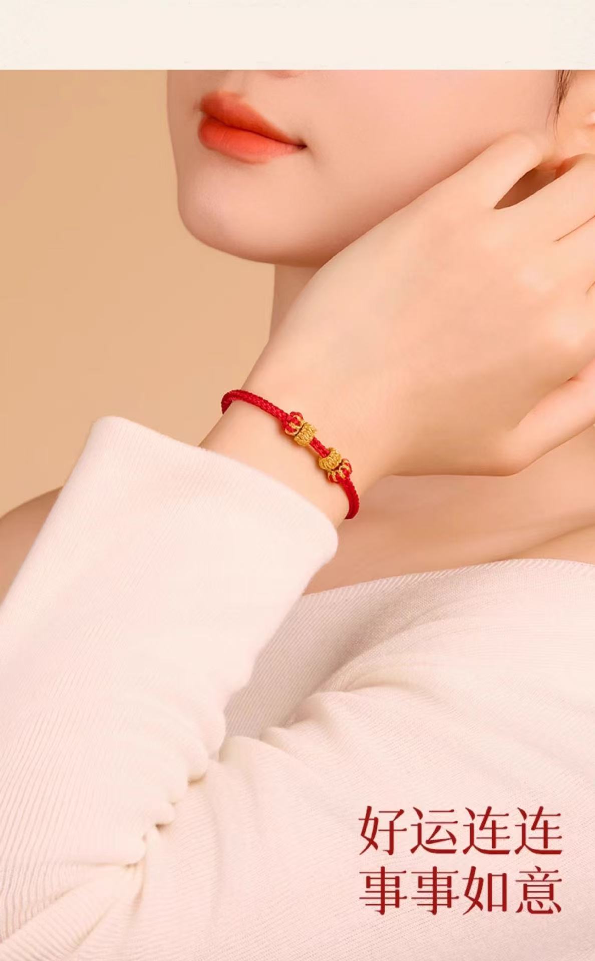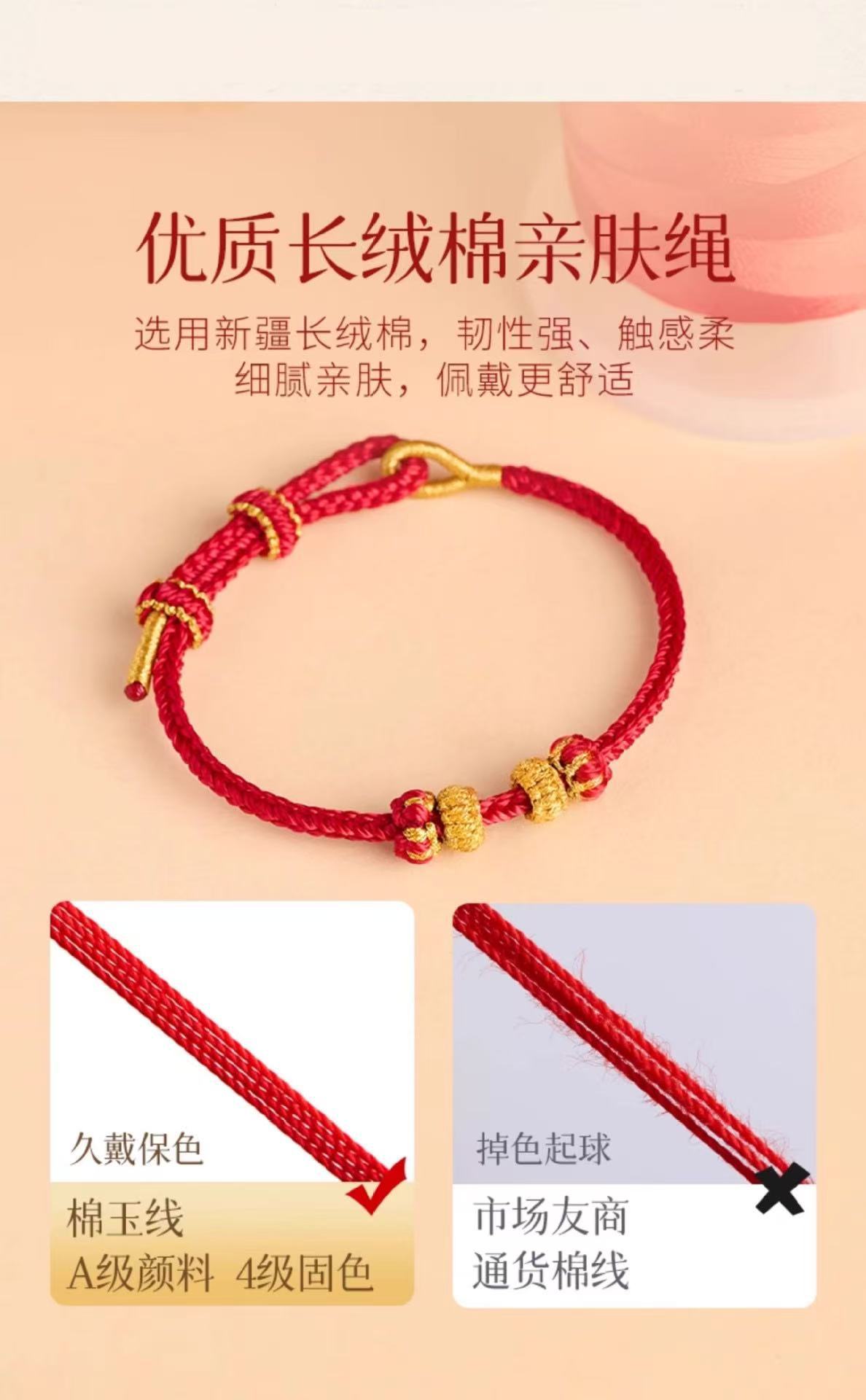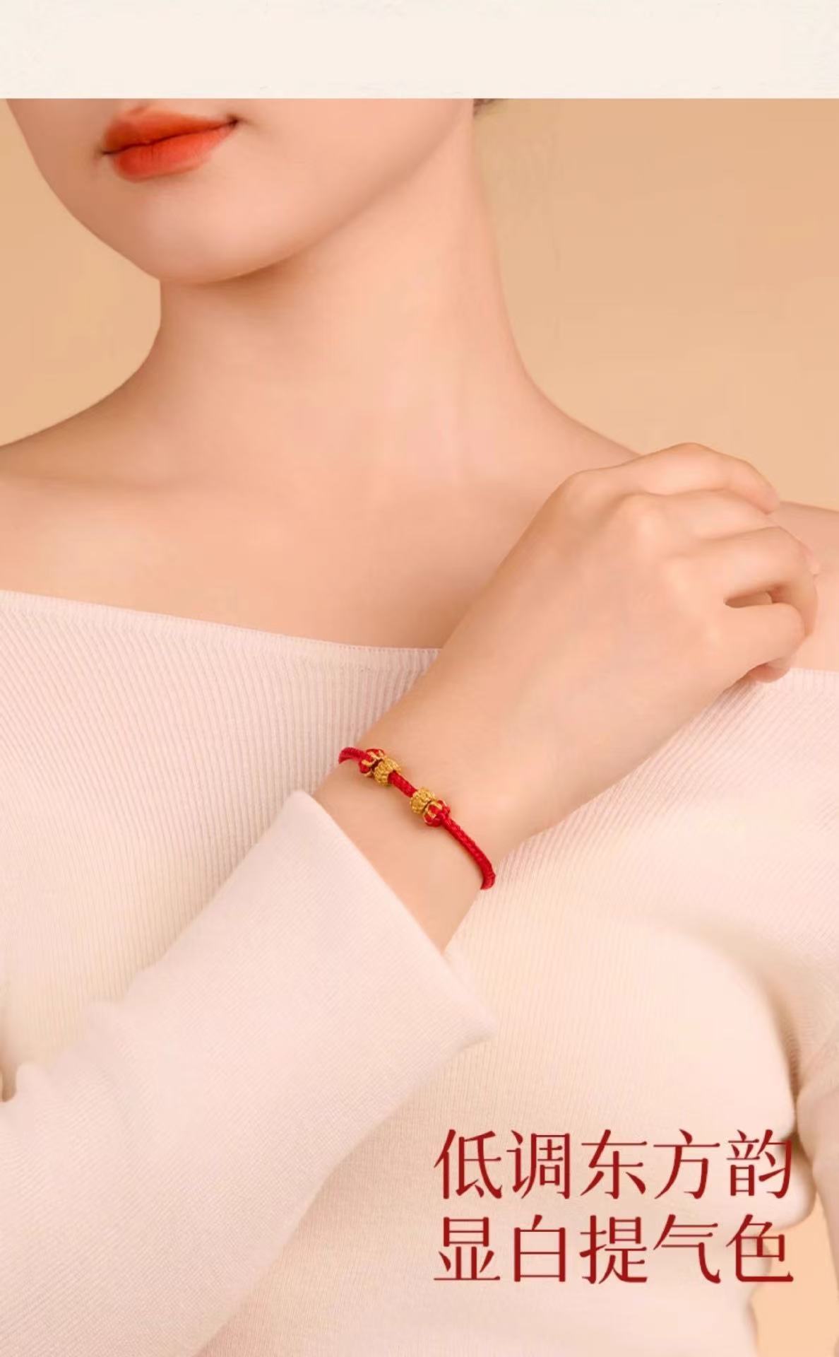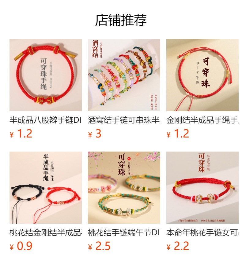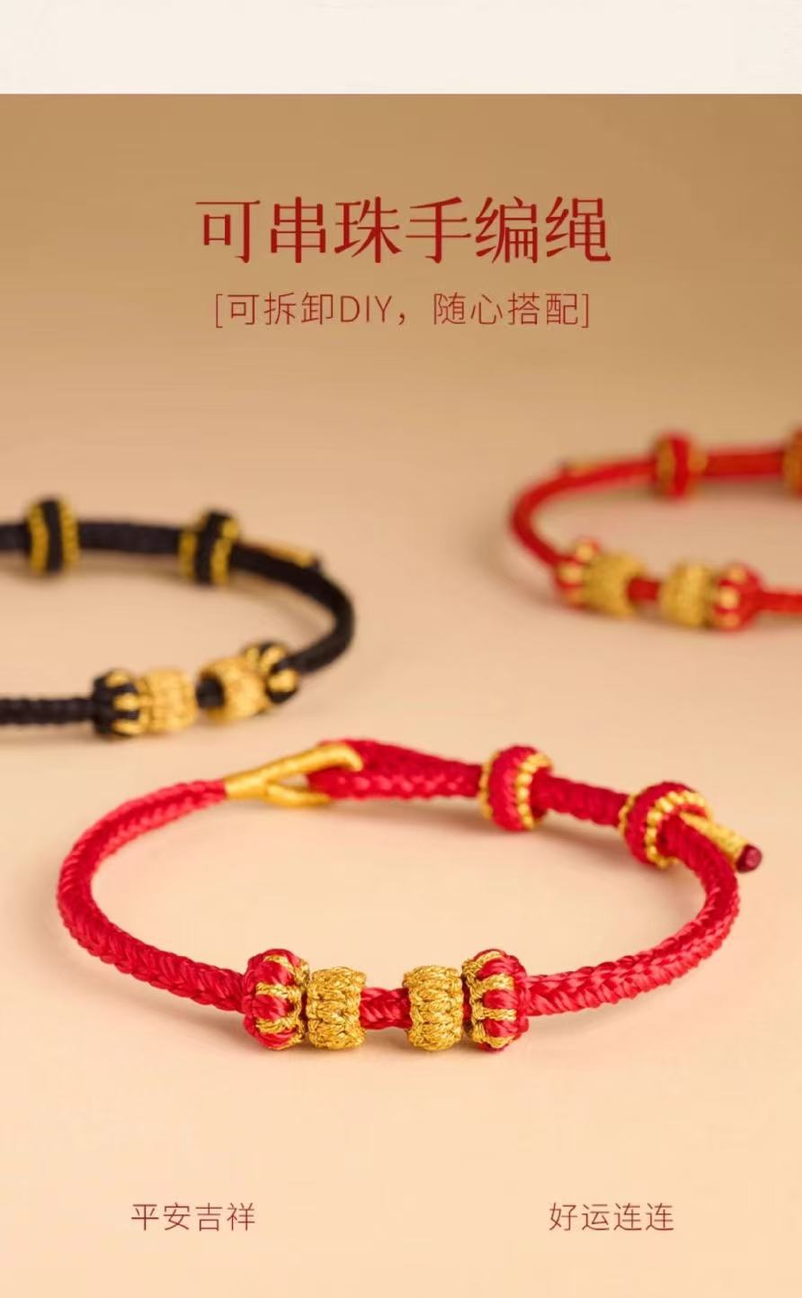 本命年红绳可串珠半成品手绳手工编织八股辫diy可穿黄金编绳手链