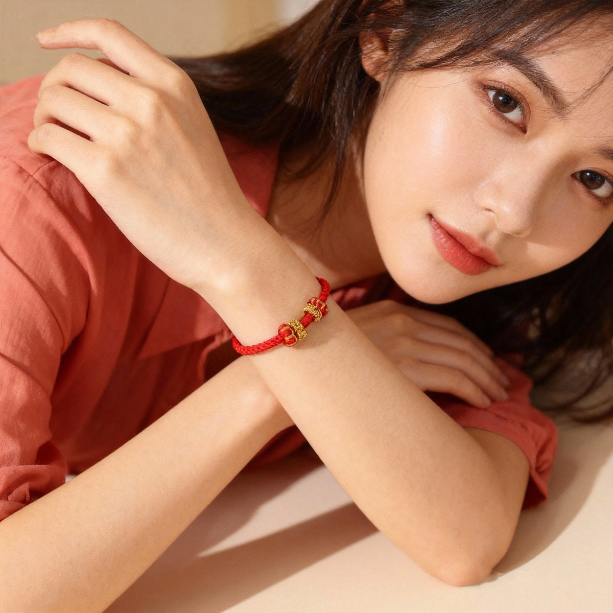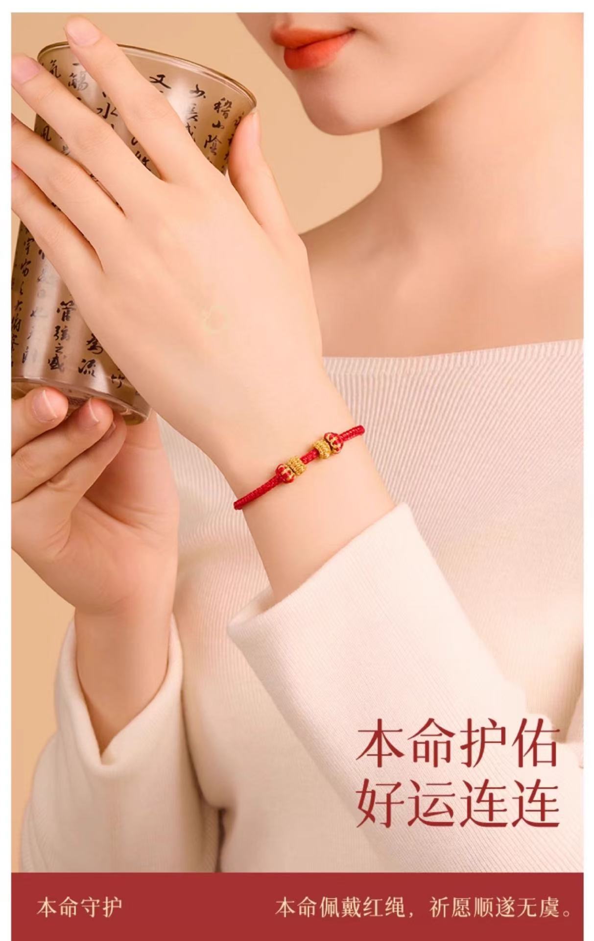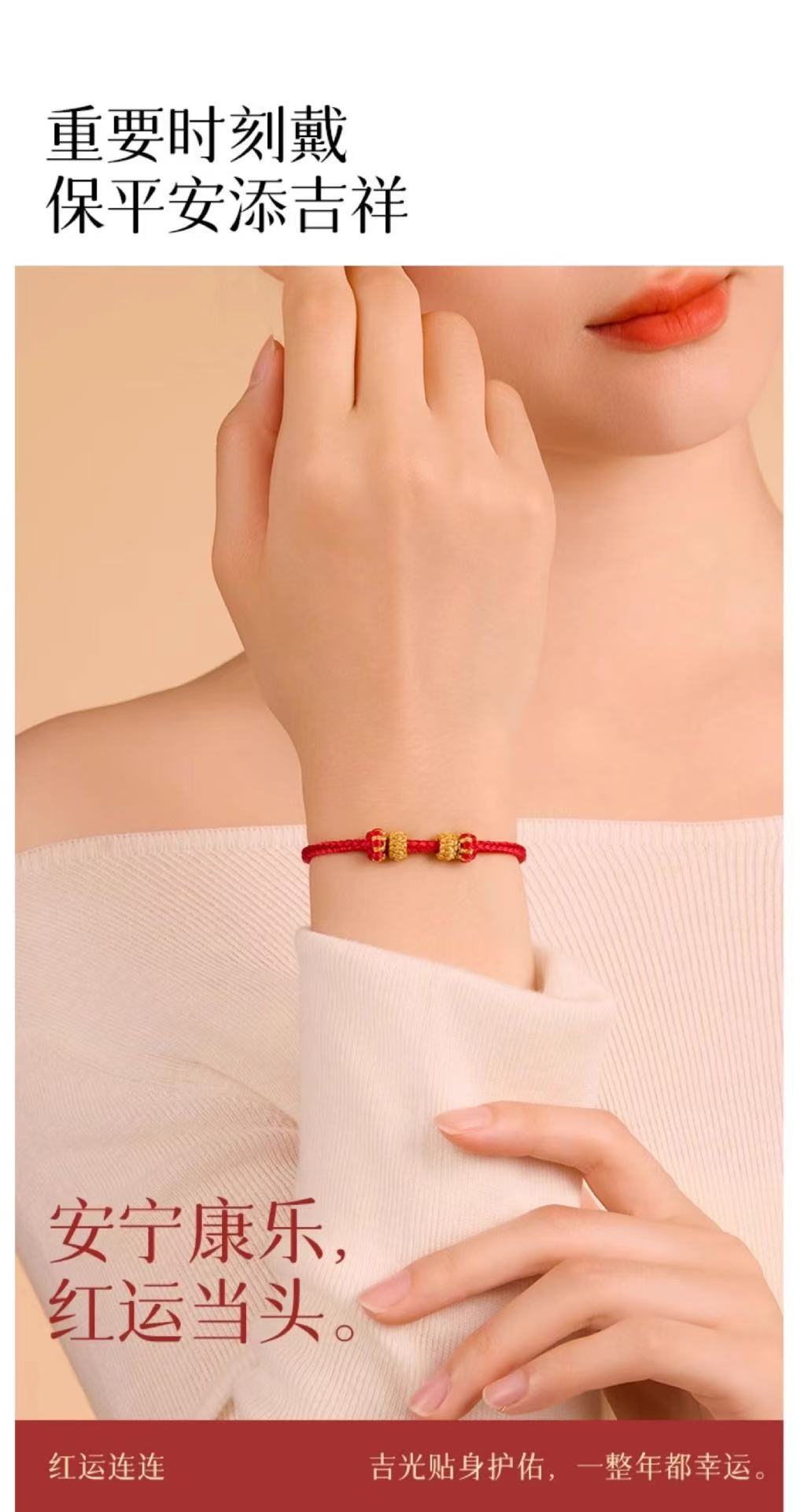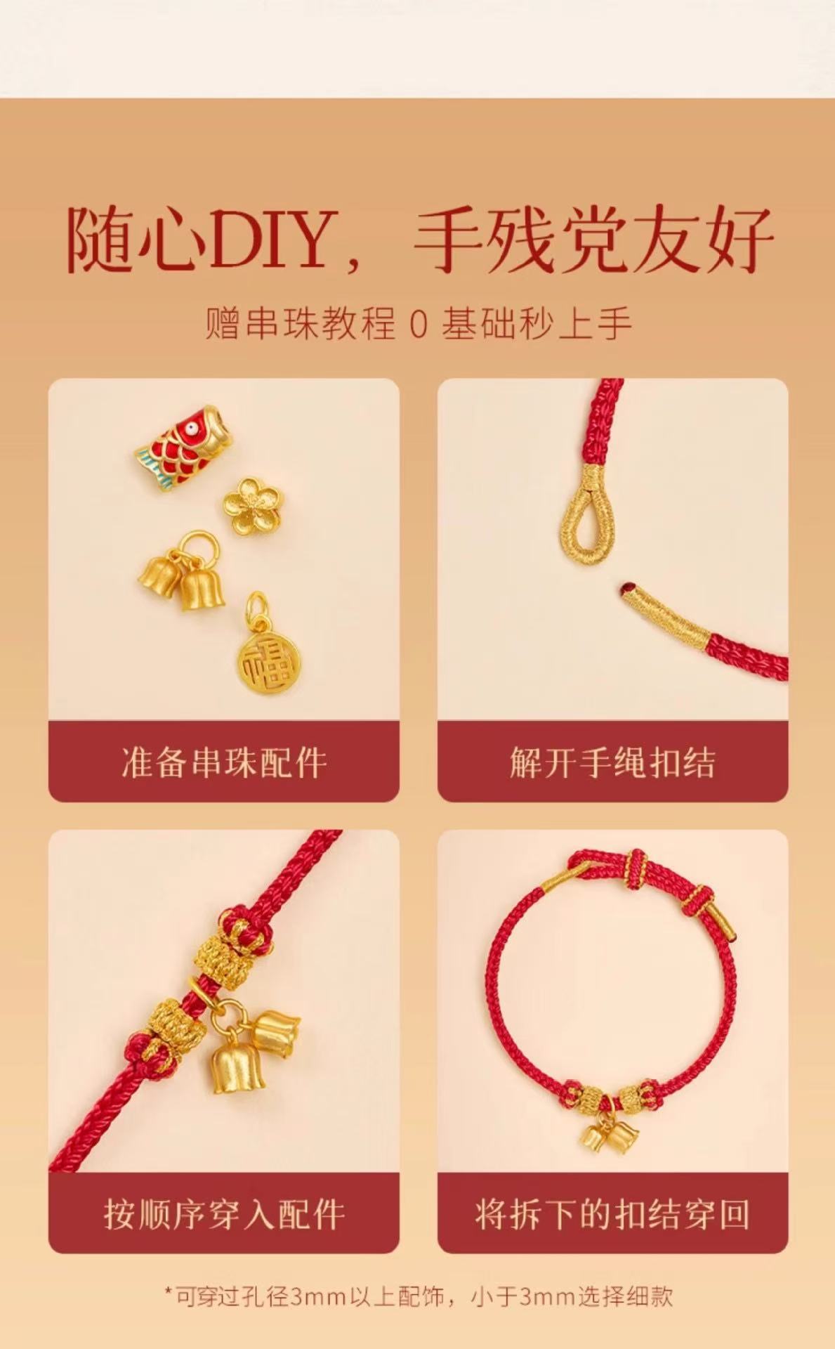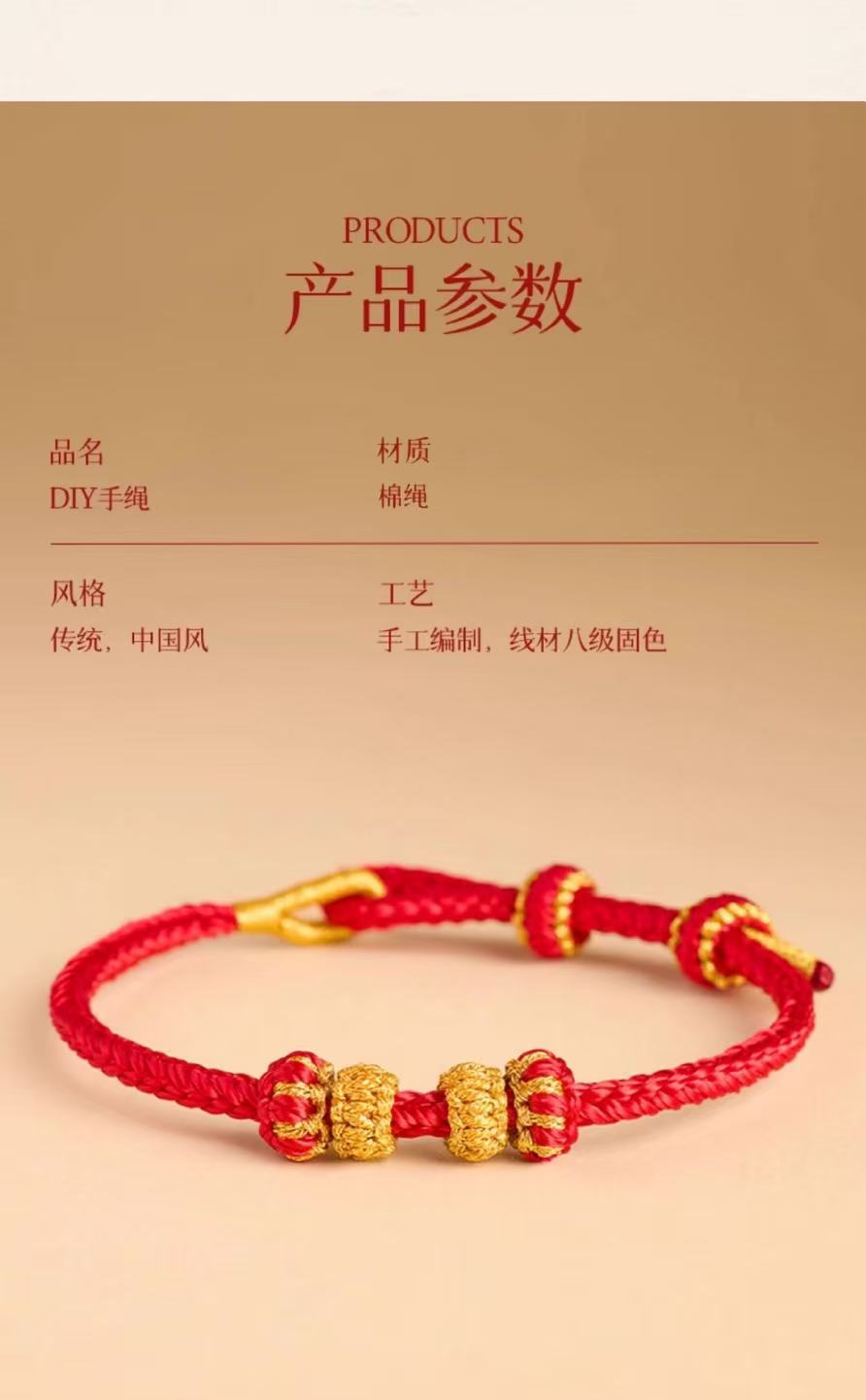 本命年红绳可串珠半成品手绳手工编织八股辫diy可穿黄金编绳手链