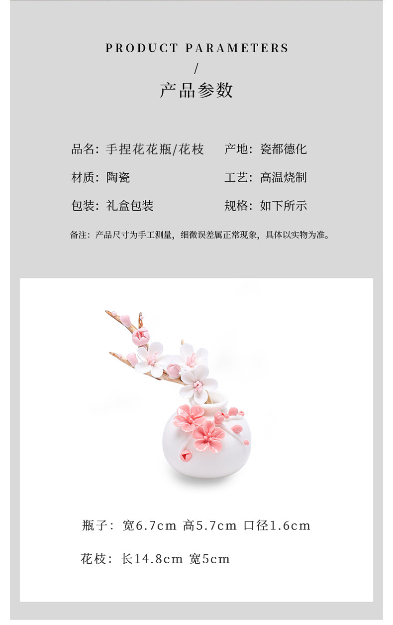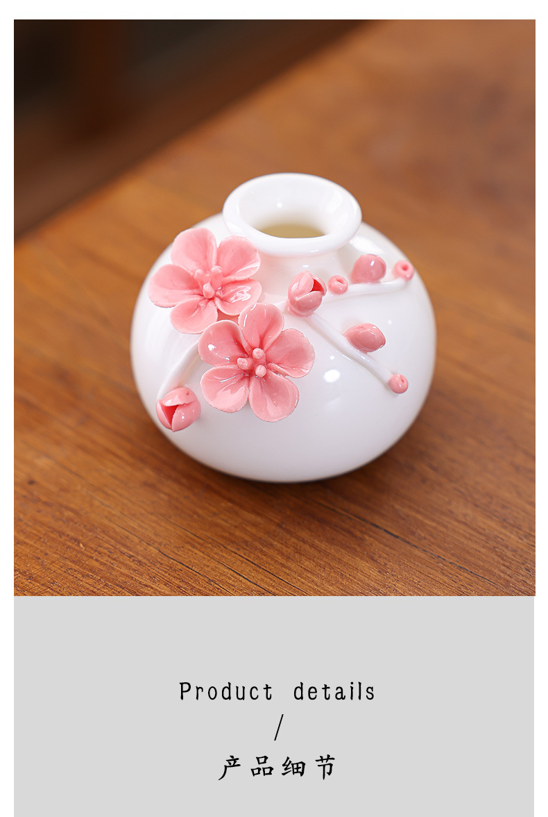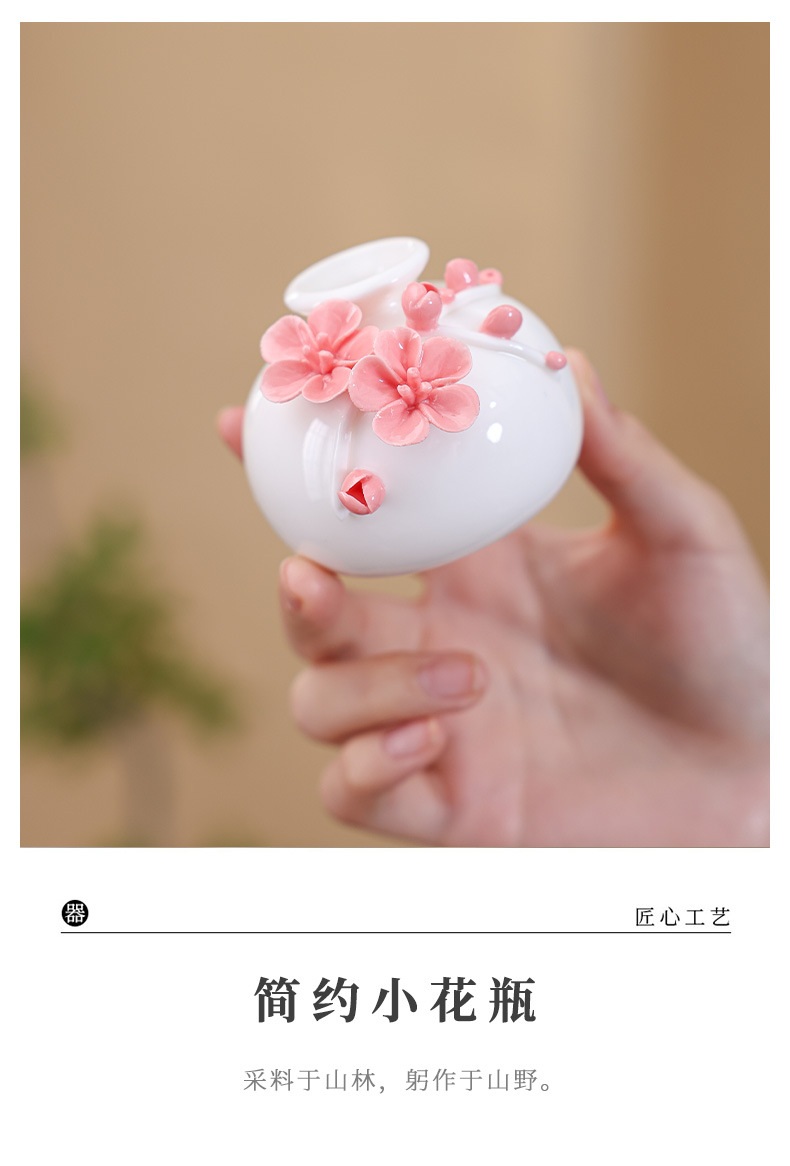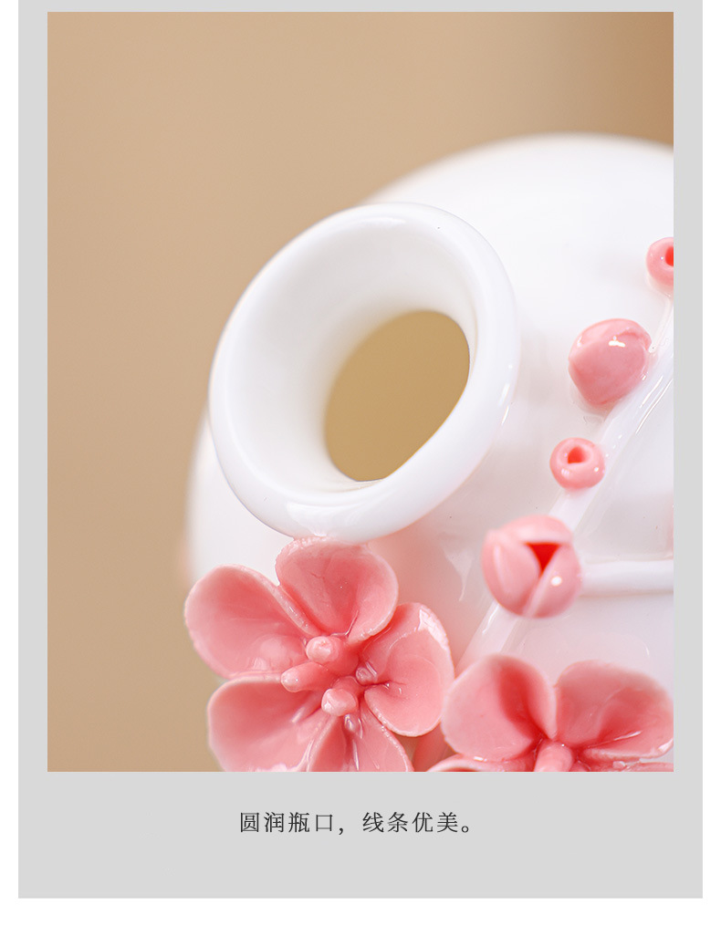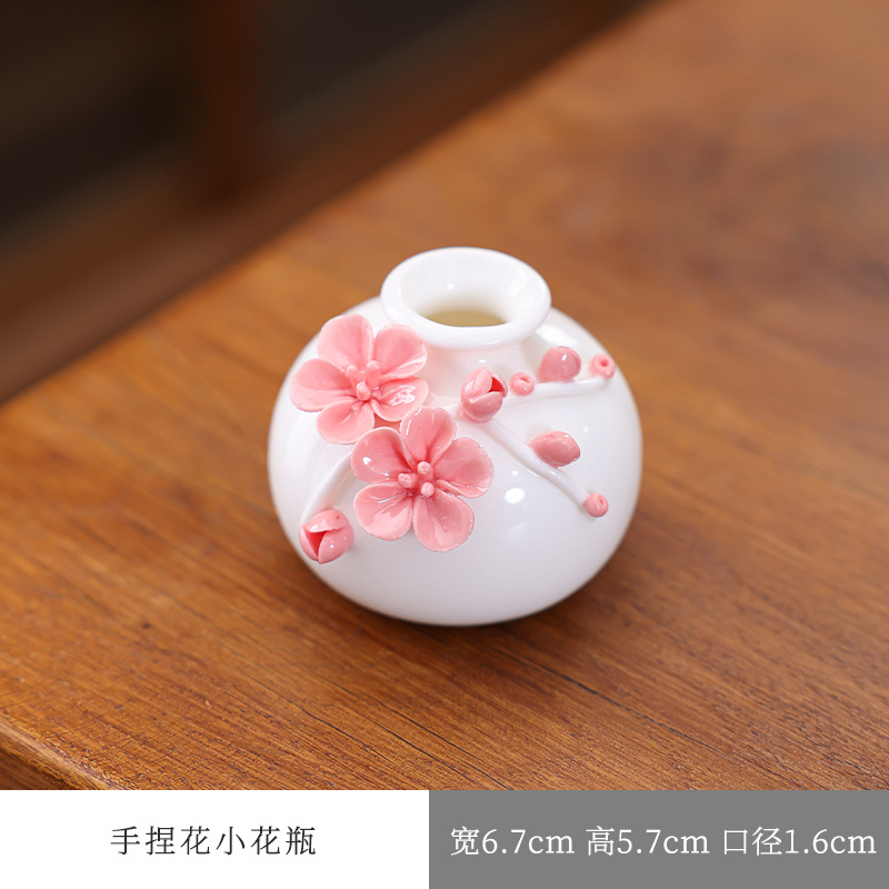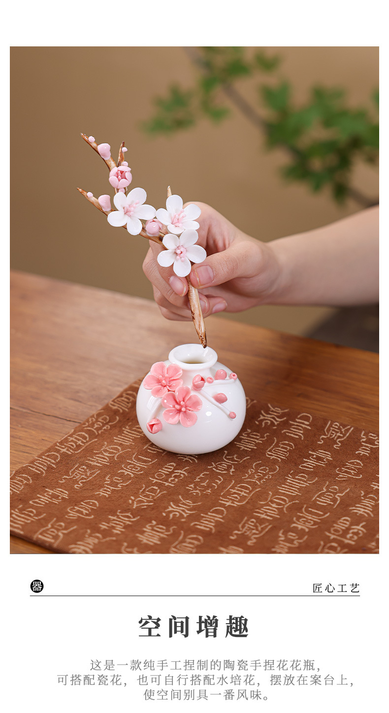 陶瓷手工捏花圆梅花瓶羊脂玉瓷温润通透小清新花器插梅花瓷器摆件