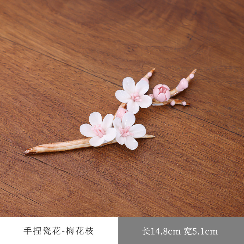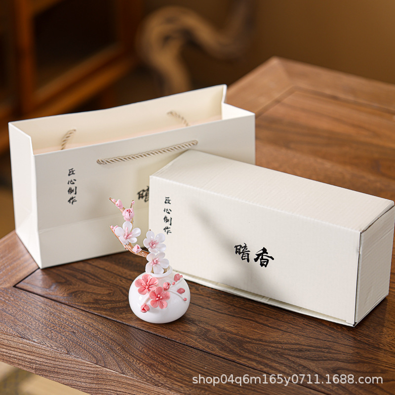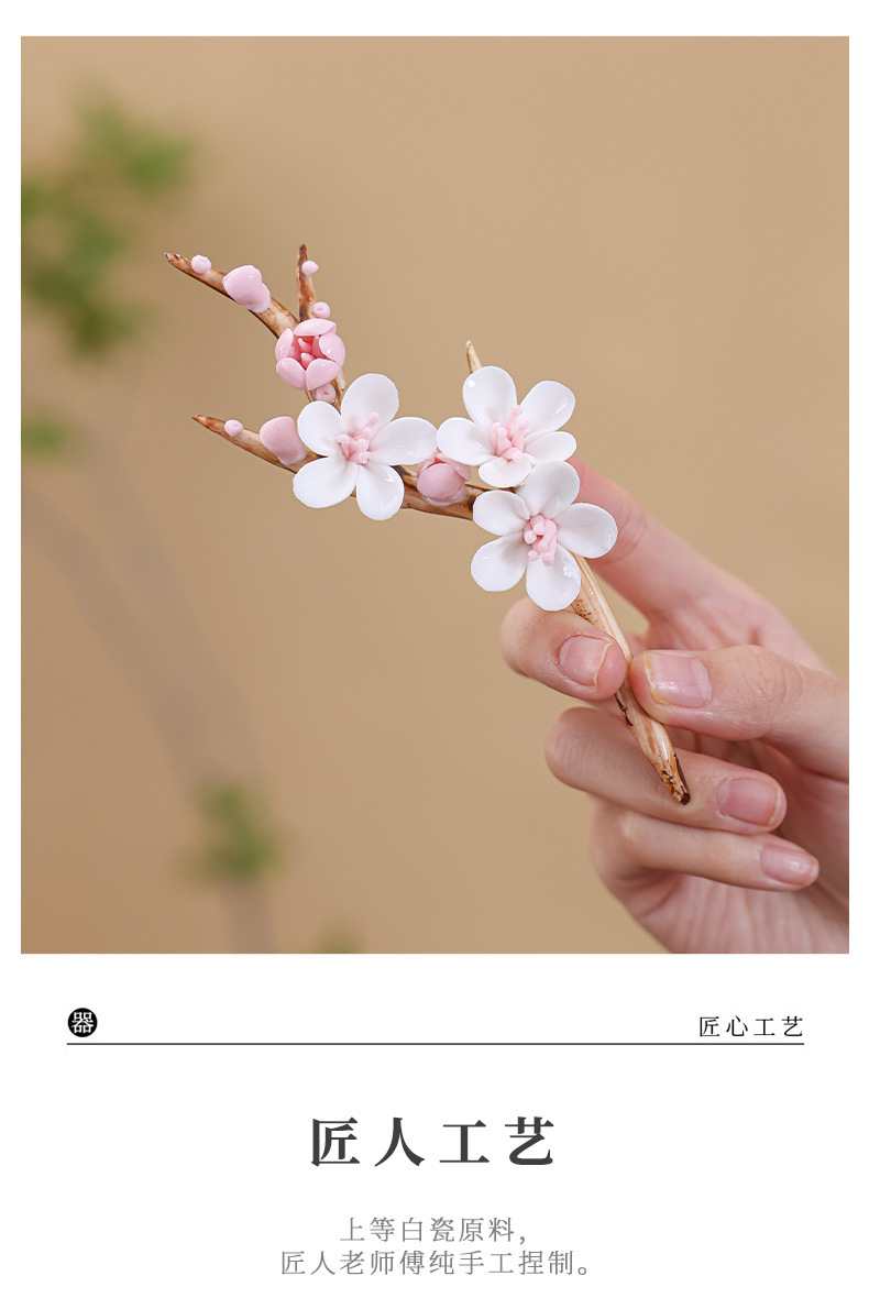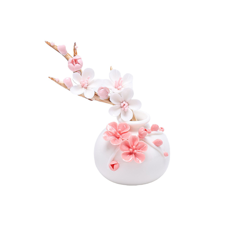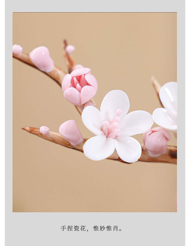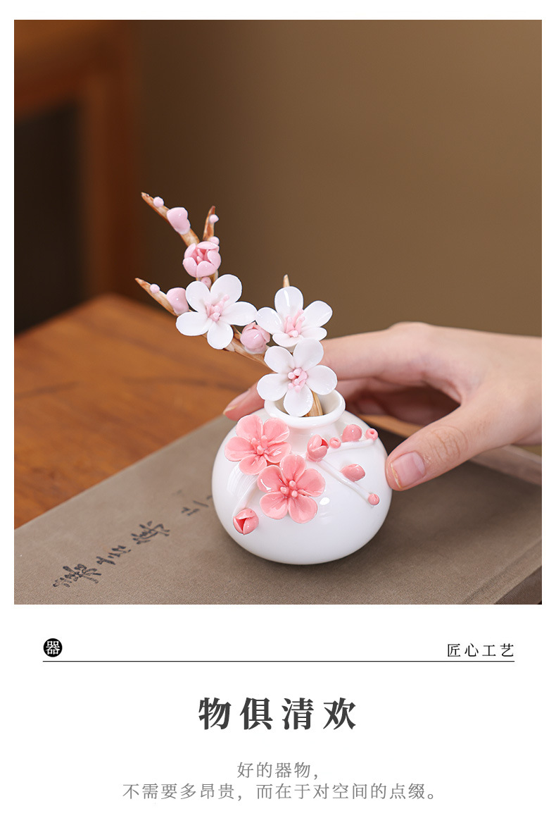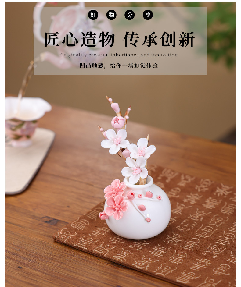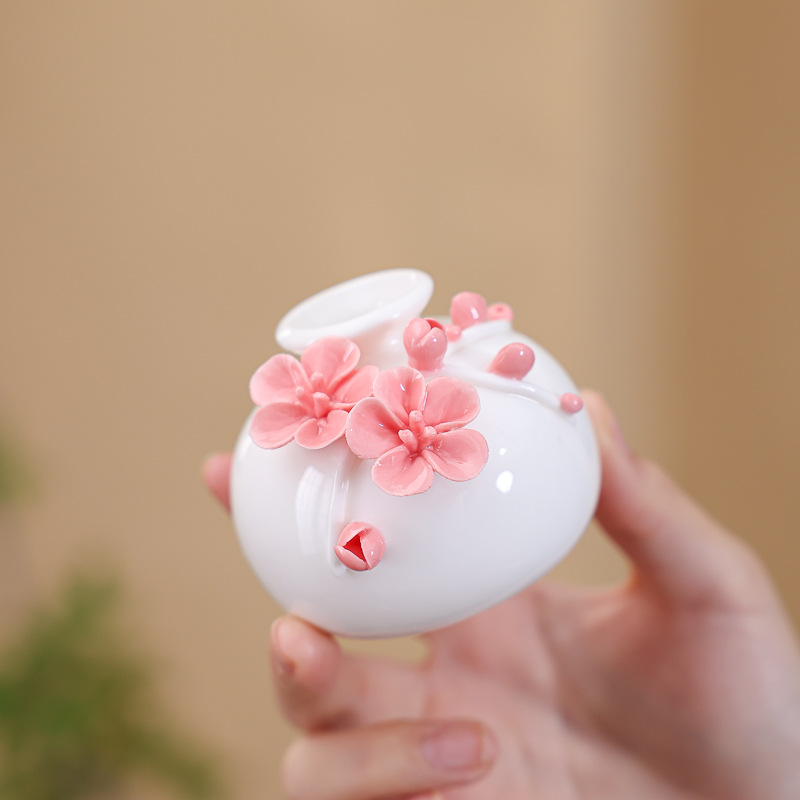 陶瓷手工捏花圆梅花瓶羊脂玉瓷温润通透小清新花器插梅花瓷器摆件