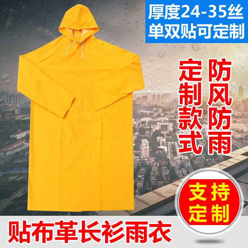 加厚连体雨衣雨披成人大风衣款防暴雨户外单PVC贴布革雨衣批发