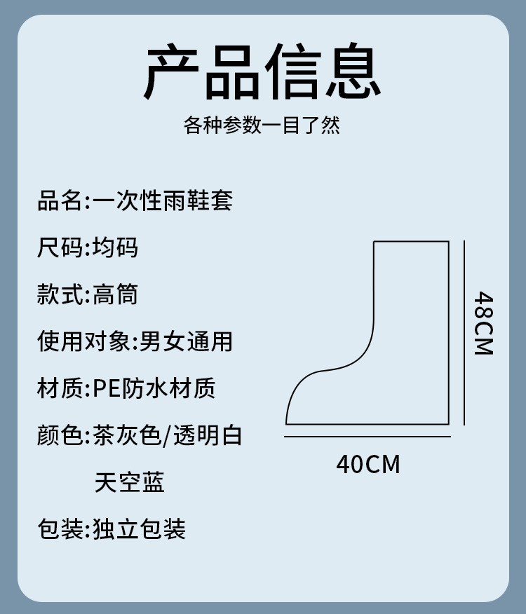 一次性雨鞋套卡片独立包装高筒加厚雨天防水成人便携户外旅游脚套