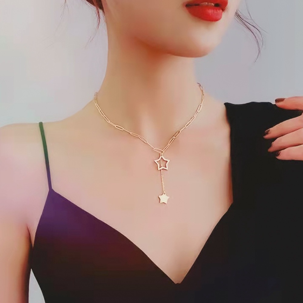 跨境18K时尚钛钢锁骨链不掉色小众气质吊坠百搭高级感项链女