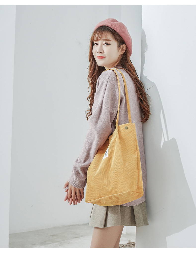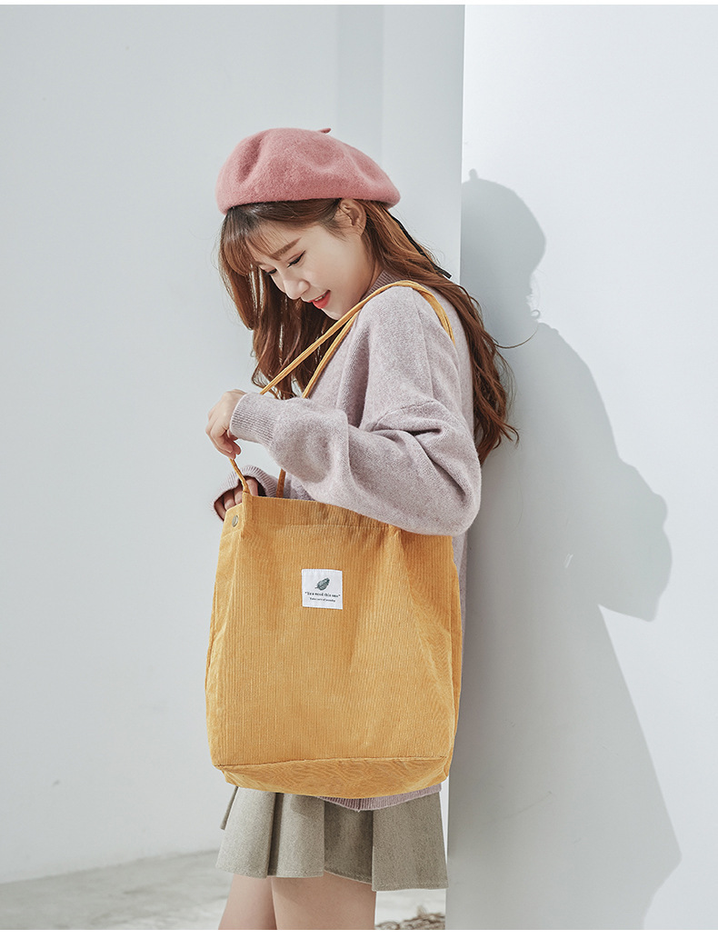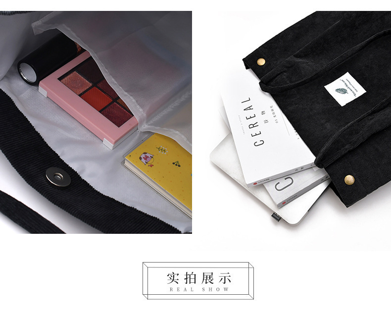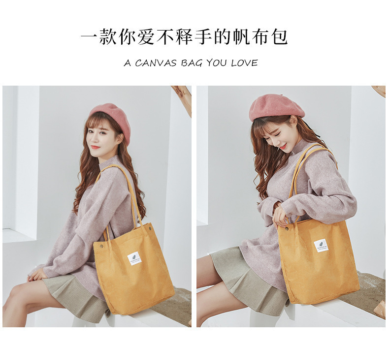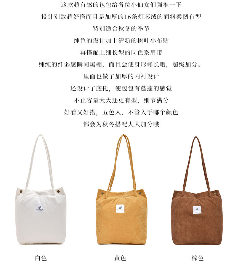 新款灯芯绒单肩包女韩国学生帆布包大容量文艺简约百搭购物袋批发