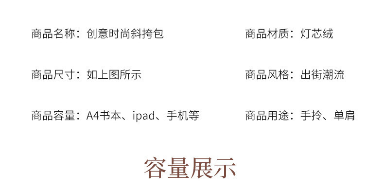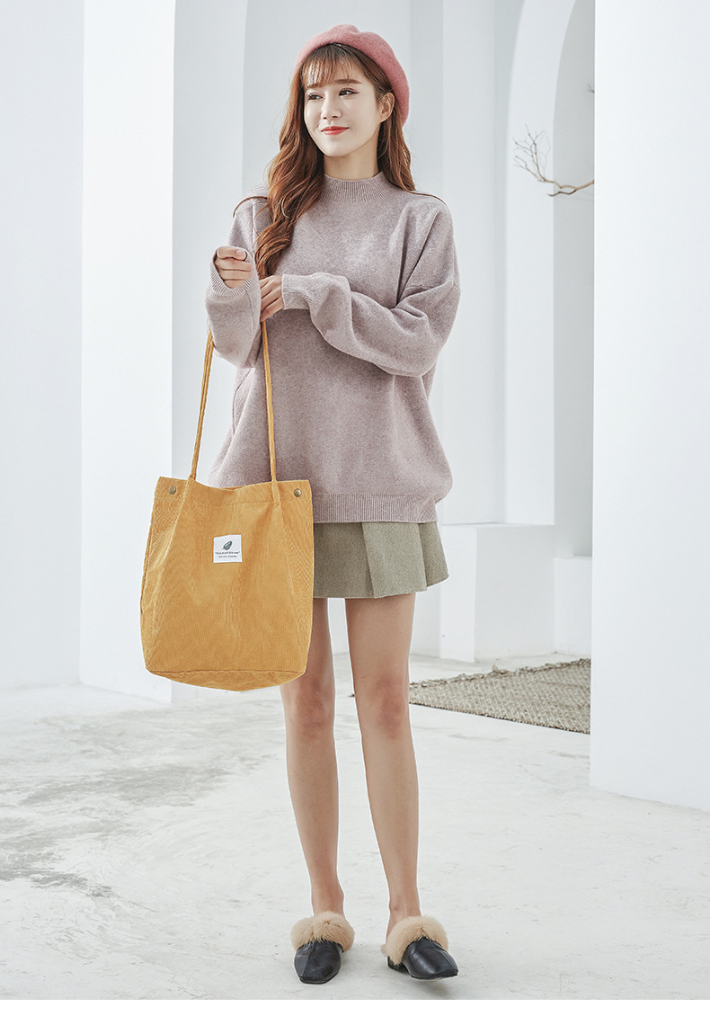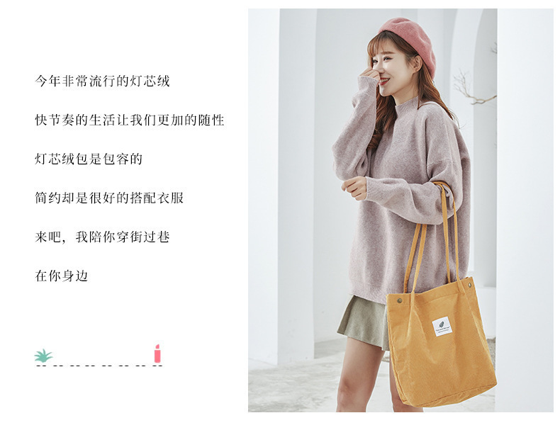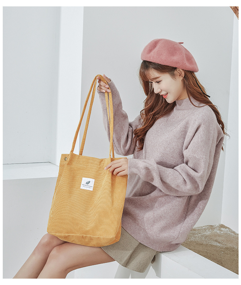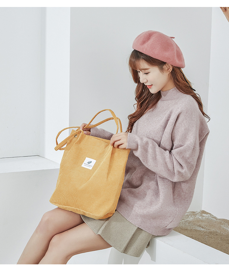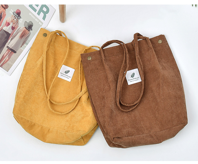 新款灯芯绒单肩包女韩国学生帆布包大容量文艺简约百搭购物袋批发