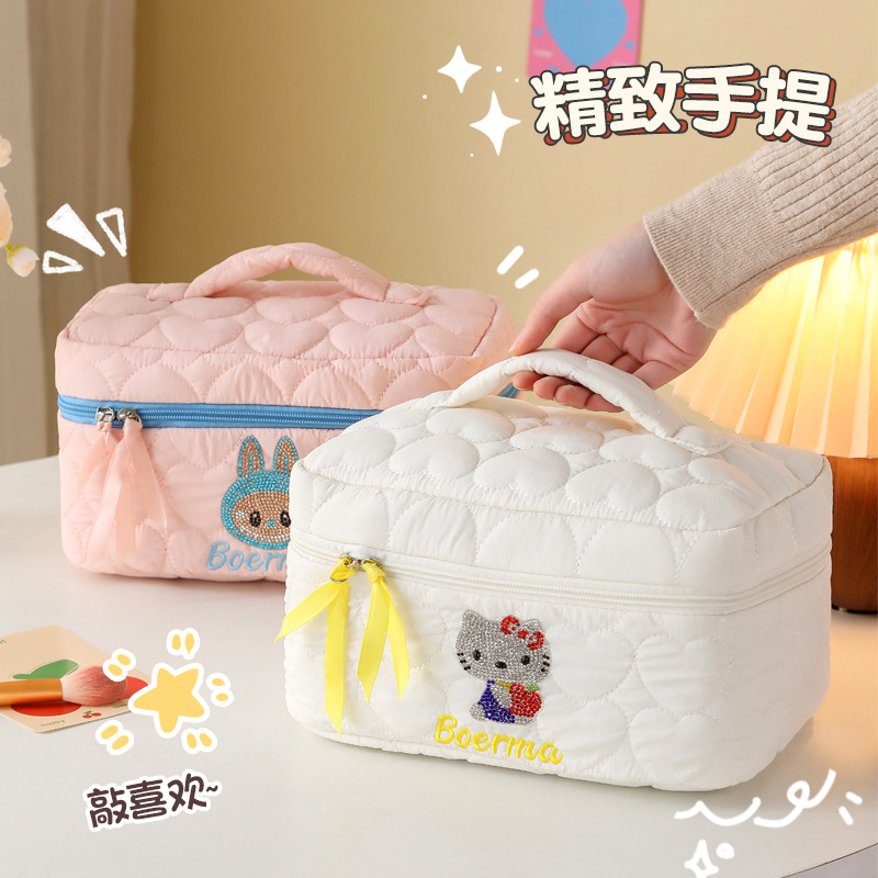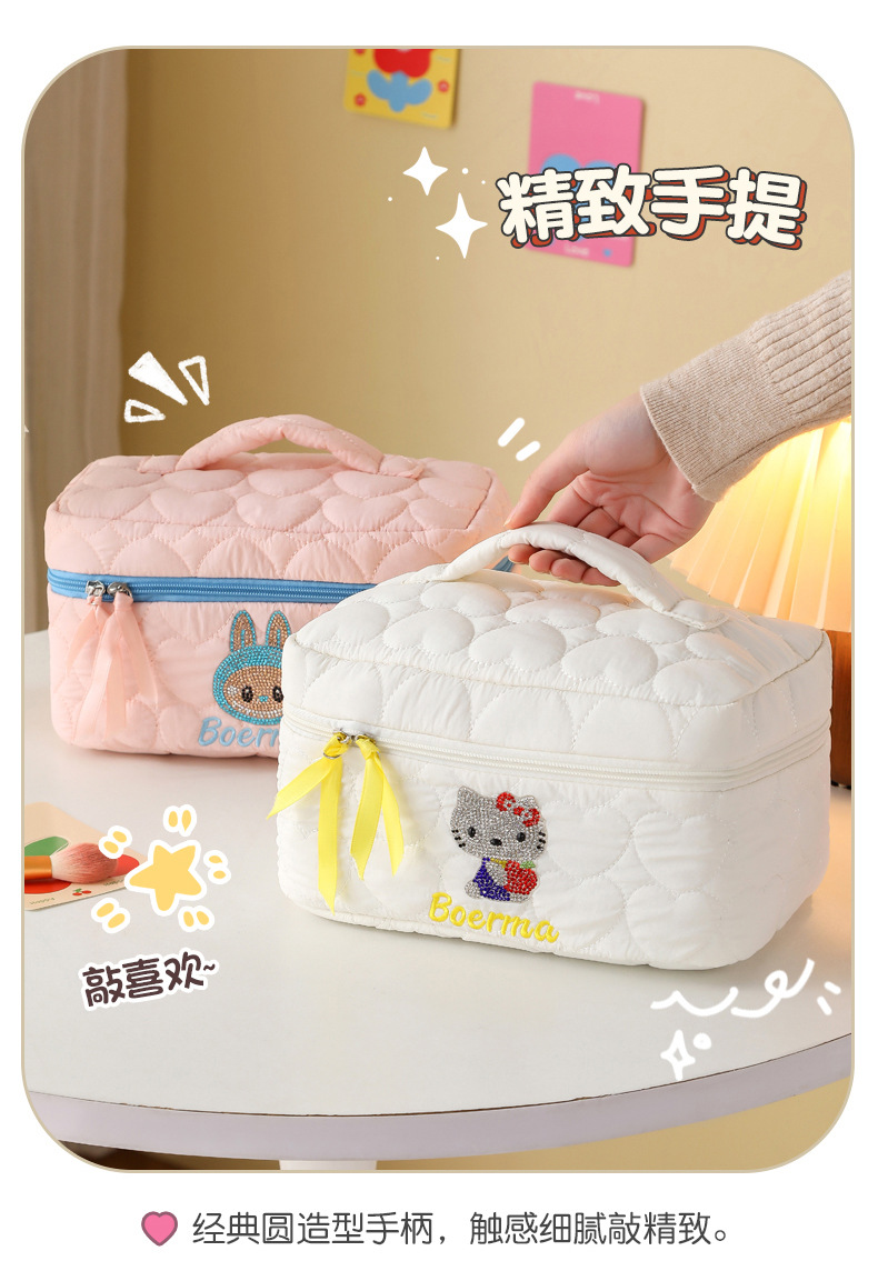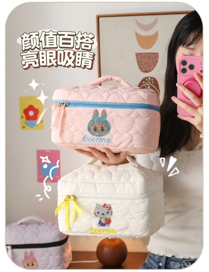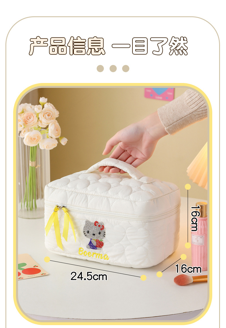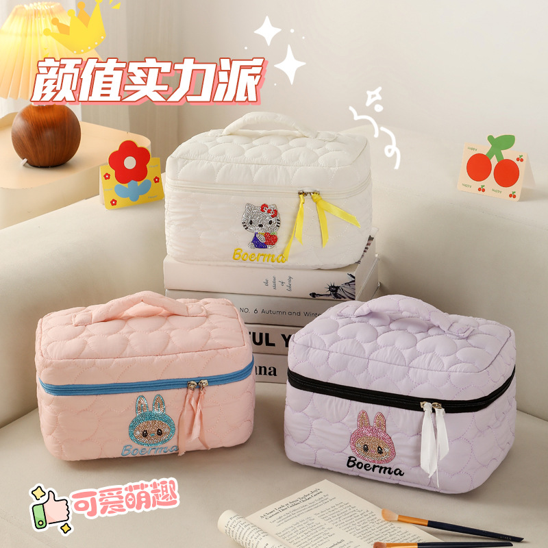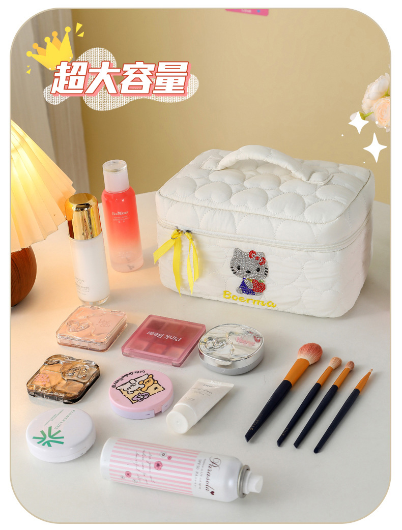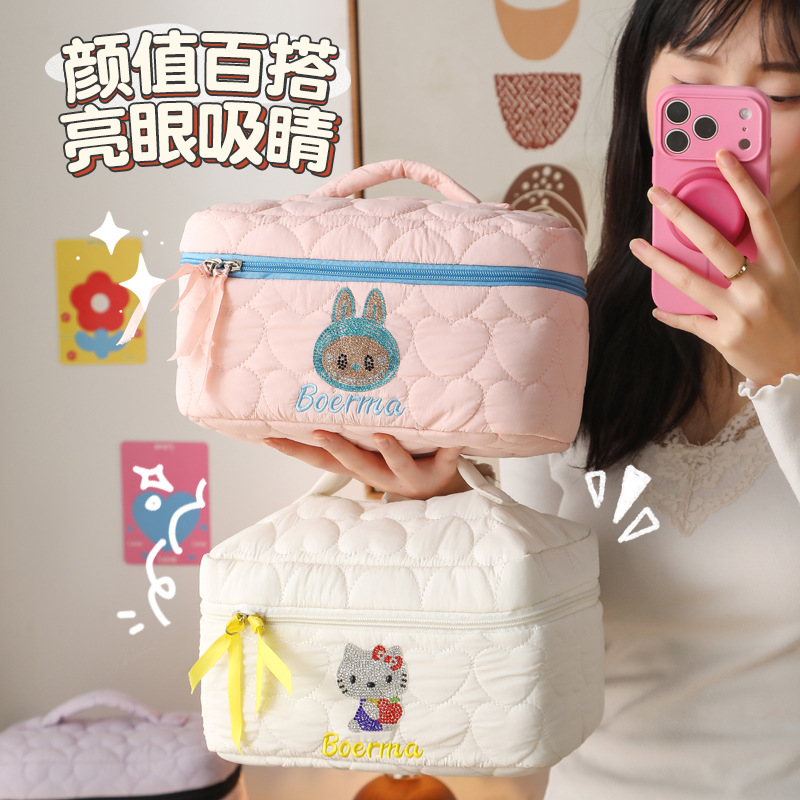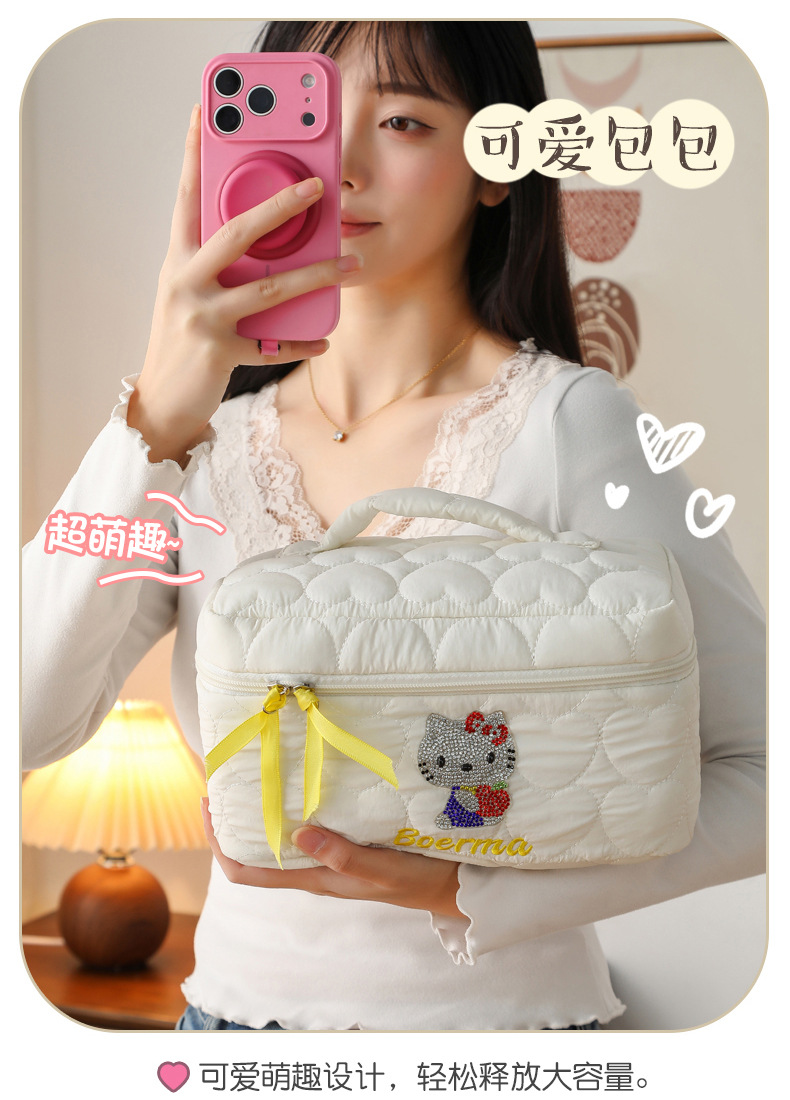 新款多巴胺化妆包桃心可爱KT化妆包大容量洗漱包便携旅行收纳包