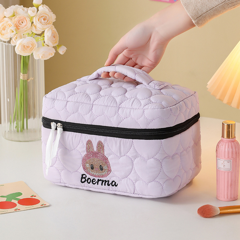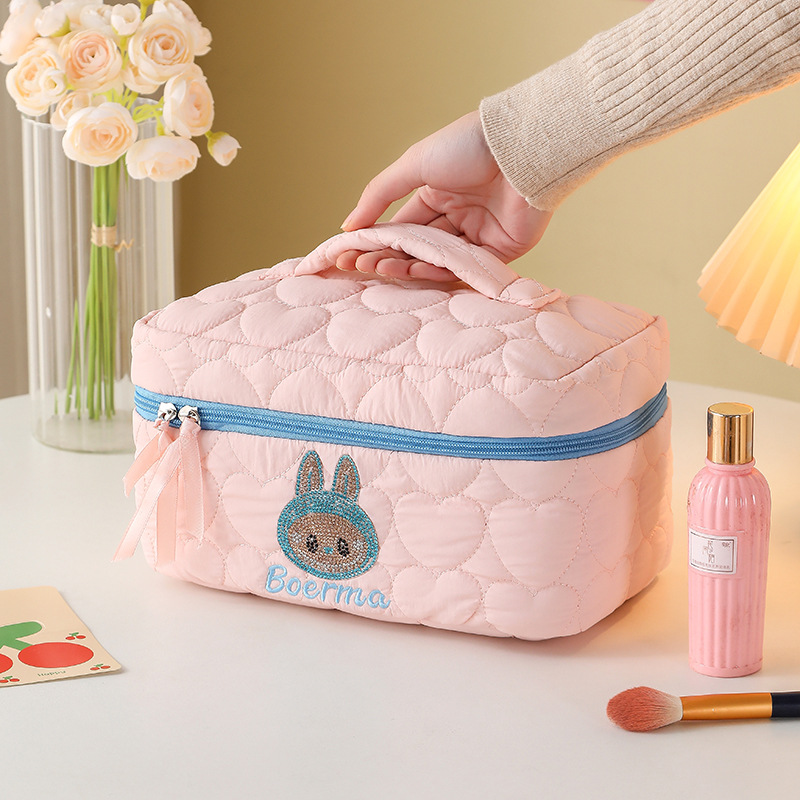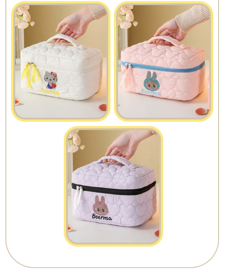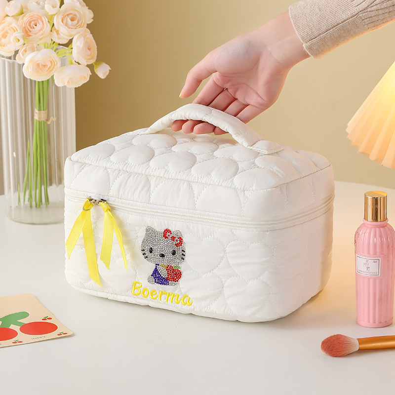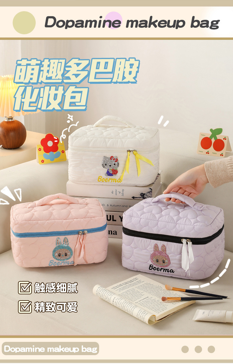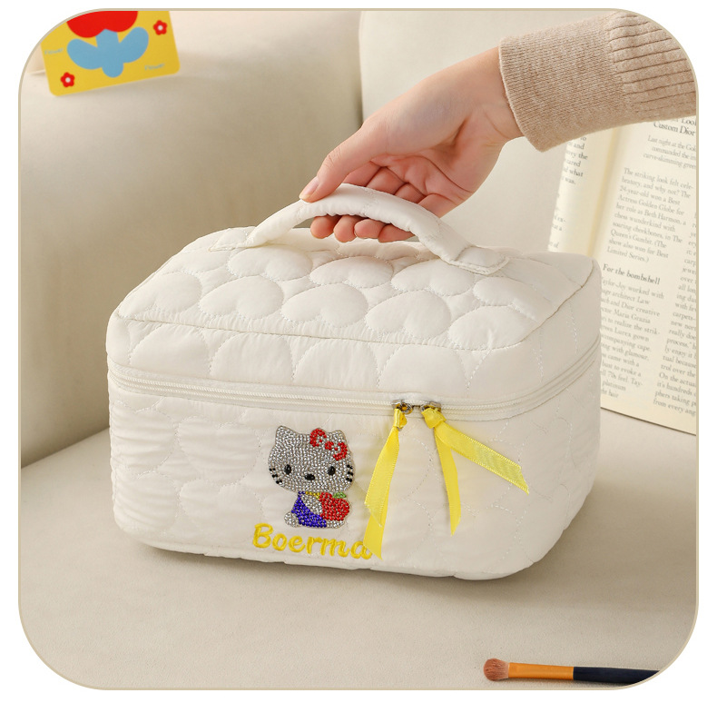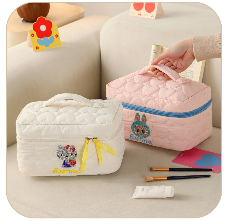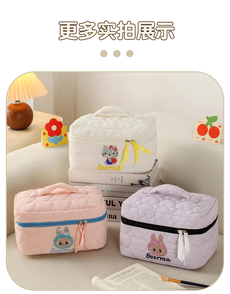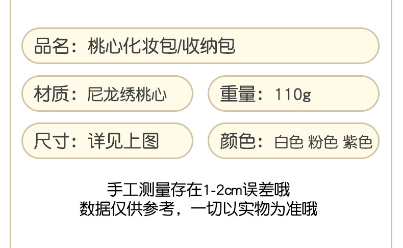 新款多巴胺化妆包桃心可爱KT化妆包大容量洗漱包便携旅行收纳包