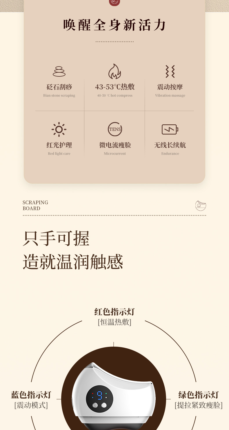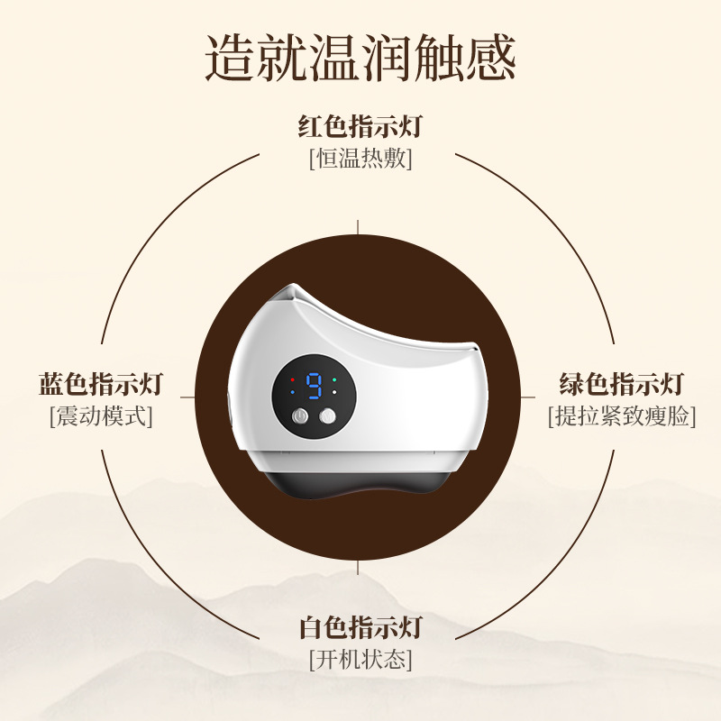 电动砭石刮痧板面部全身电加热按摩疏 通经 络导入仪提拉恒温震动