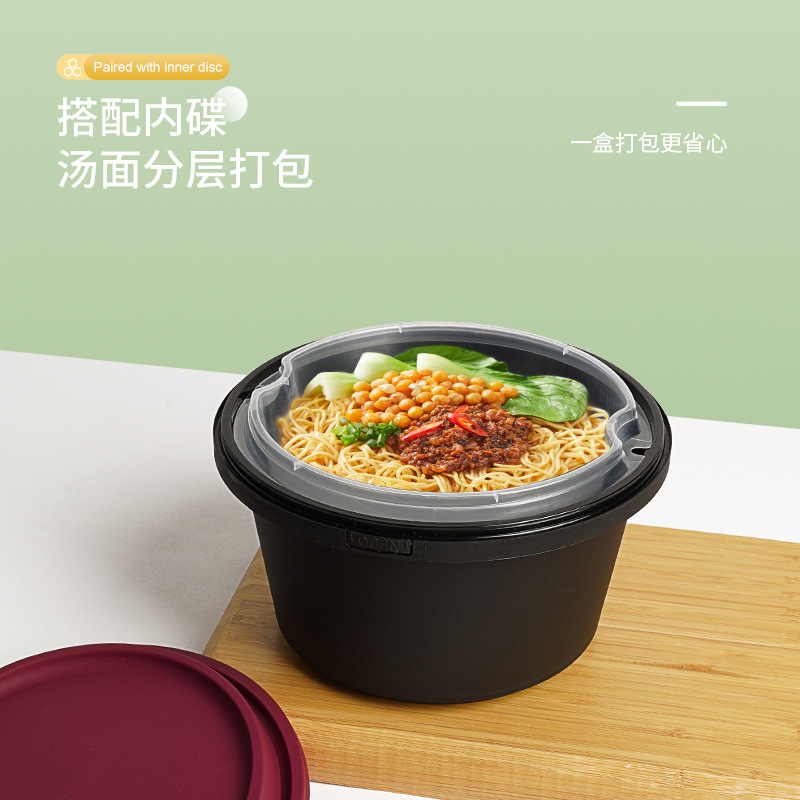 一次性餐盒定制防盗扣外卖包装盒食品餐具圆形打包盒圆碗煲仔饭盒