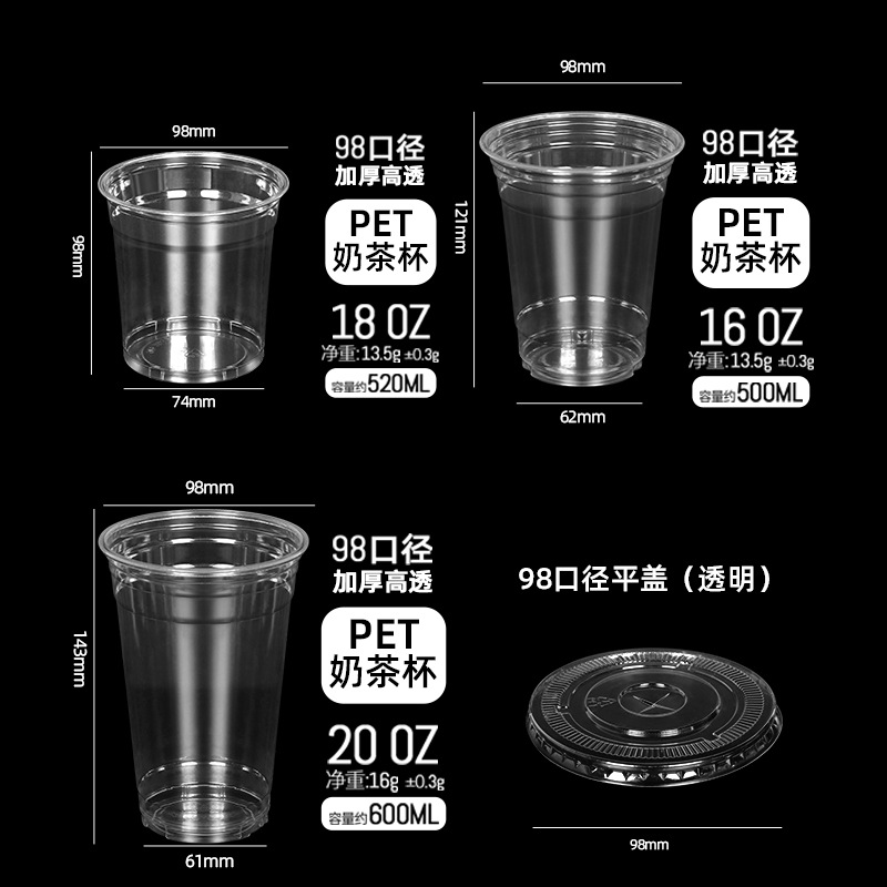 鼎善98口径冷饮一次性奶茶杯子pet泰式网红嘟嘟杯咖啡杯装批发