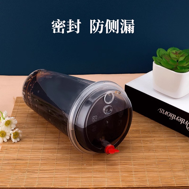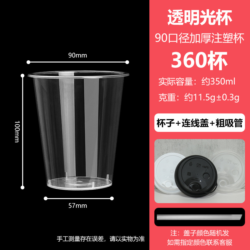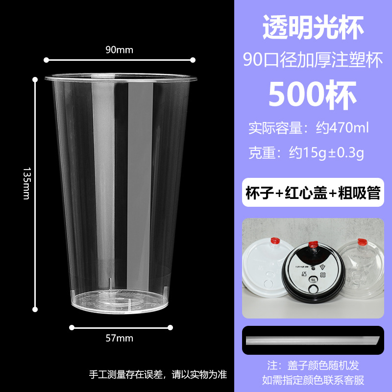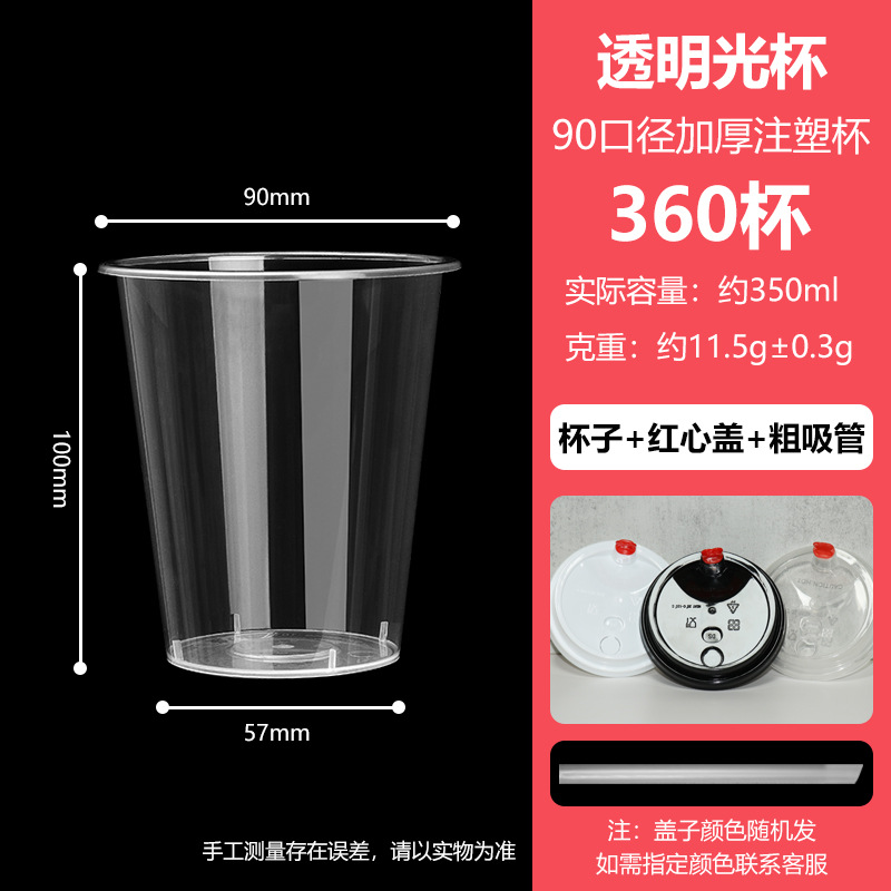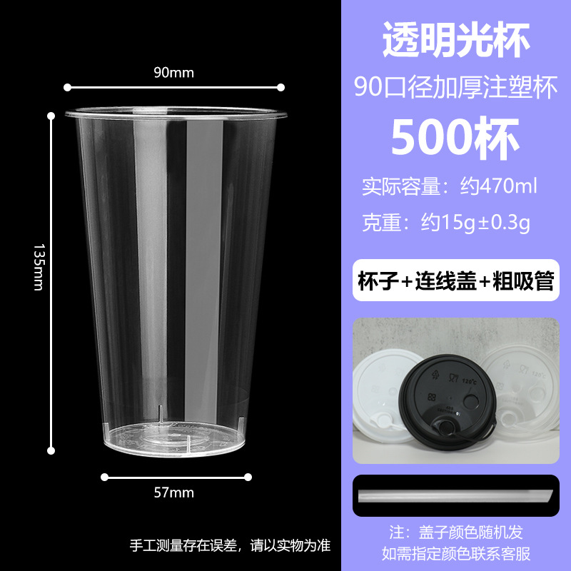 90口径一次性奶茶杯子带盖果汁饮料杯橙汁杯子摆地摊奶茶杯套装