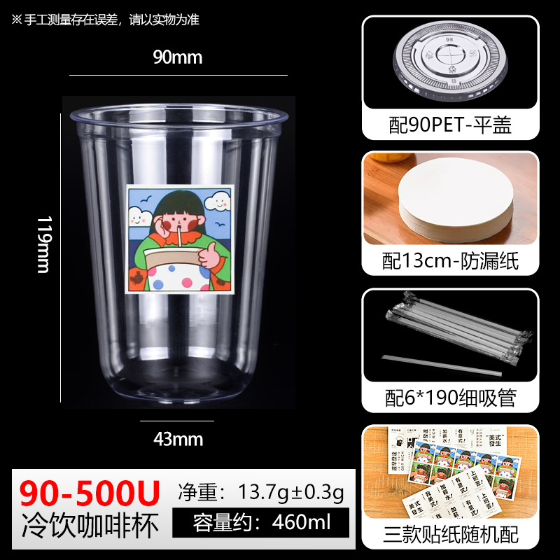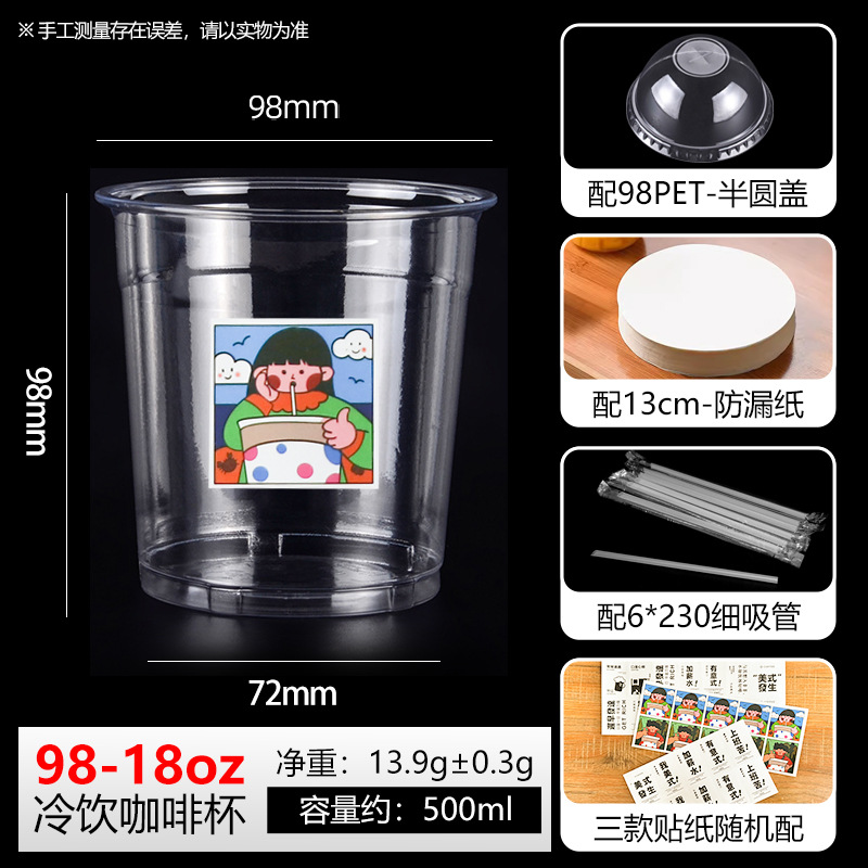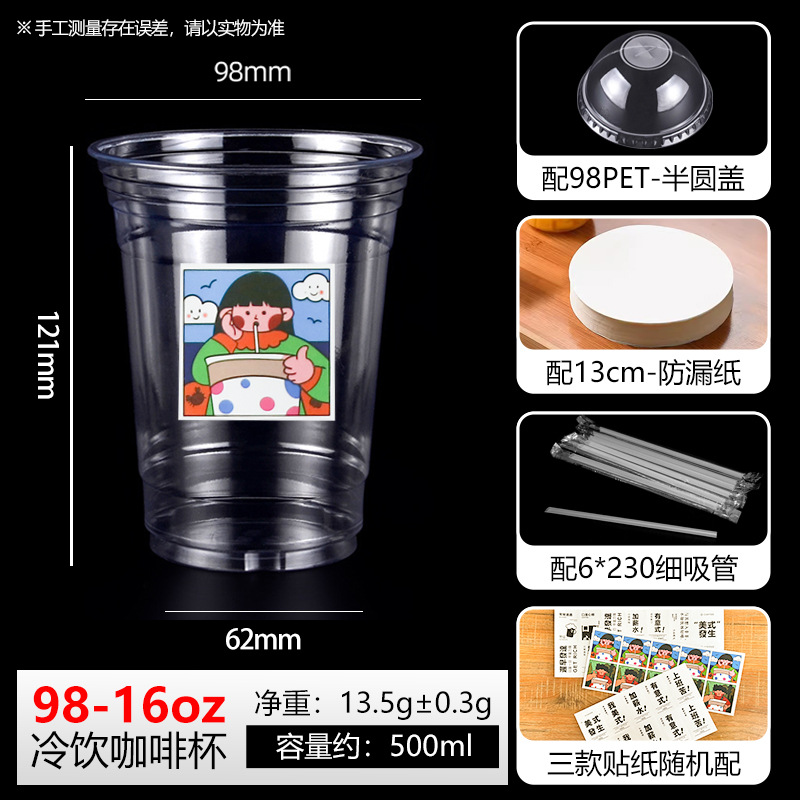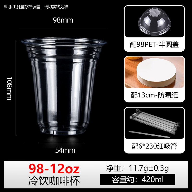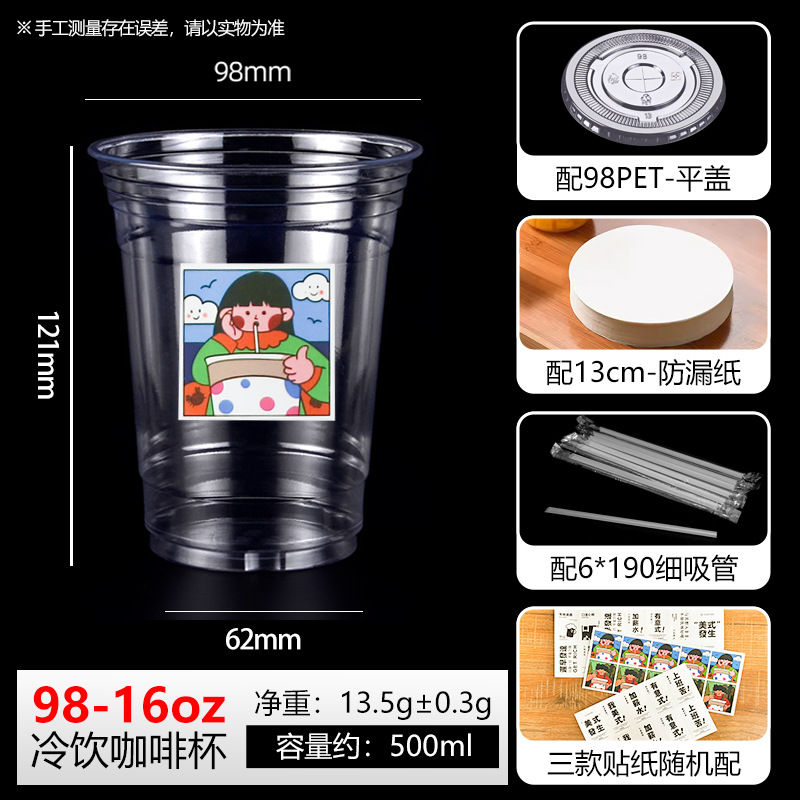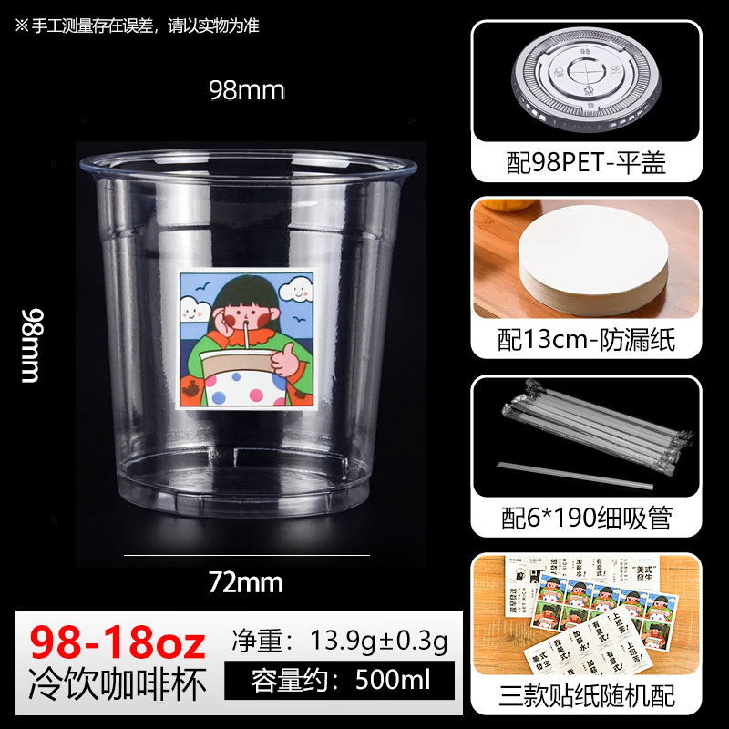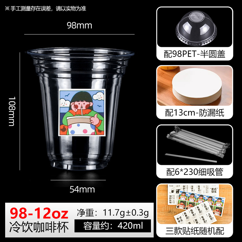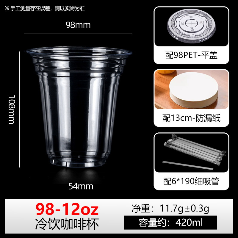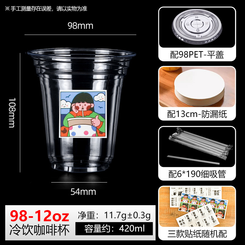 98口径一次性PET冷饮奶茶杯咖啡杯手打柠檬茶透杯子一次性摆摊
