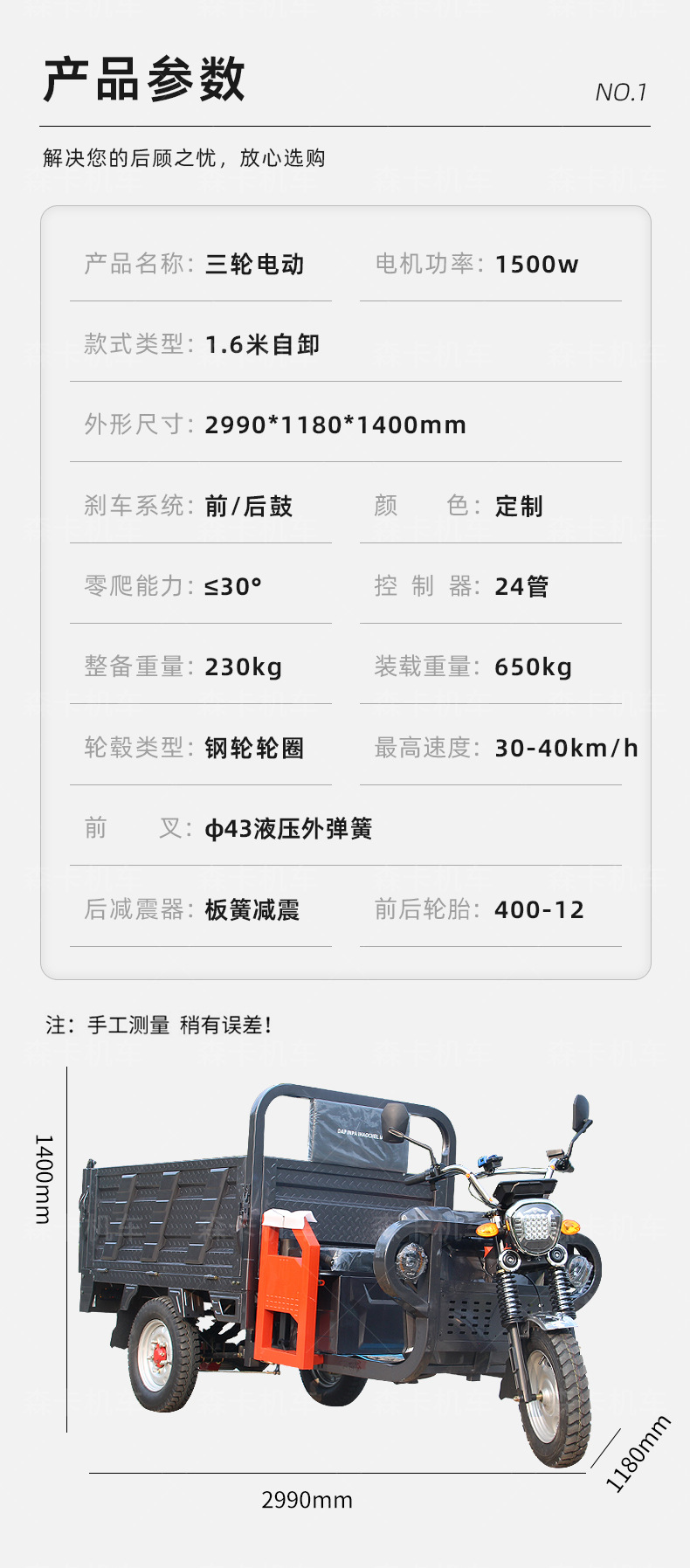 电动三轮车液压自卸电动翻斗家用货车爬坡载重王拉货三蹦子出口