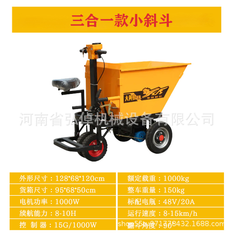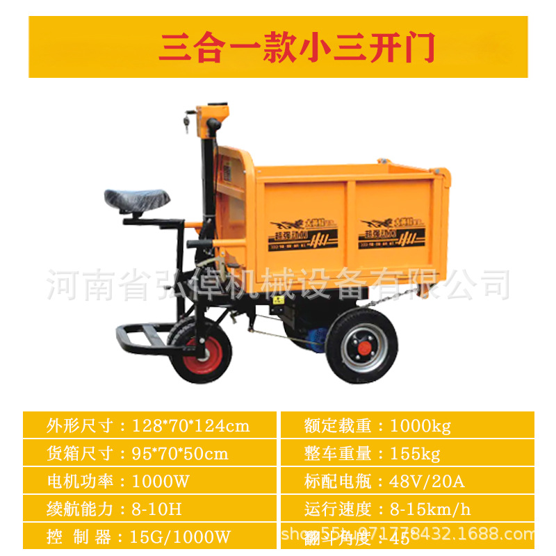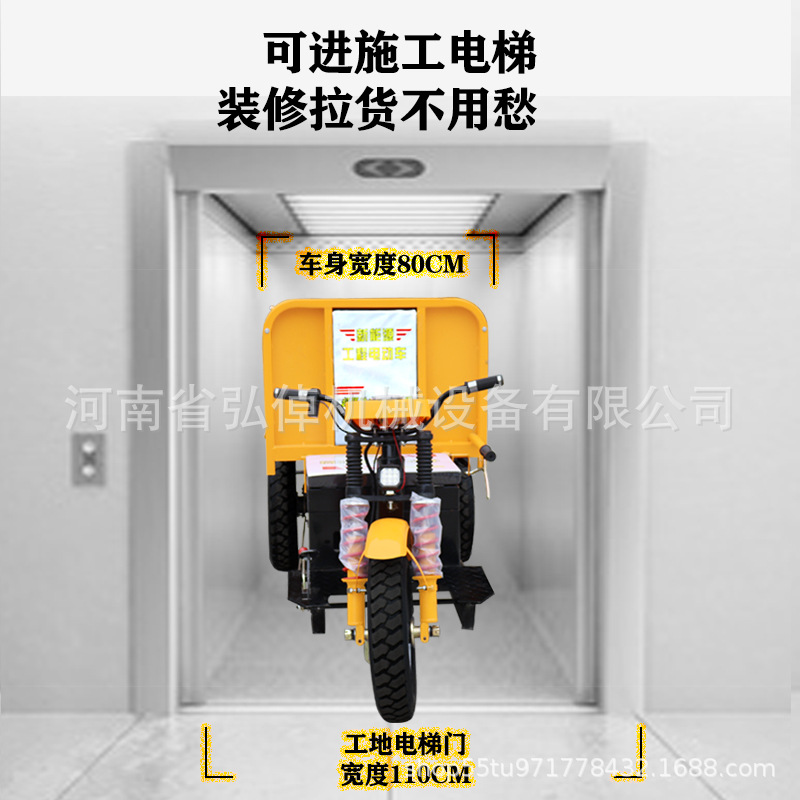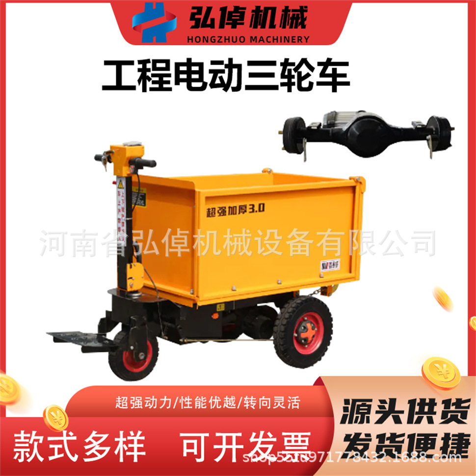 现货液压款电动三轮车建筑工地自卸大功率电瓶平板拉砖工程三轮车