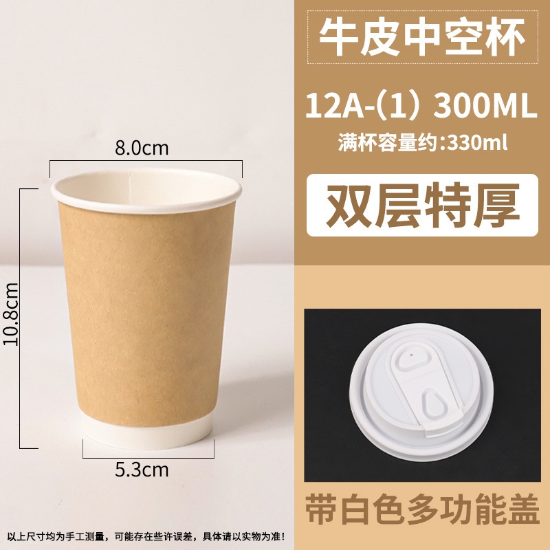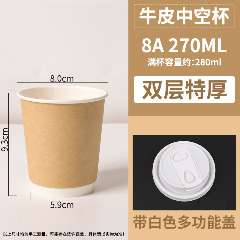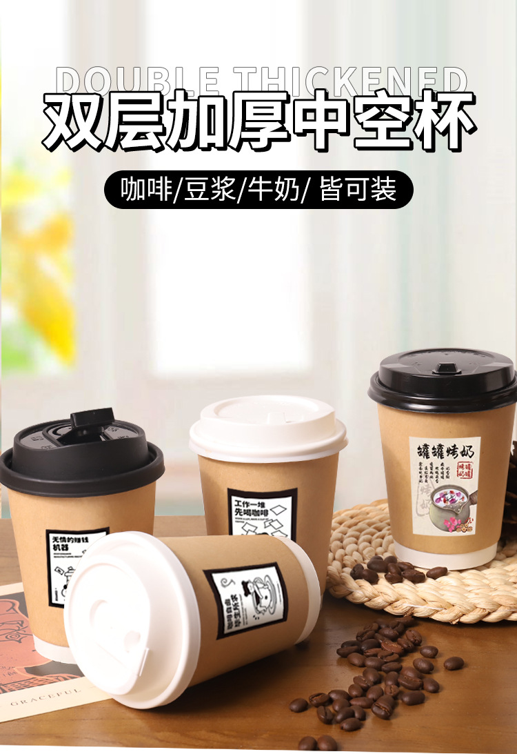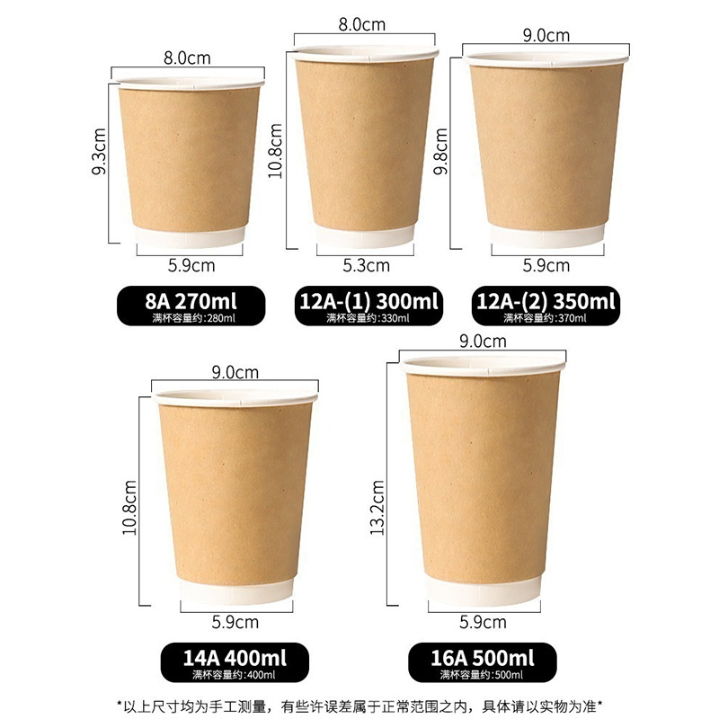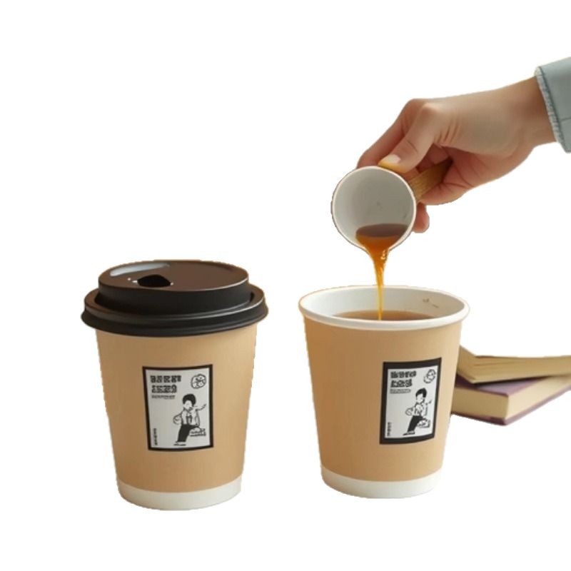 双层咖啡杯一次性纸杯批发豆浆奶茶加厚牛皮纸子带盖现货纸质