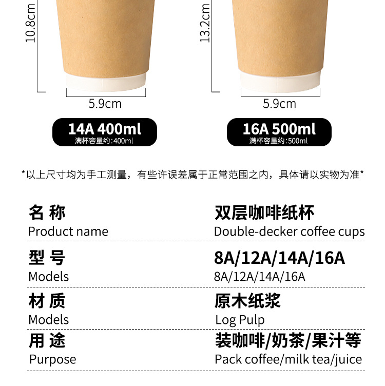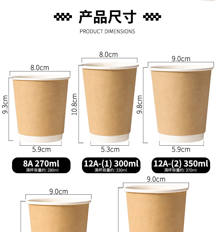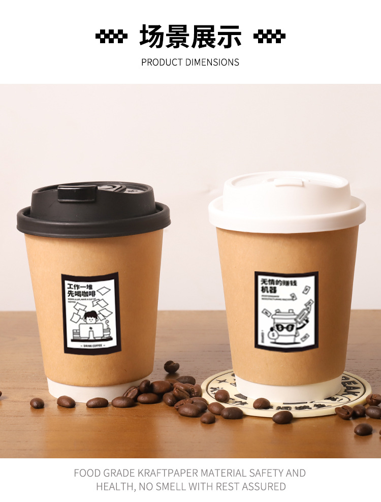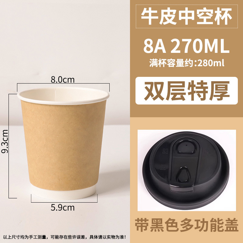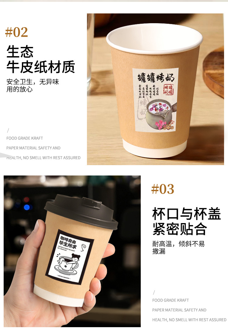 双层咖啡杯一次性纸杯批发豆浆奶茶加厚牛皮纸子带盖现货纸质