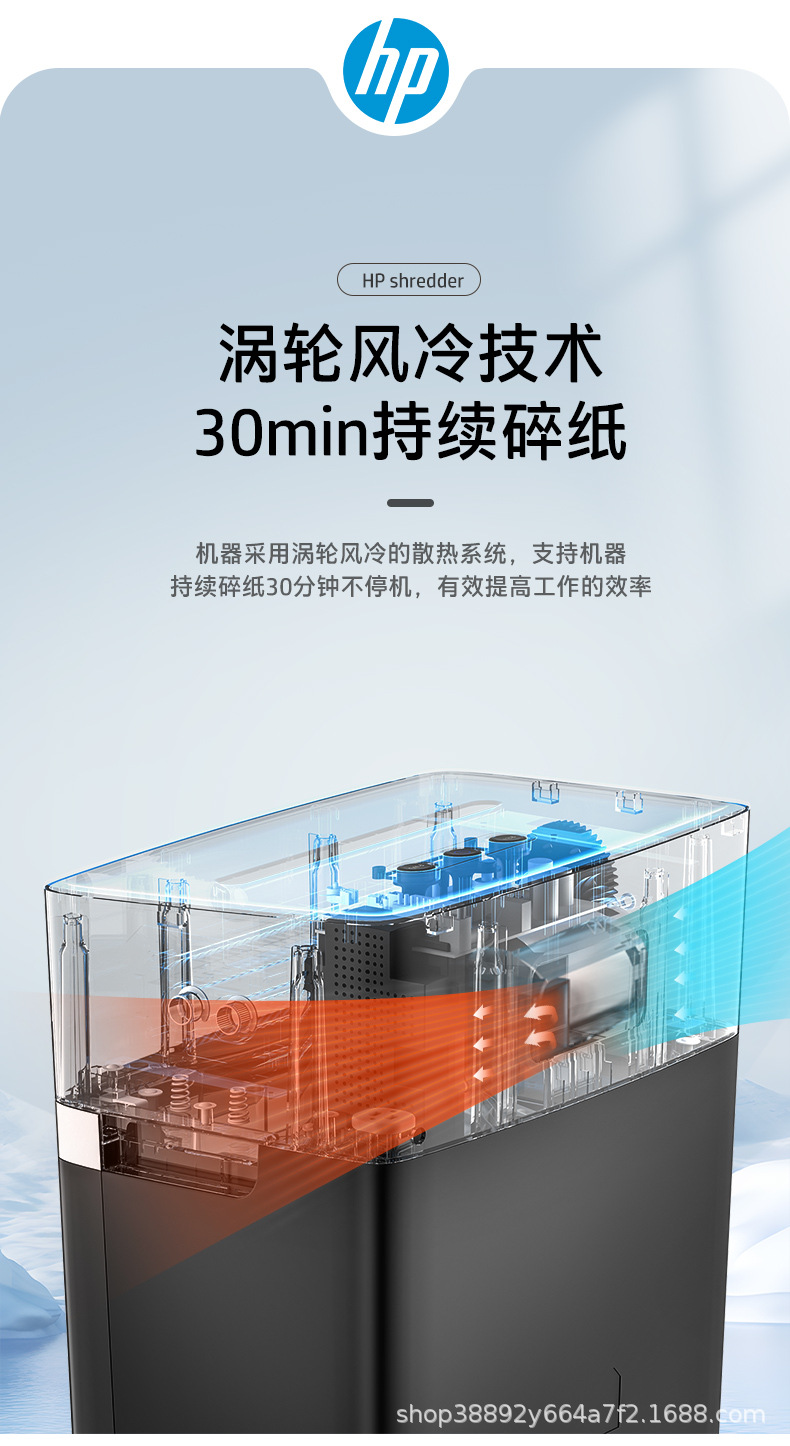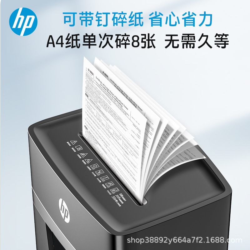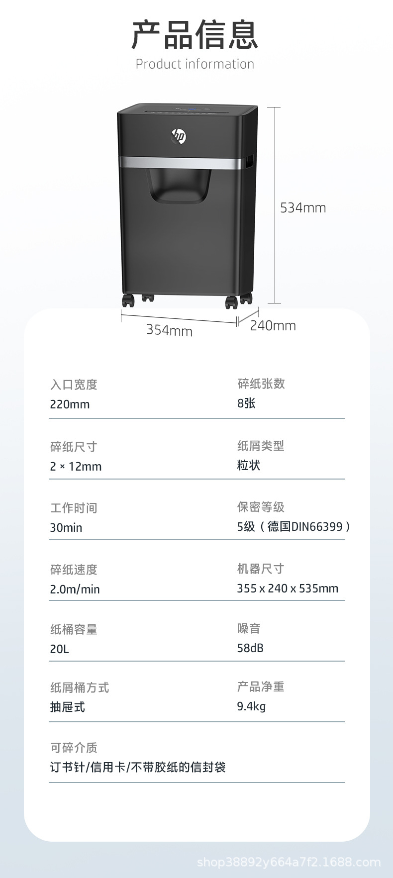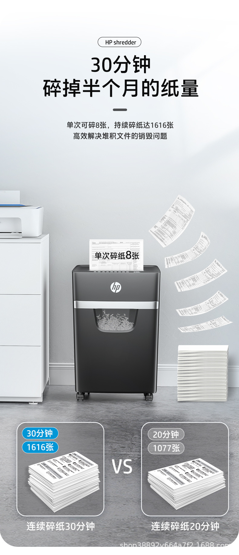 HP惠普5级保密中型多功能商用碎纸机全自动专业销毁粉碎机单次8张