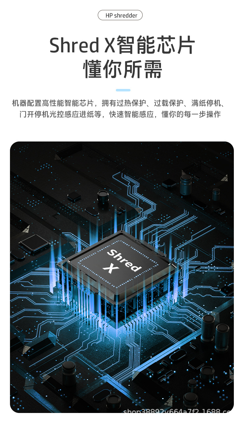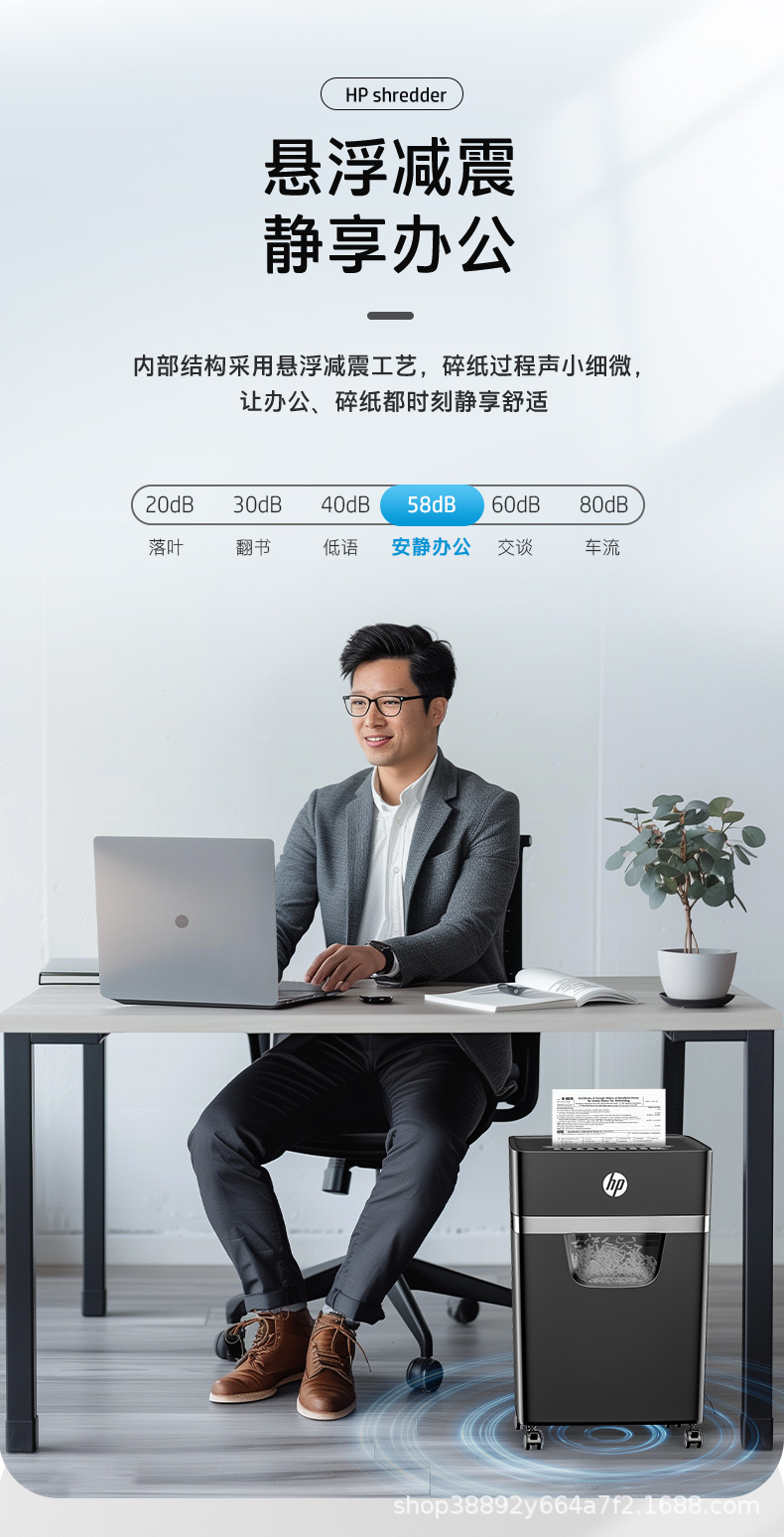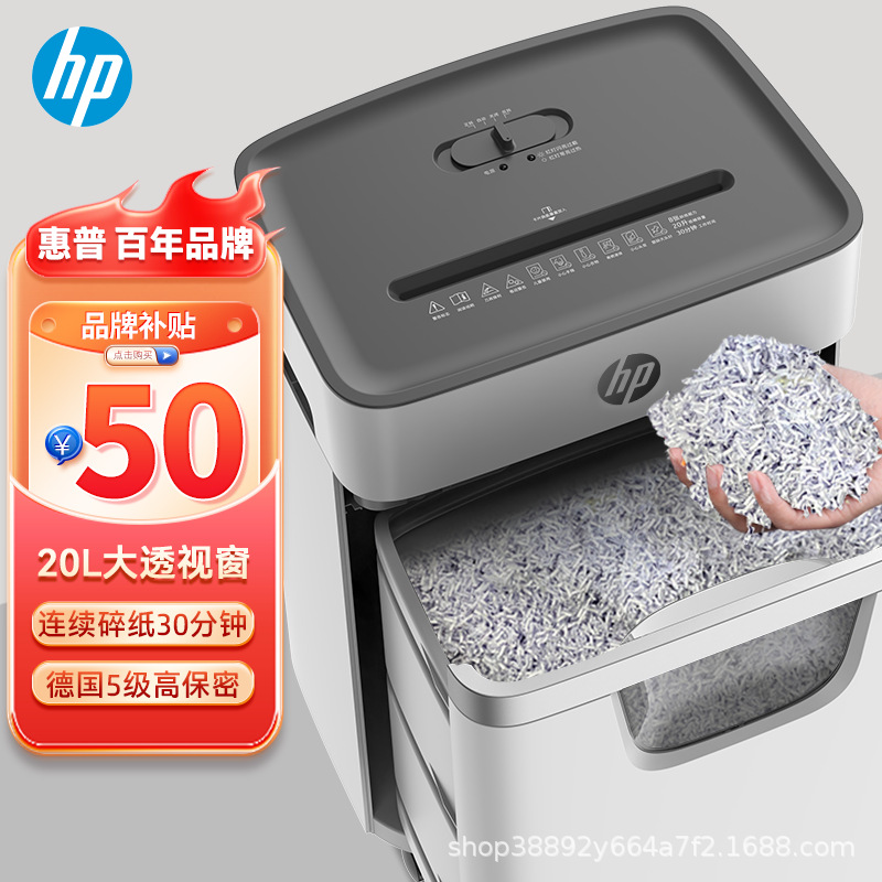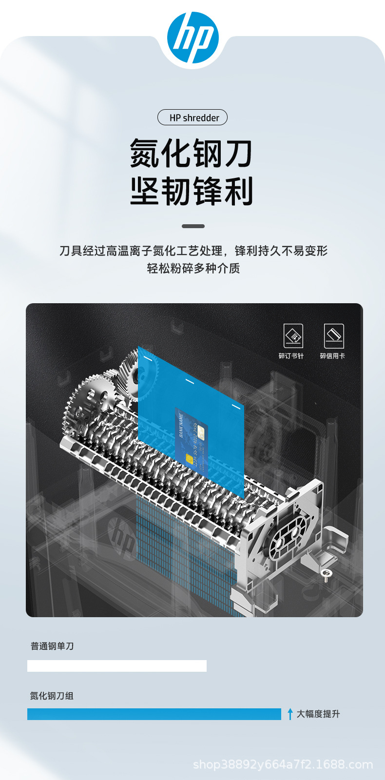 HP惠普5级保密中型多功能商用碎纸机全自动专业销毁粉碎机单次8张