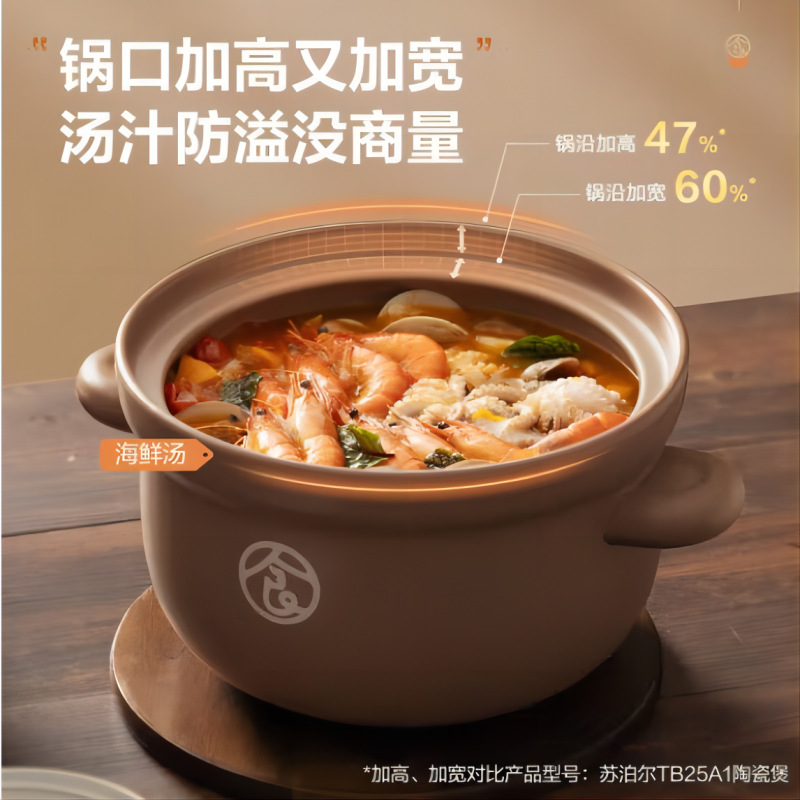 苏泊尔陶瓷煲4.5L容量砂锅汤锅家用耐高温不开裂炖锅明火TB45UA1