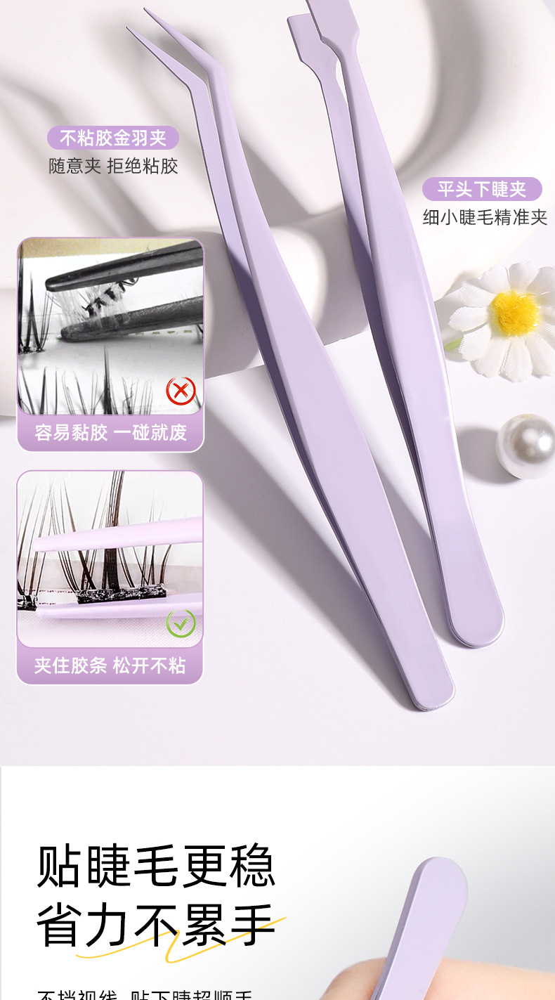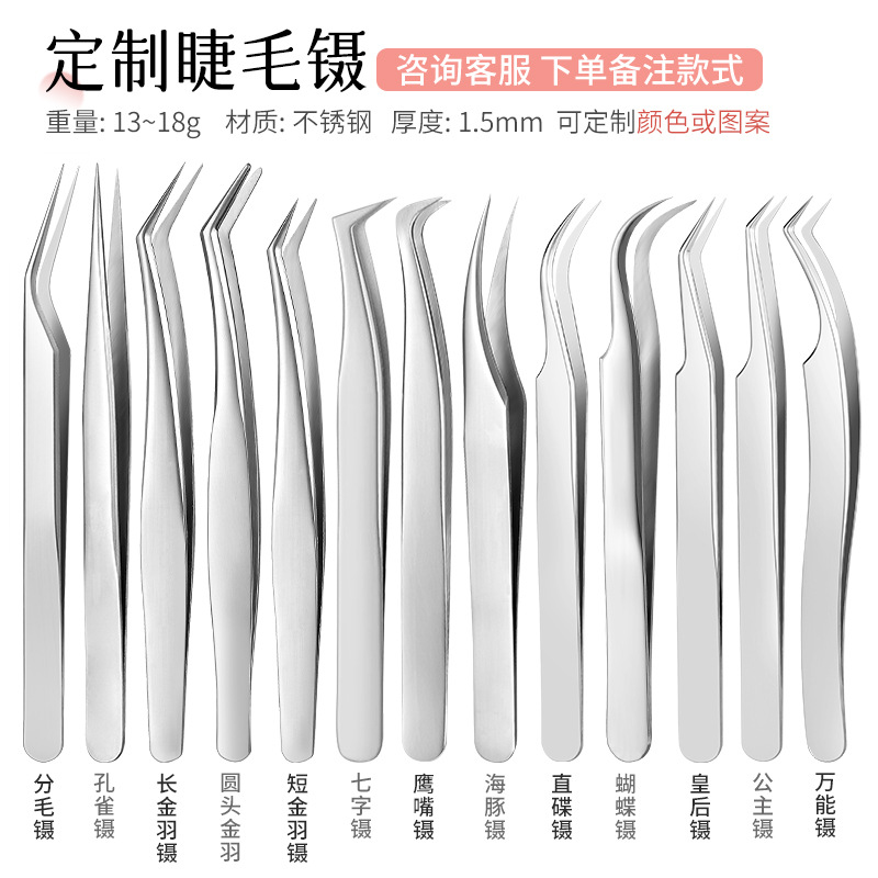 现货不锈钢嫁接睫毛工具高精度美睫师专用夹子种下睫毛夹开花镊子