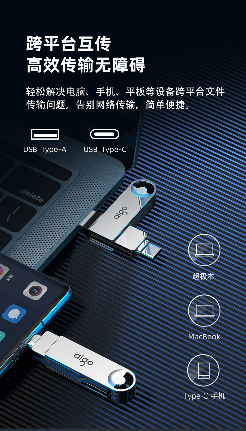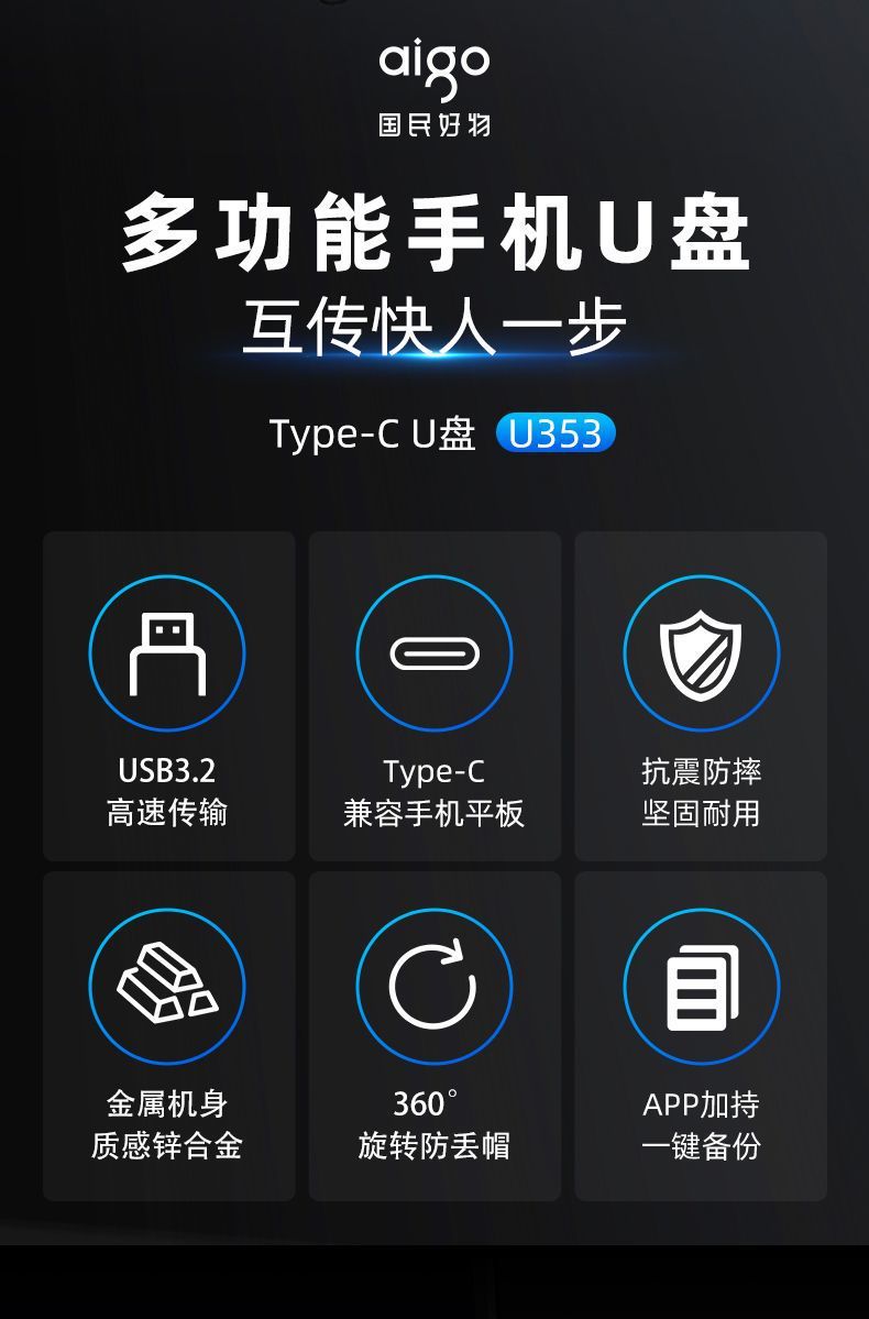 爱国者u353手机Type-Cu盘32g高速双头接口优盘批发投标广告展会礼