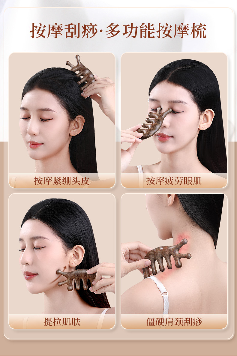 按摩梳头部经络梳头疗按摩男女刮痧头皮疏通防宽齿梳子便携经络梳
